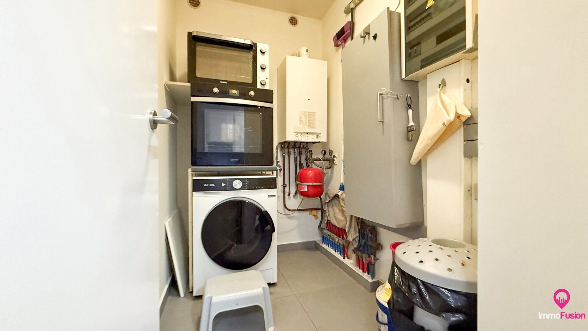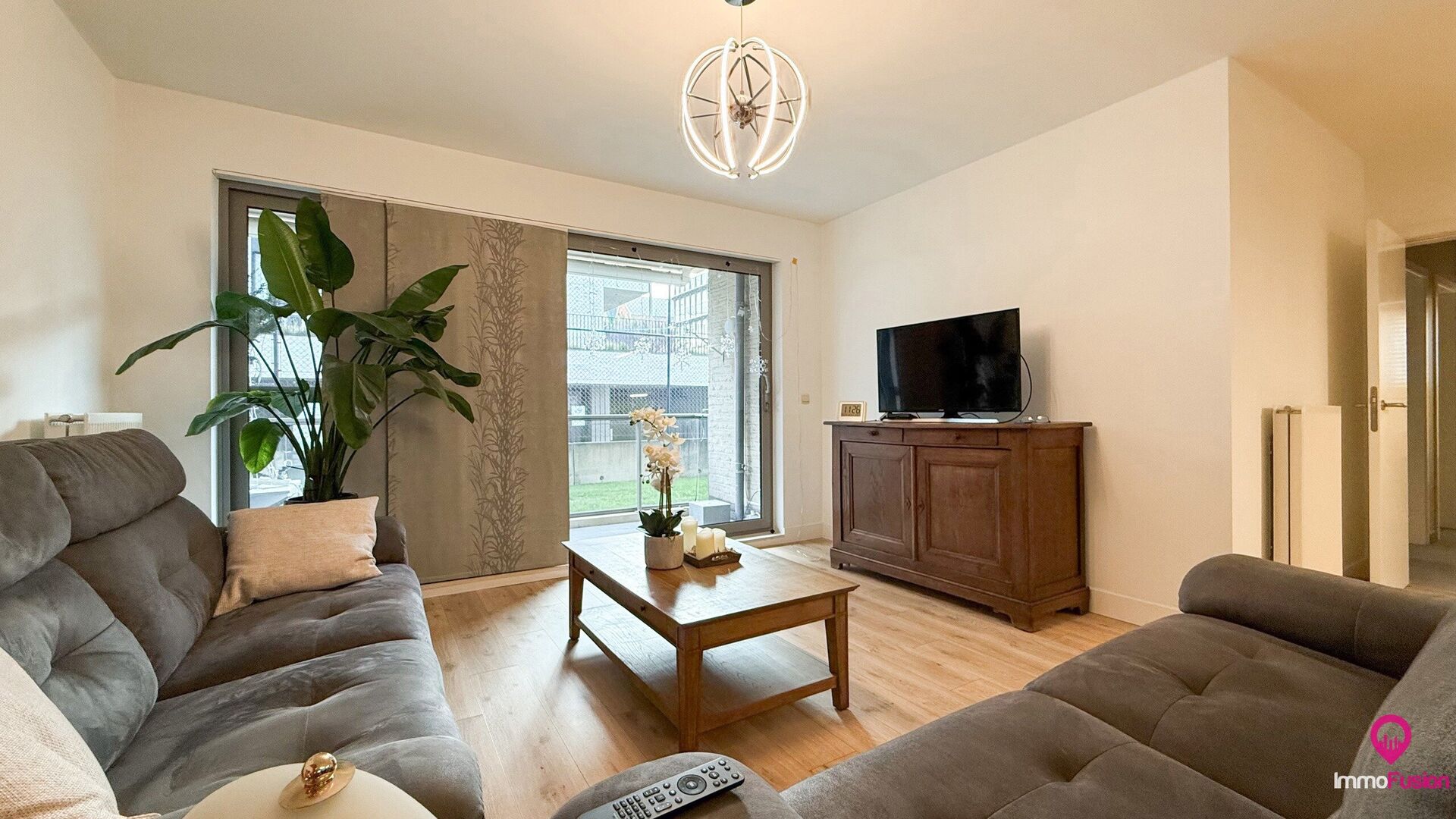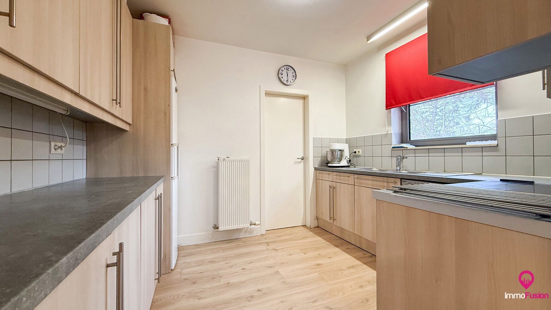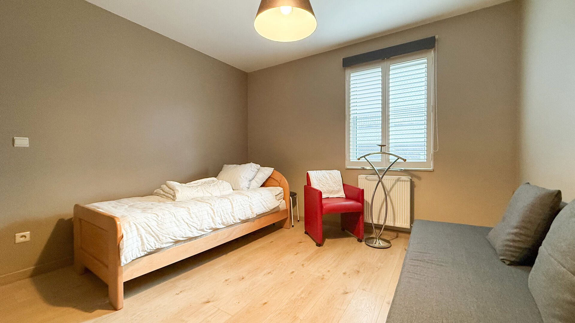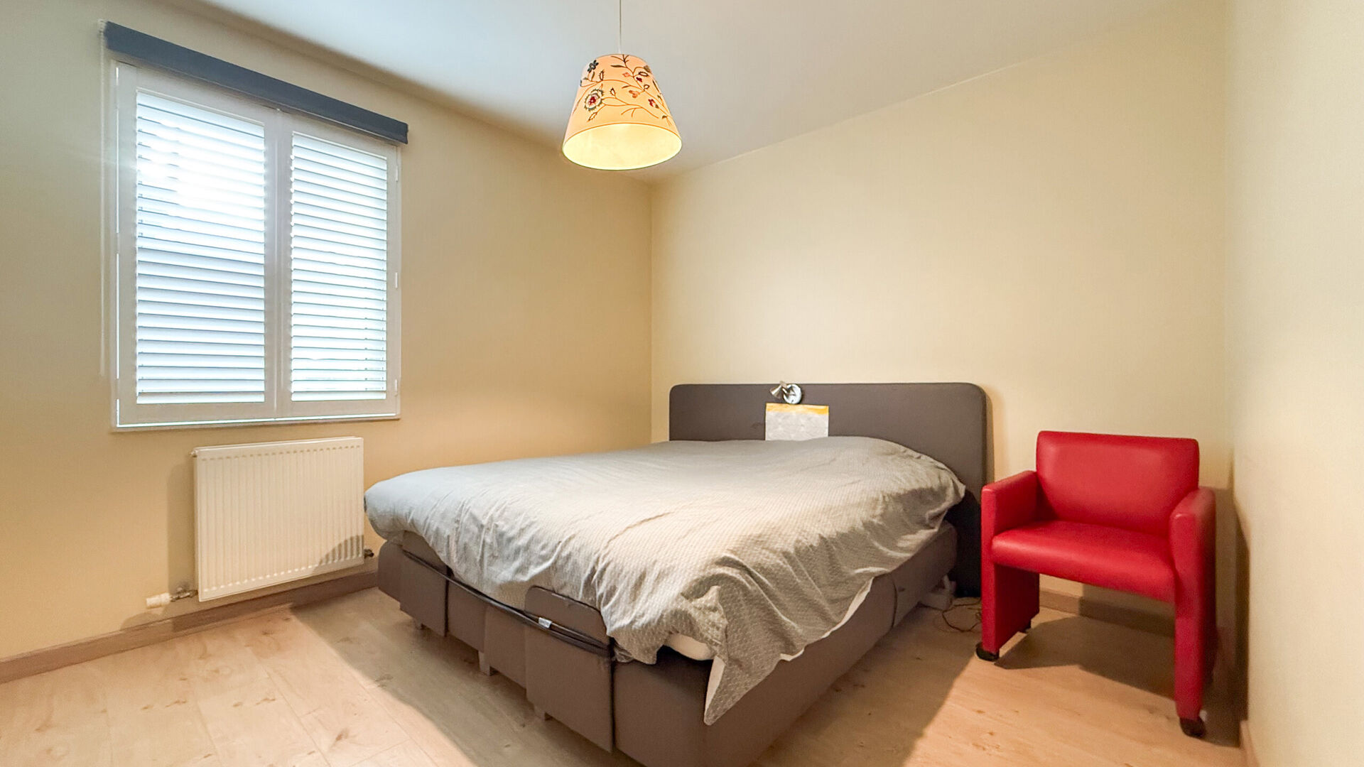 De leefruimte sluit aan op een mooi terras, ideaal om in alle rust te genieten. De volledig geïnstalleerde keuken is praktisch ingericht en uitgerust met alle nodige toestellen, waaronder een vaatwasmachine. Aansluitend bevindt zich een aparte berging met voldoende ruimte voor een wasmachine en droogkast.