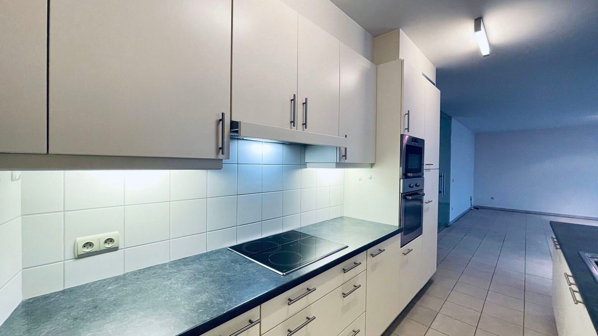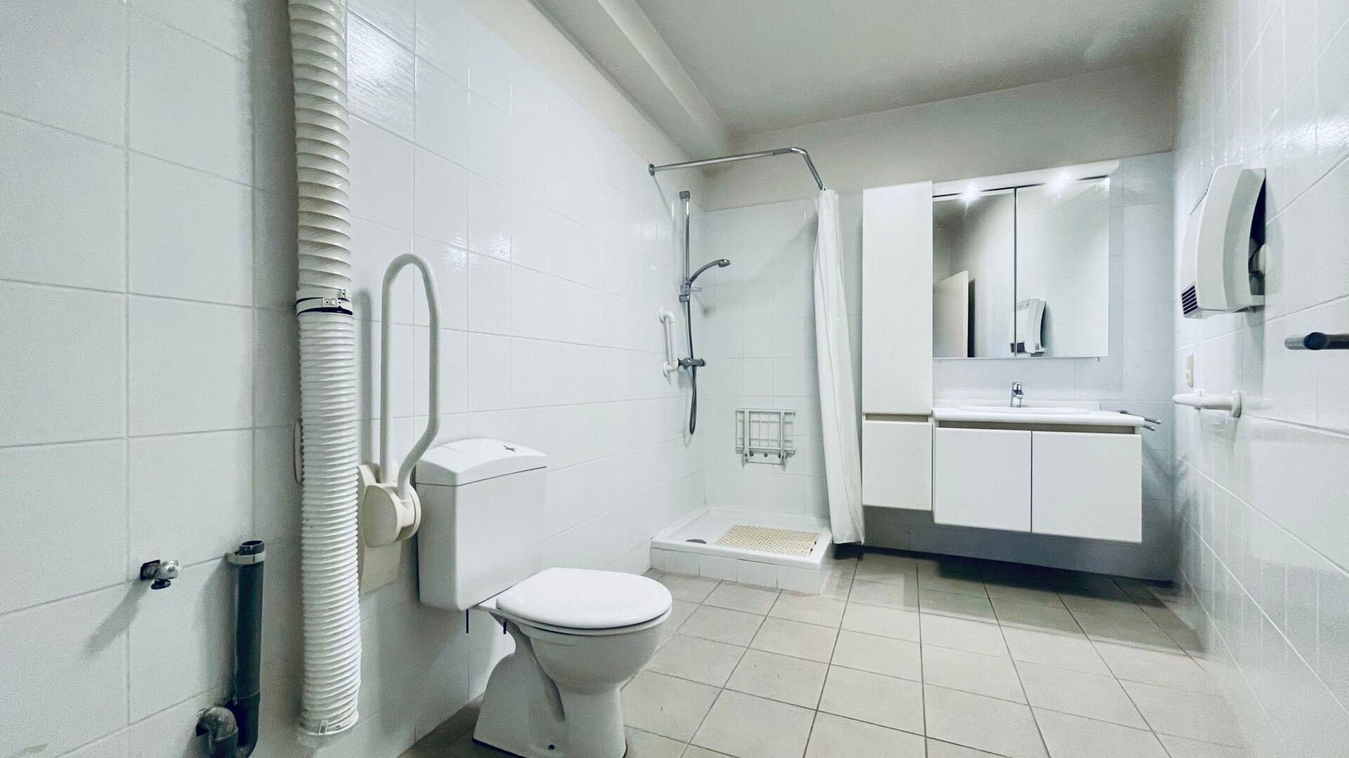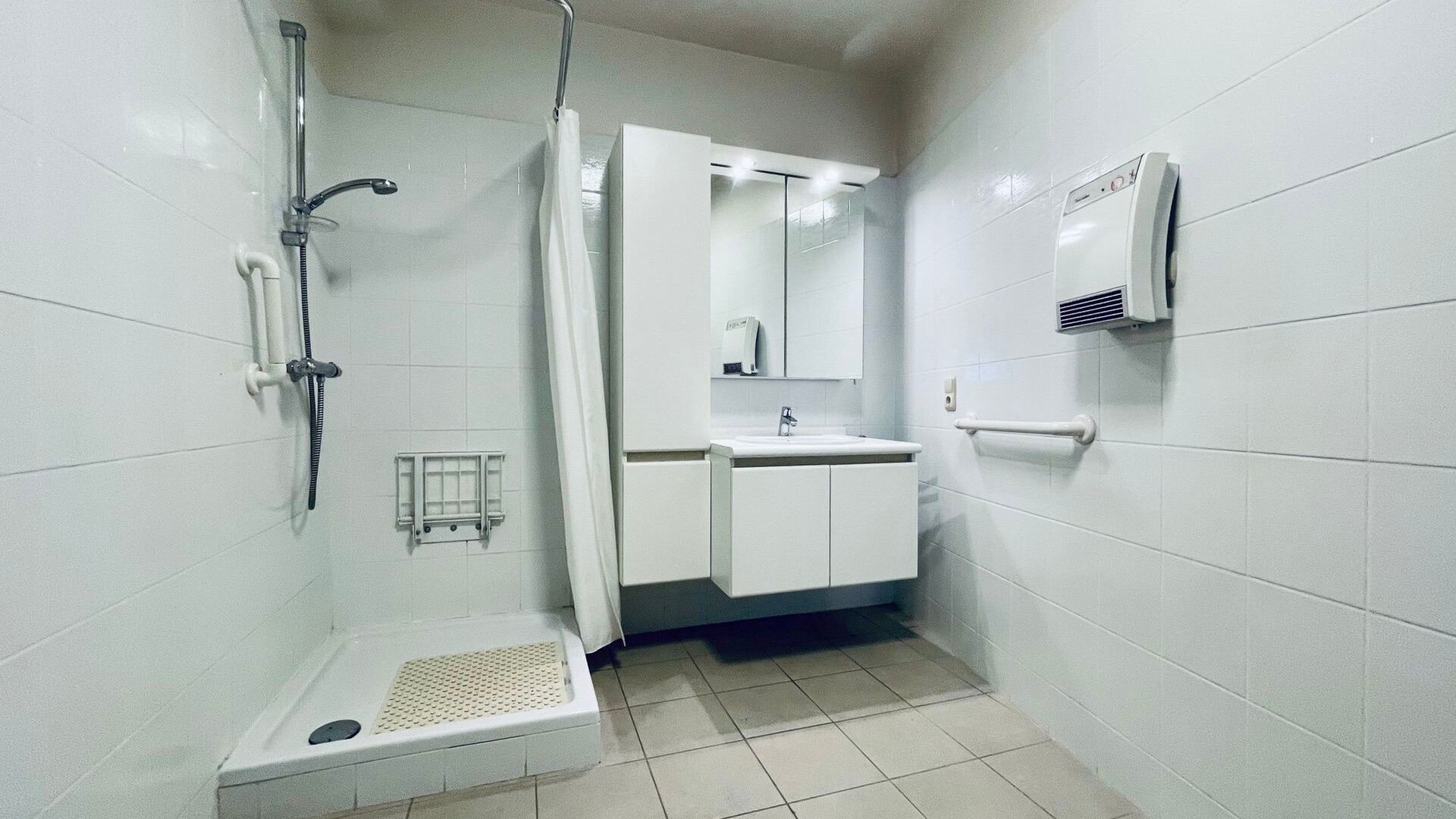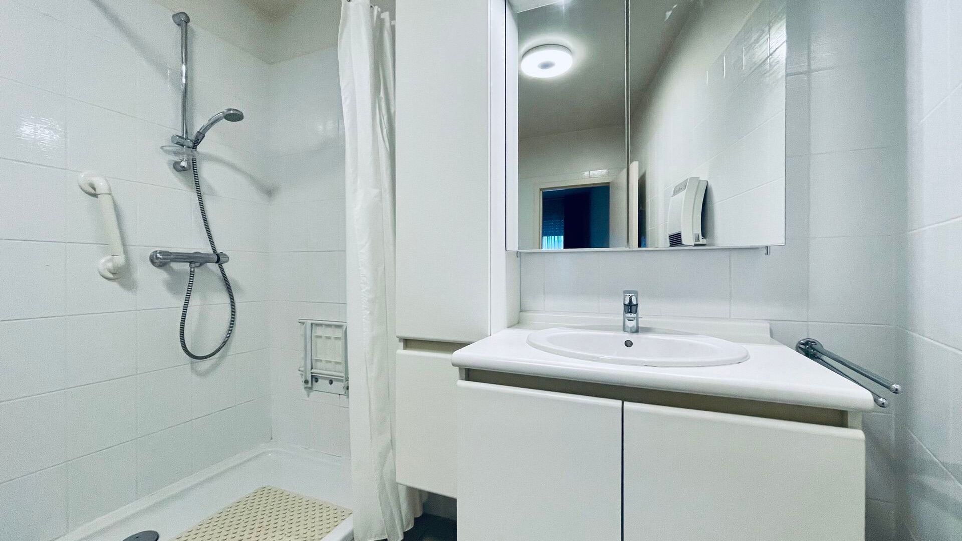 Het appartement beschikt over twee slaapkamers, waarvan één directe toegang geeft tot de badkamer. Let wel: de badkamer is enkel bereikbaar via deze slaapkamer. De keuken is volledig uitgerust met alle nodige toestellen, en er is bovendien een praktische berging voorzien voor een wasmachine.