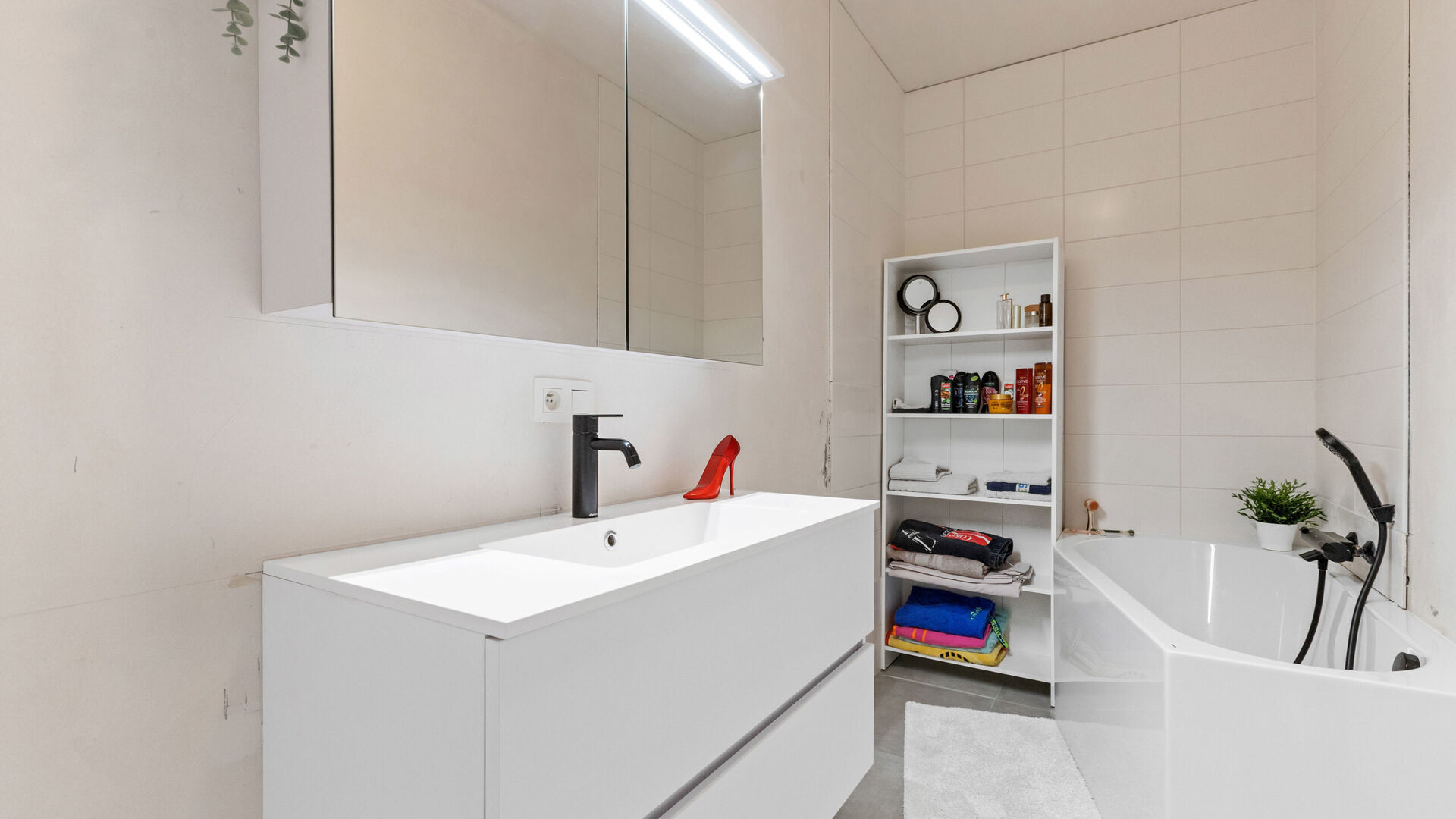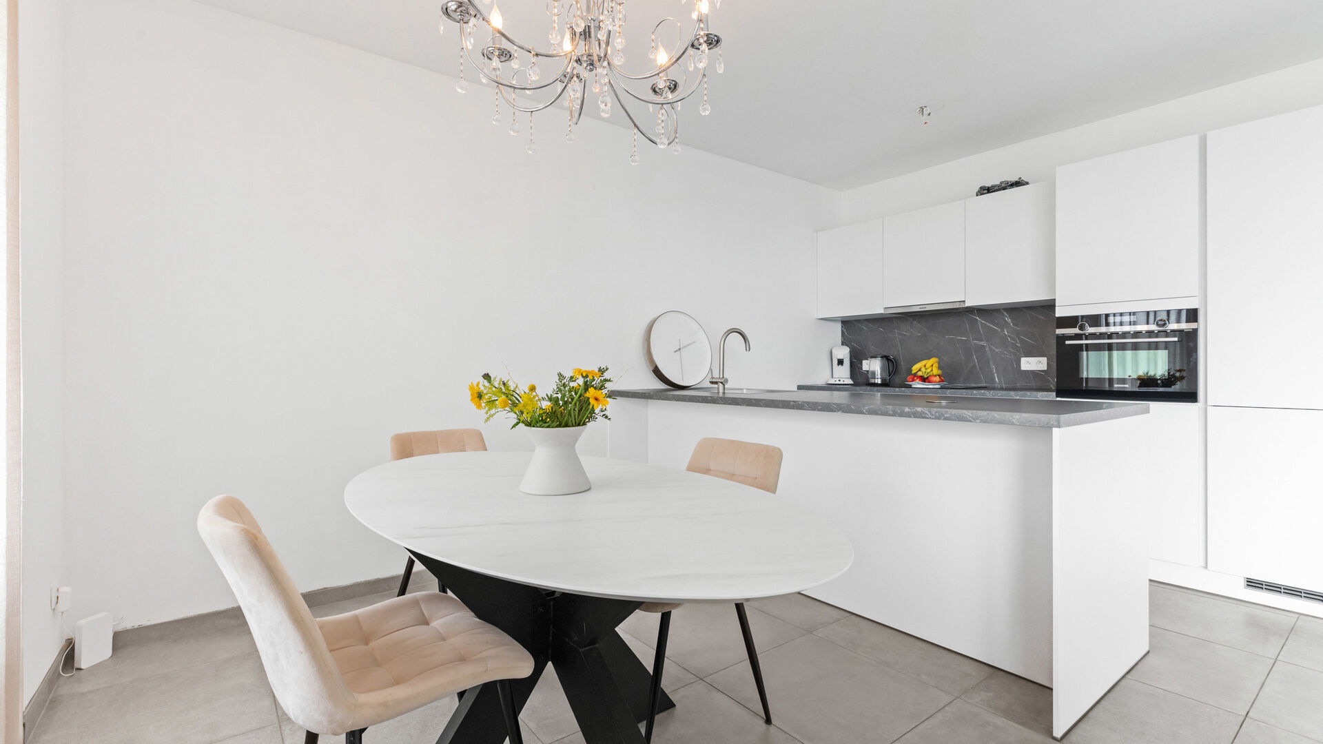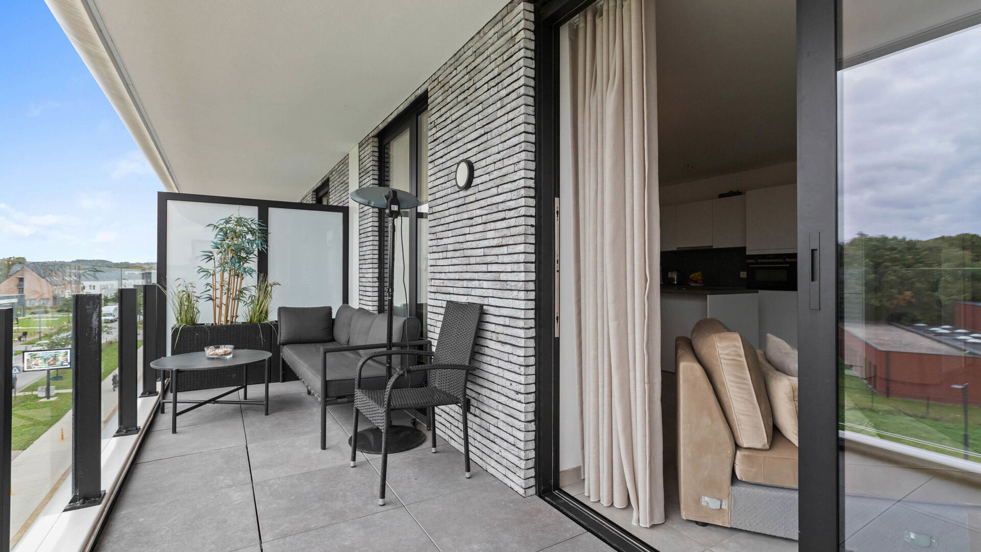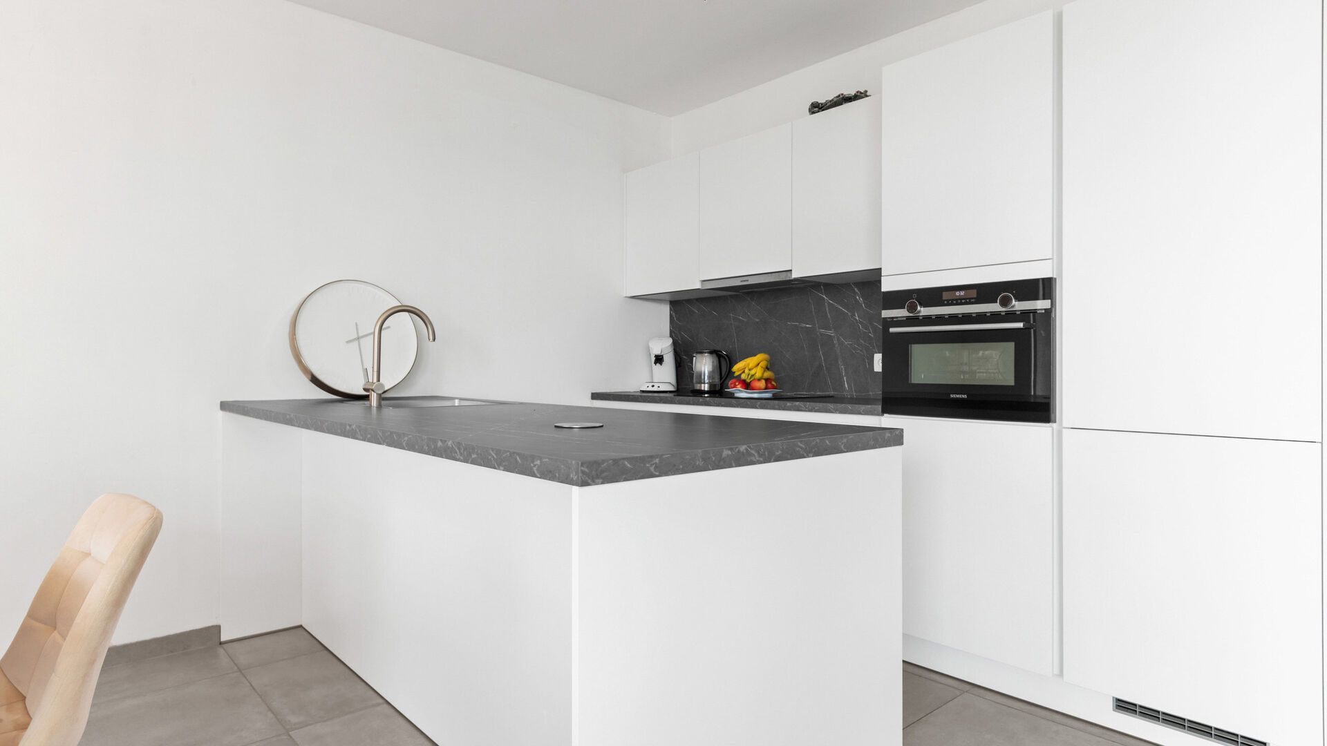 De leefruimte baadt in natuurlijk licht en sluit naadloos aan op de volledig uitgeruste, kwalitatief afgewerkte keuken. Verder beschikt het appartement over een praktische berging, twee volwaardige slaapkamers, een gastentoilet en een moderne badkamer. Het zongerichte terras vormt de ideale plek om te ontspannen.
