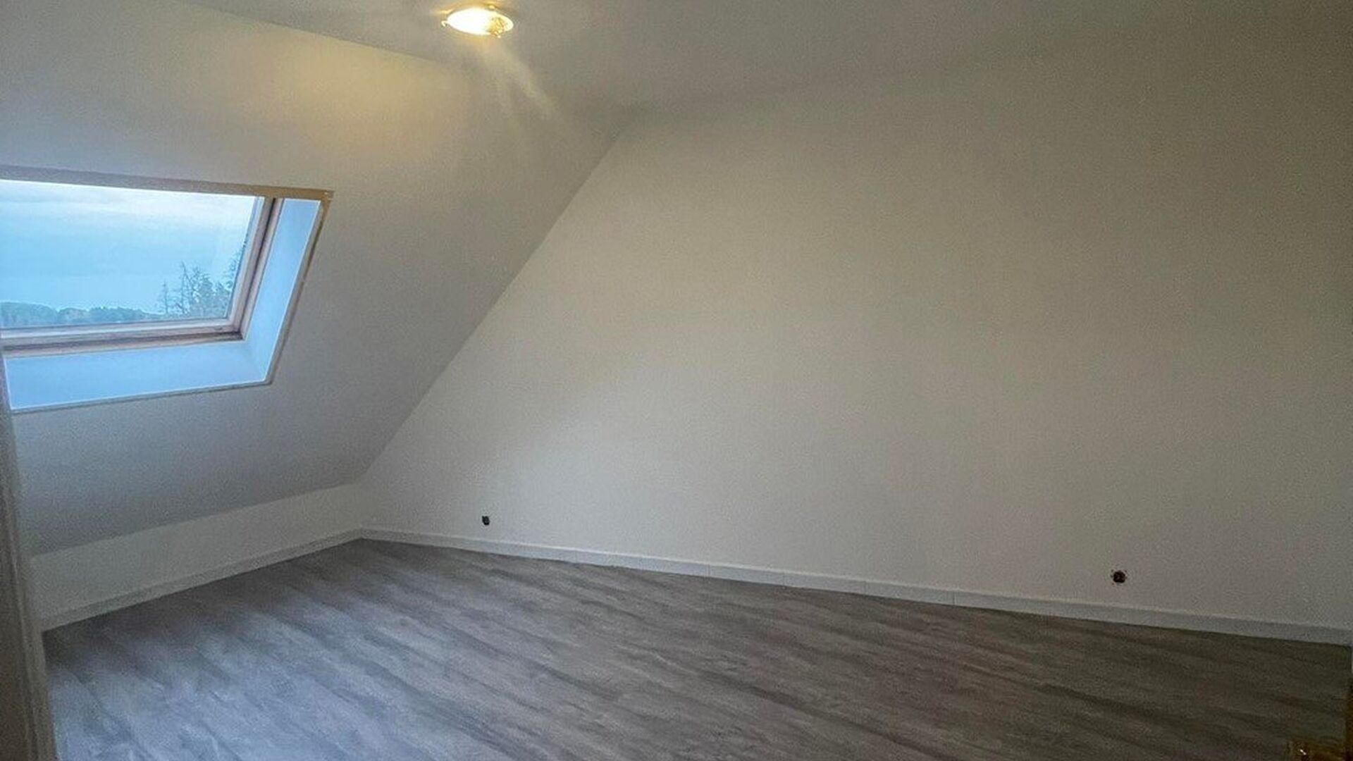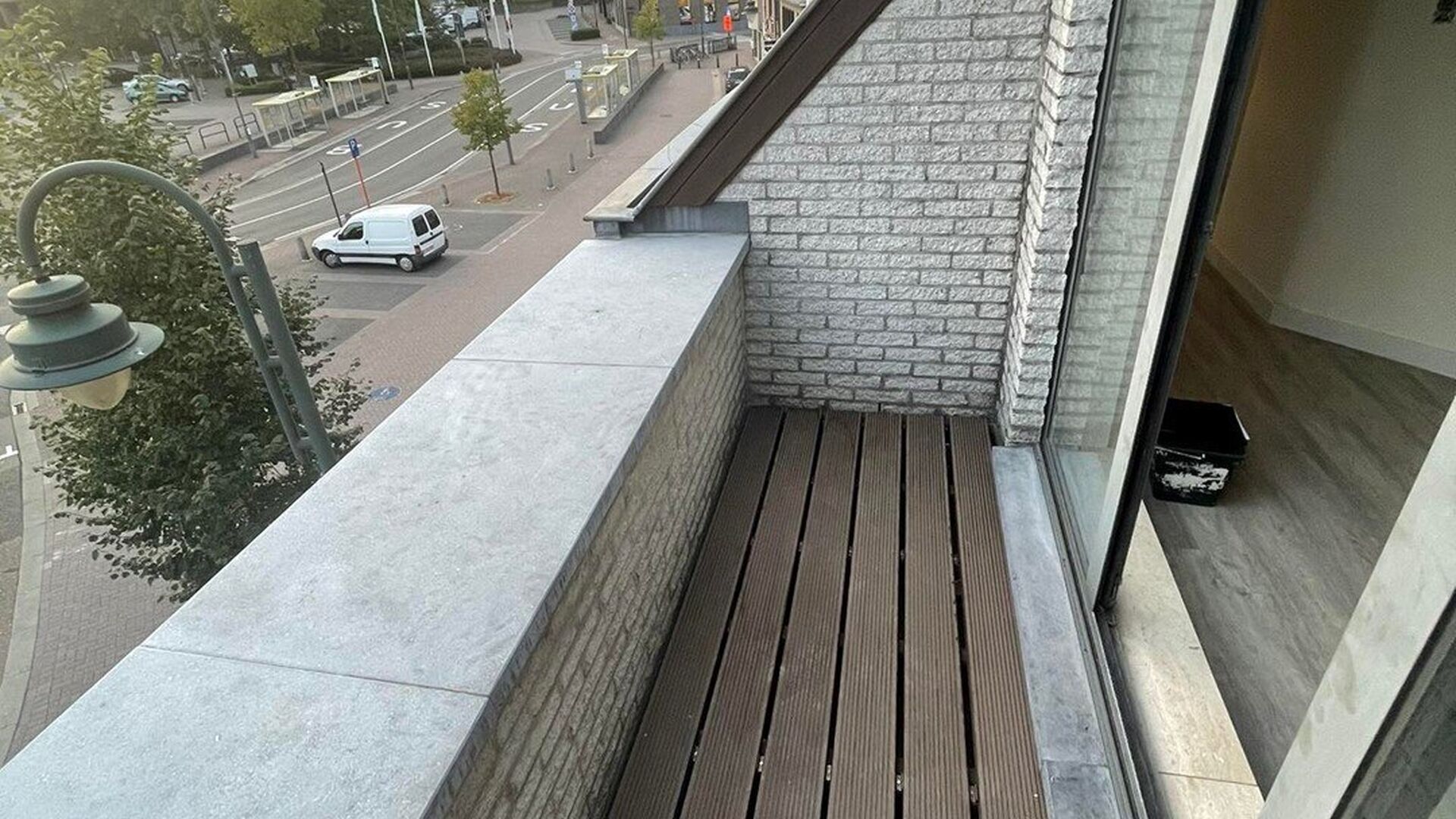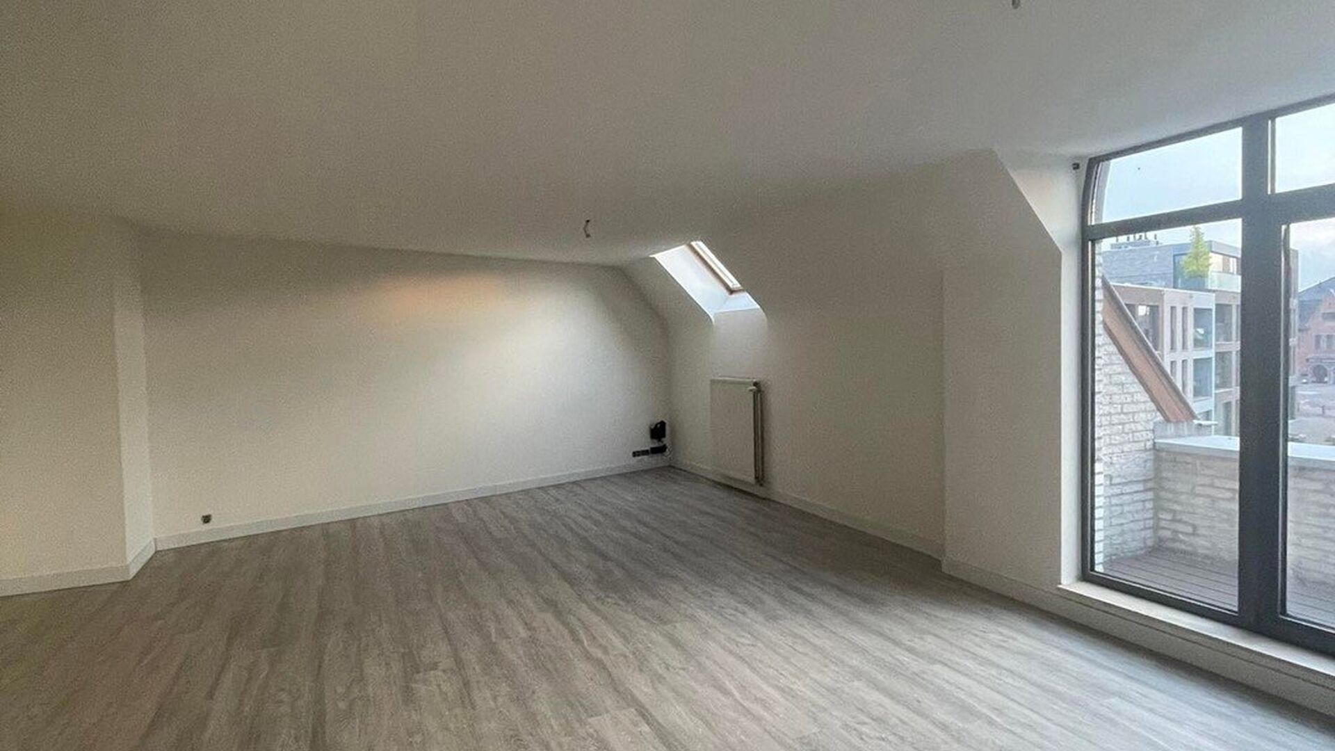 Binnenin verwelkomt een ruime leefruimte met veel natuurlijk licht, aansluitend op een praktische keuken. Het appartement telt twee slaapkamers, waarvan één zeer ruime kamer voorzien is van inbouwkasten aan beide zijdes. De badkamer werd recent vernieuwd en is uitgerust met een moderne inloopdouche. Daarnaast is er een apart toilet op de overloop.