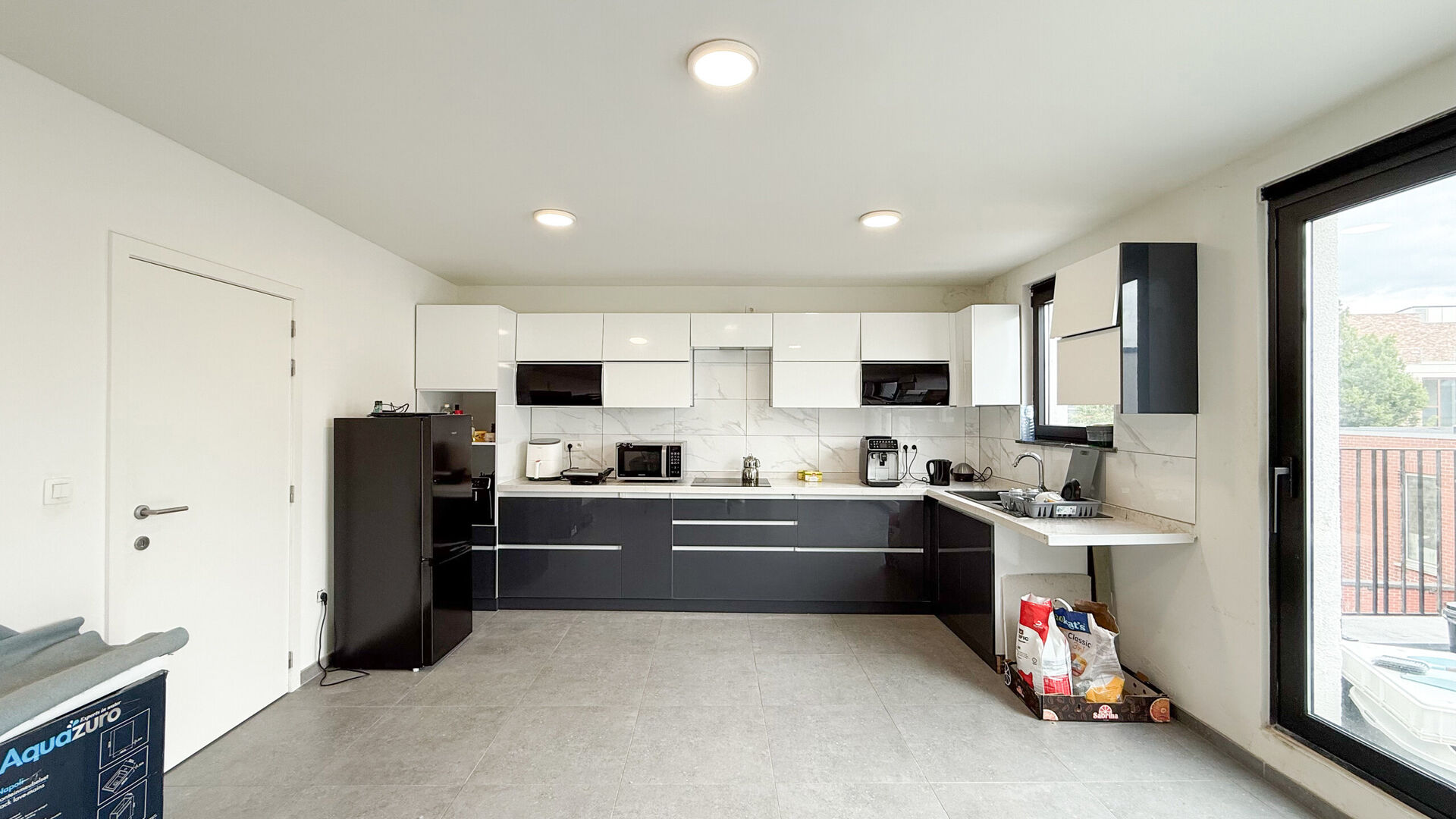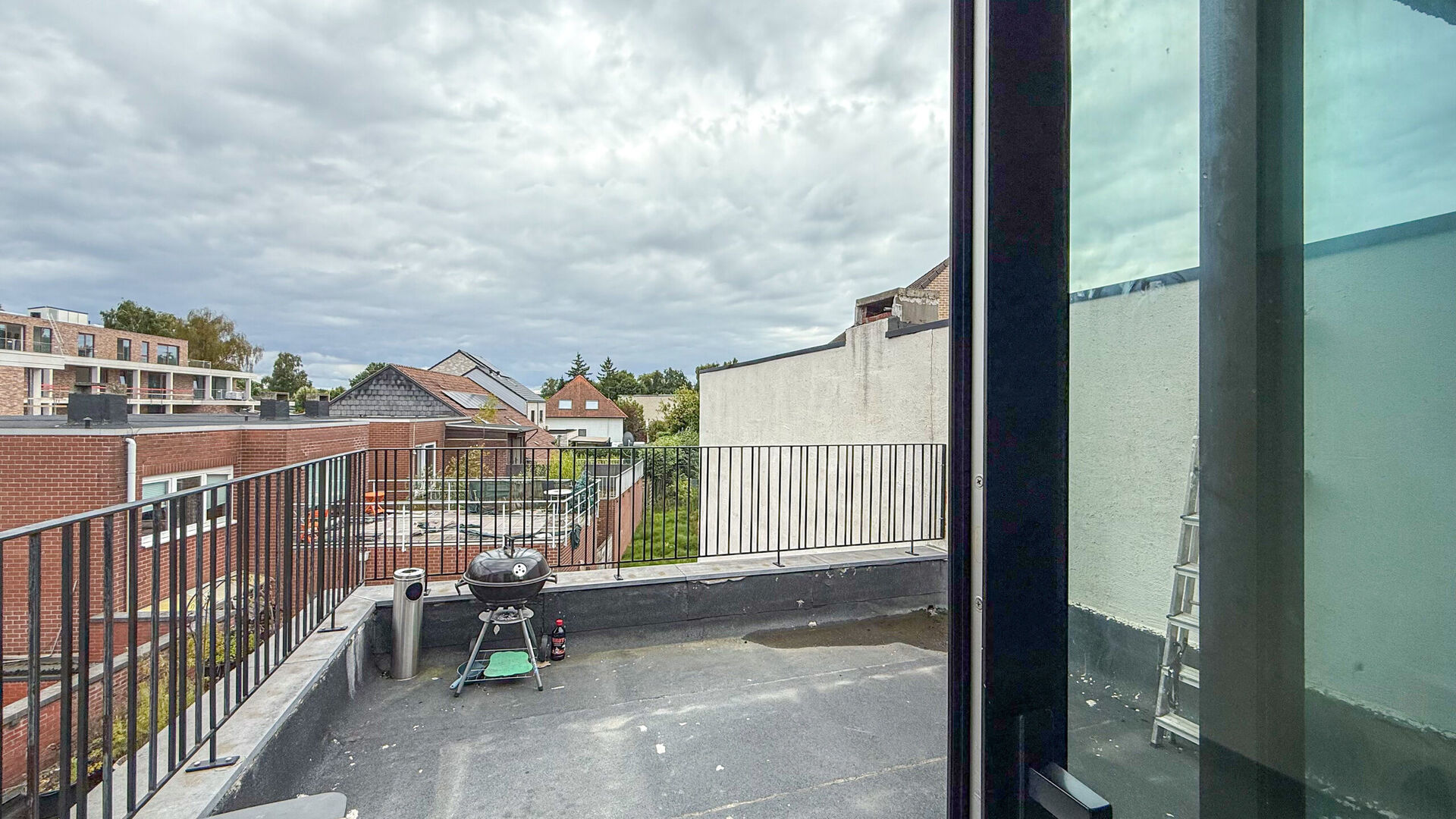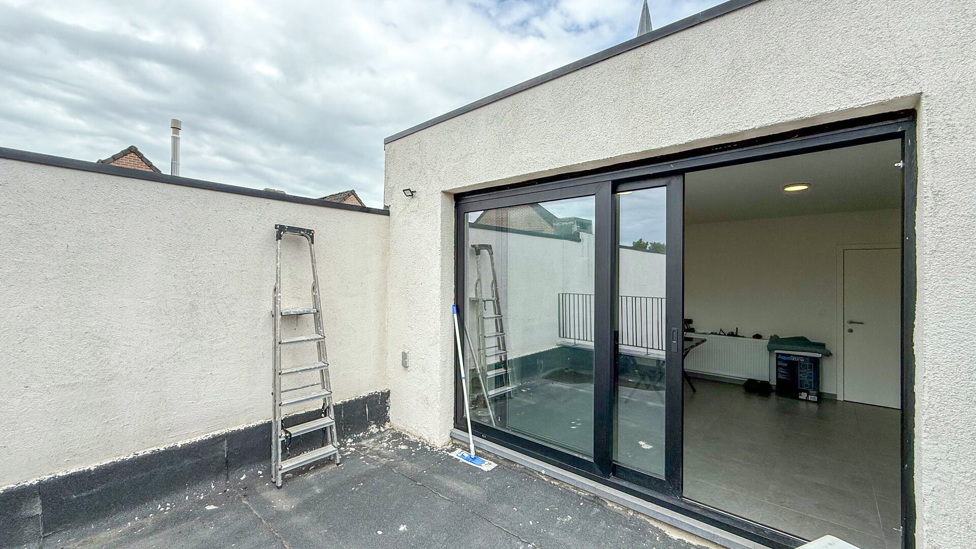 Een grote troef van dit appartement is het ruime dakterras aan de achterkant van het gebouw, waar je in alle rust kan genieten van de buitenlucht.