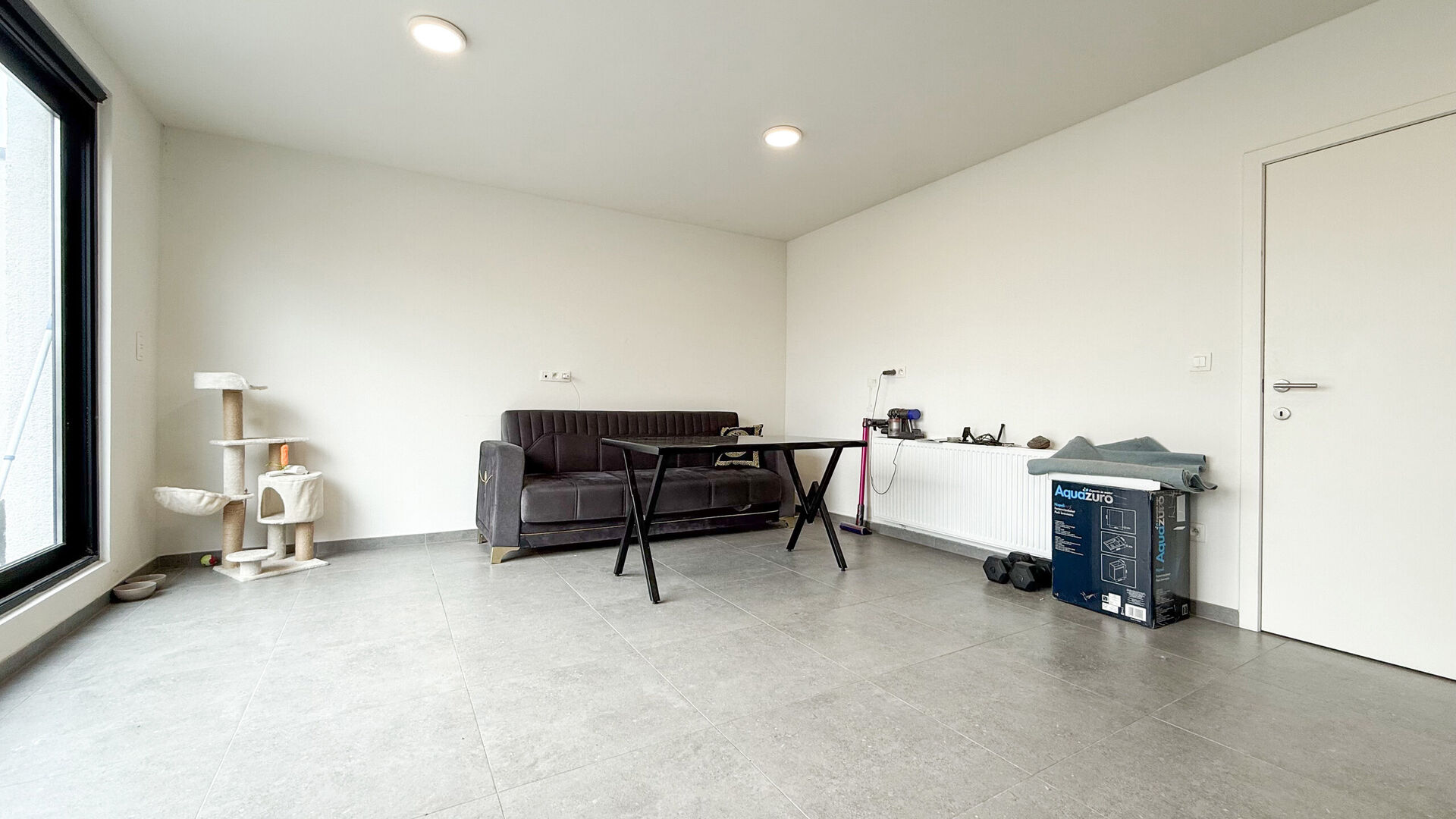 De leefruimte is gezellig en verzorgd afgewerkt, met een open keuken die mooi geïntegreerd is in de ruimte. De keuken beschikt over een groot meubel met veel opbergruimte en een ingebouwd vuur.