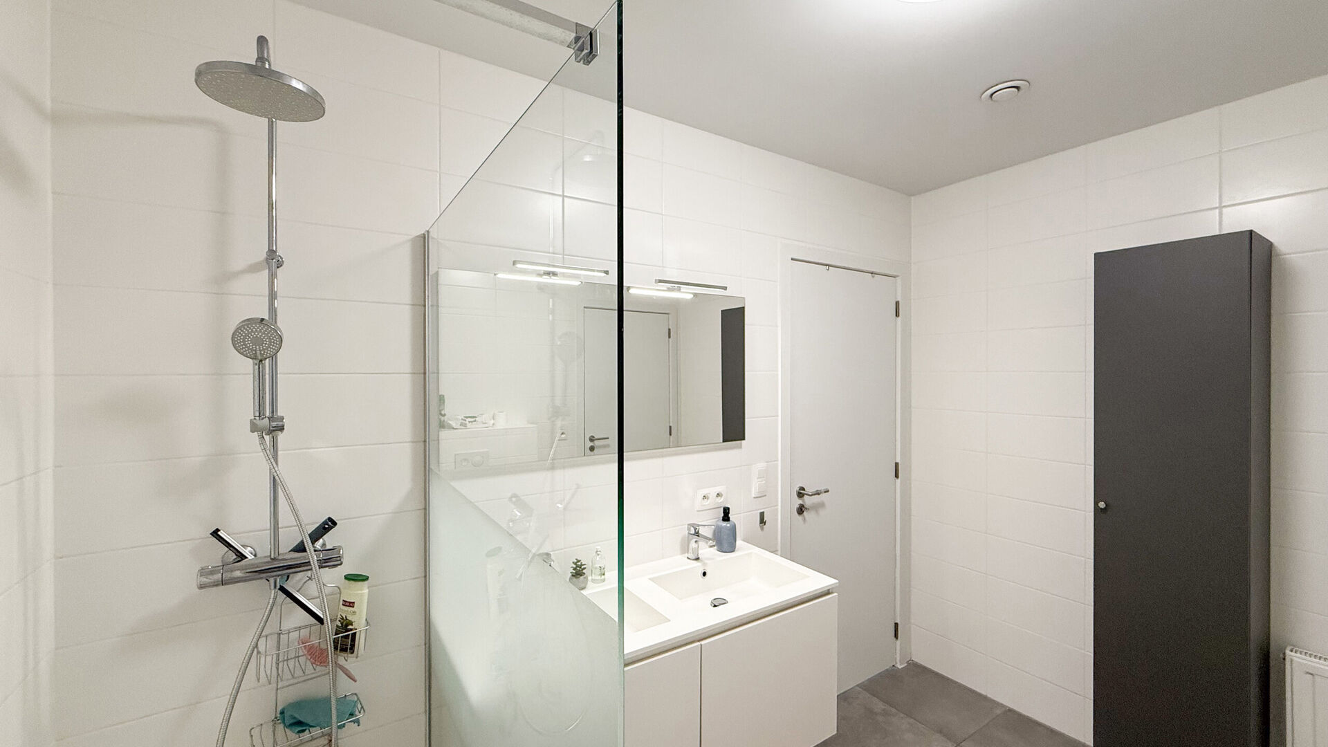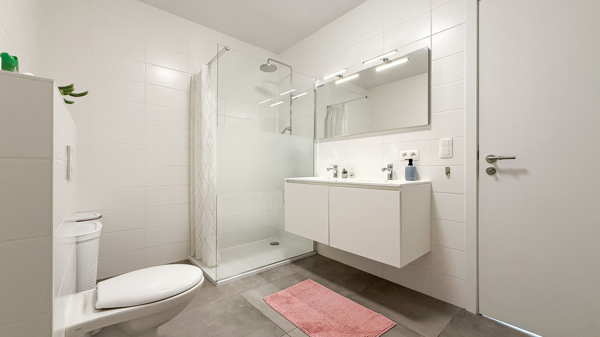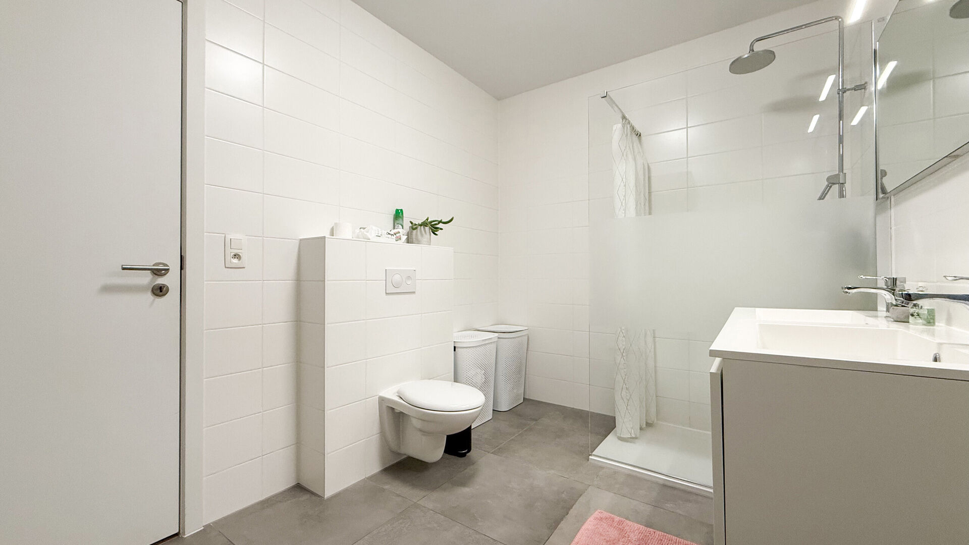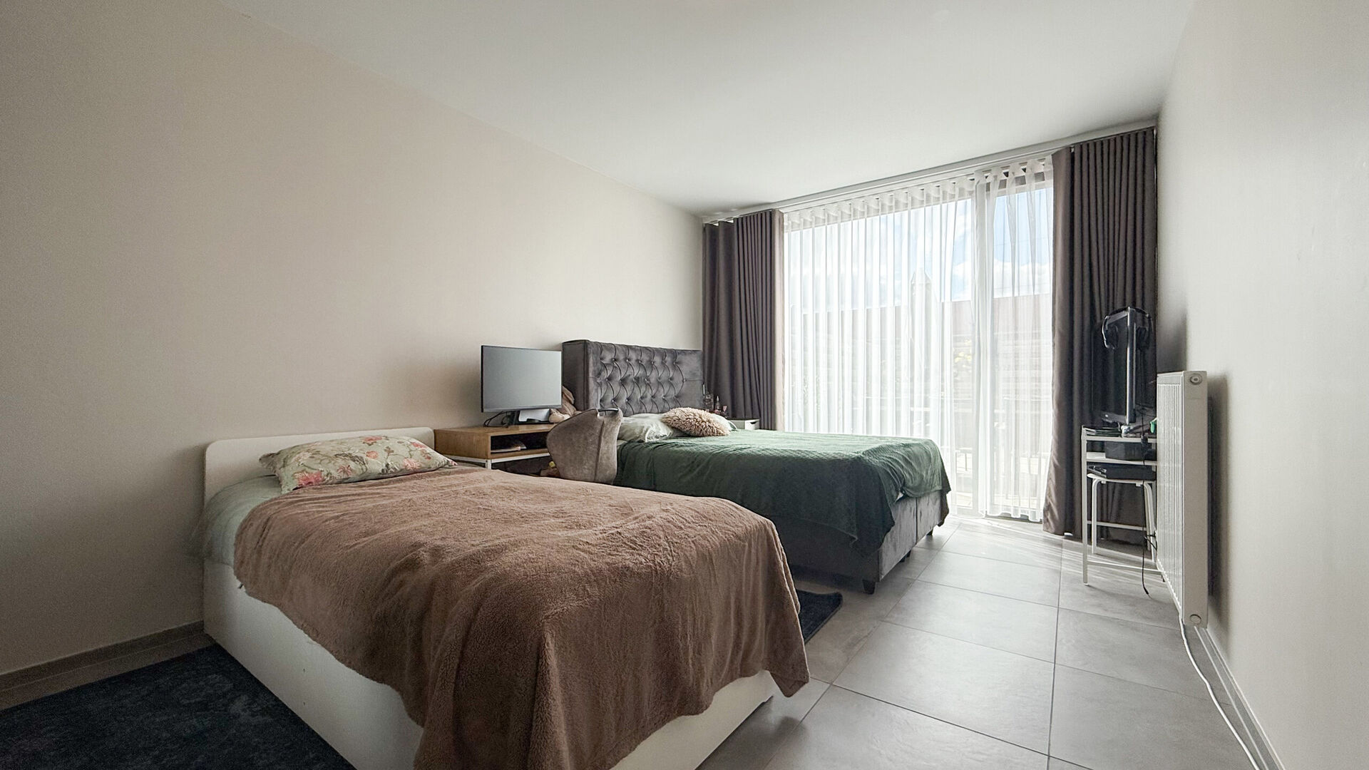 Het appartement beschikt over 2 slaapkamers: een ruime master bedroom van 17m² met directe toegang tot de badkamer, en een tweede slaapkamer van 11m², perfect als kinder-, logeer- of bureauruimte. De moderne badkamer is uitgerust met een inloopdouche, dubbele wastafel en toilet. Daarnaast is er nog een apart gastentoilet aanwezig.