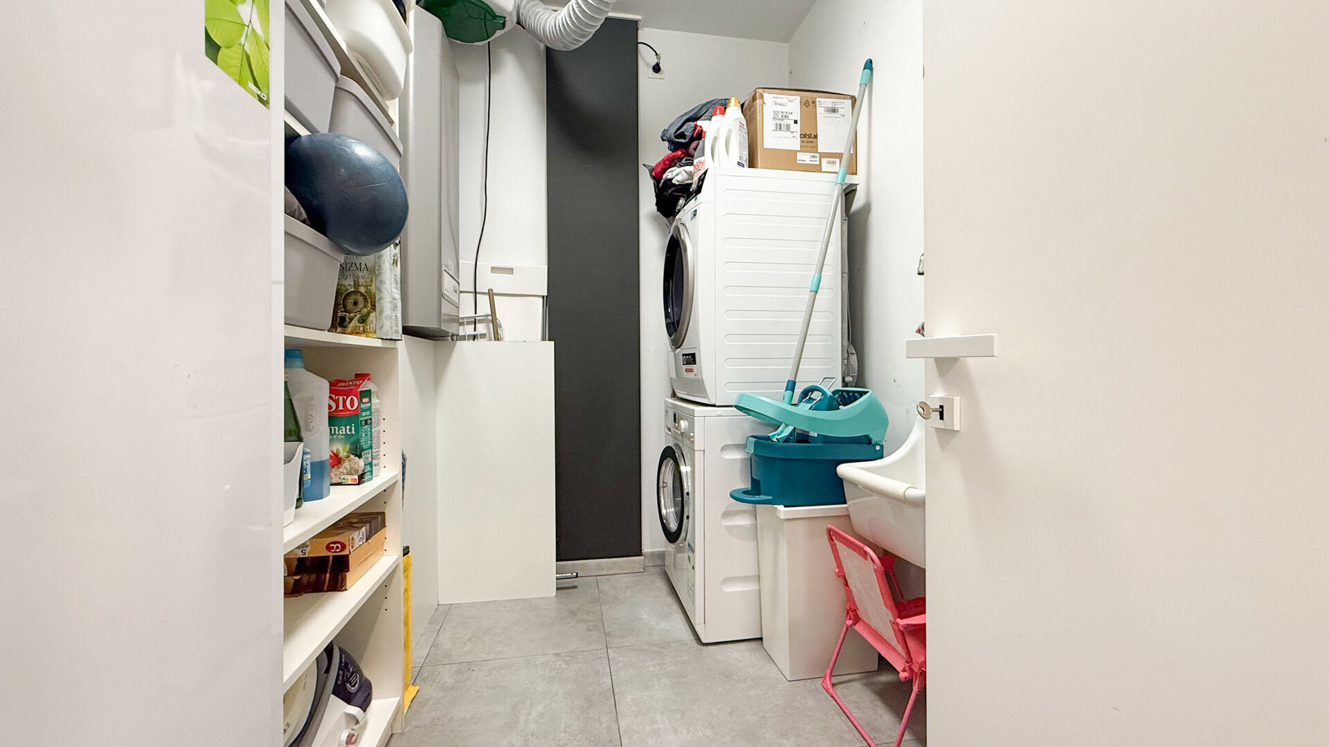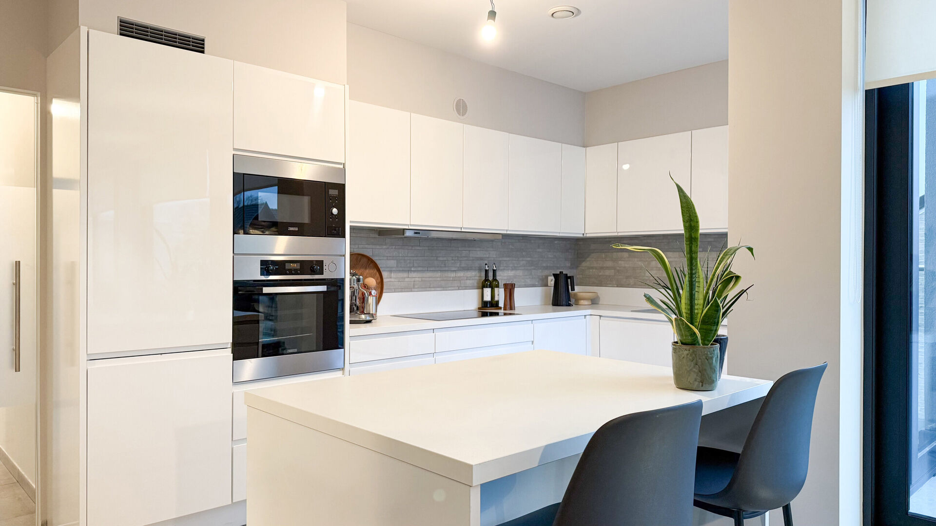 De keuken sluit naadloos aan op de leefruimte en is praktisch ingericht met oog voor detail en dagelijks comfort. Aansluitend bevindt zich een discrete, maar uiterst functionele berging met voorzieningen voor wasmachine en droogkast.