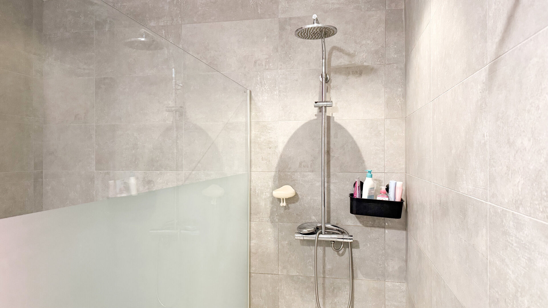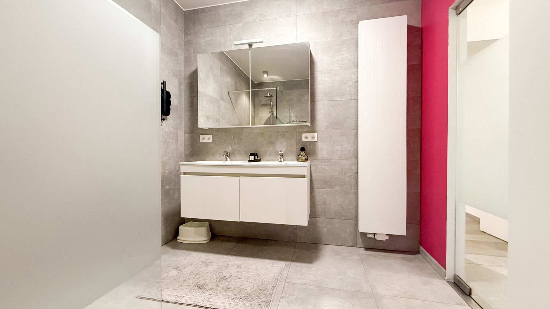 Het nachtgedeelte, zorgvuldig afgescheiden van de leefruimte, omvat drie volwaardige slaapkamers die rust en privacy garanderen. De centraal gelegen badkamer is stijlvol en functioneel ingericht en perfect afgestemd op het dagelijks gebruik van een gezin of koppel.