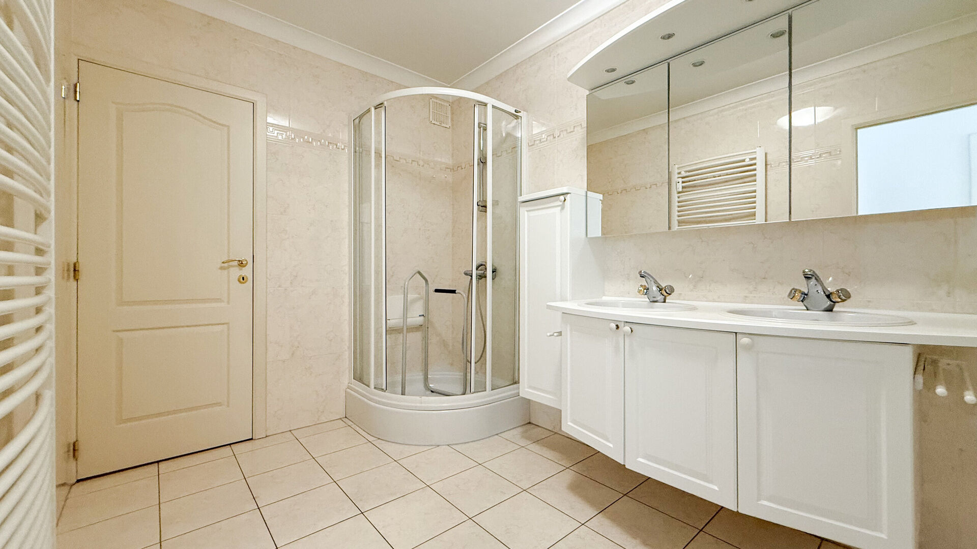 - Badkamer met douche en dubbele lavabo + apart toilet