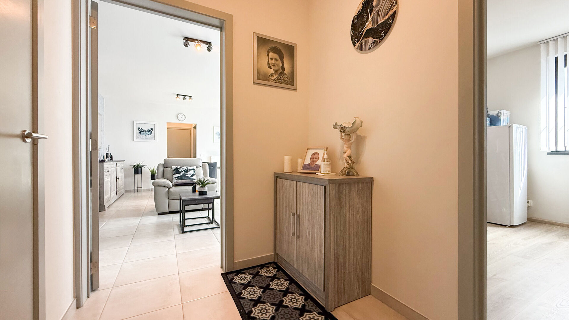 Bij het betreden van het appartement kom je binnen in de inkomhal, waar zich ook een apart gastentoilet bevindt. Van hieruit heb je toegang tot de lichtrijke leefruimte. De open indeling zorgt voor een aangenaam ruimtelijk gevoel, waarbij de woonkamer naadloos overgaat in de eetruimte en de keuken. Dankzij de grote raampartijen geniet je hier van een overvloed aan natuurlijk licht.