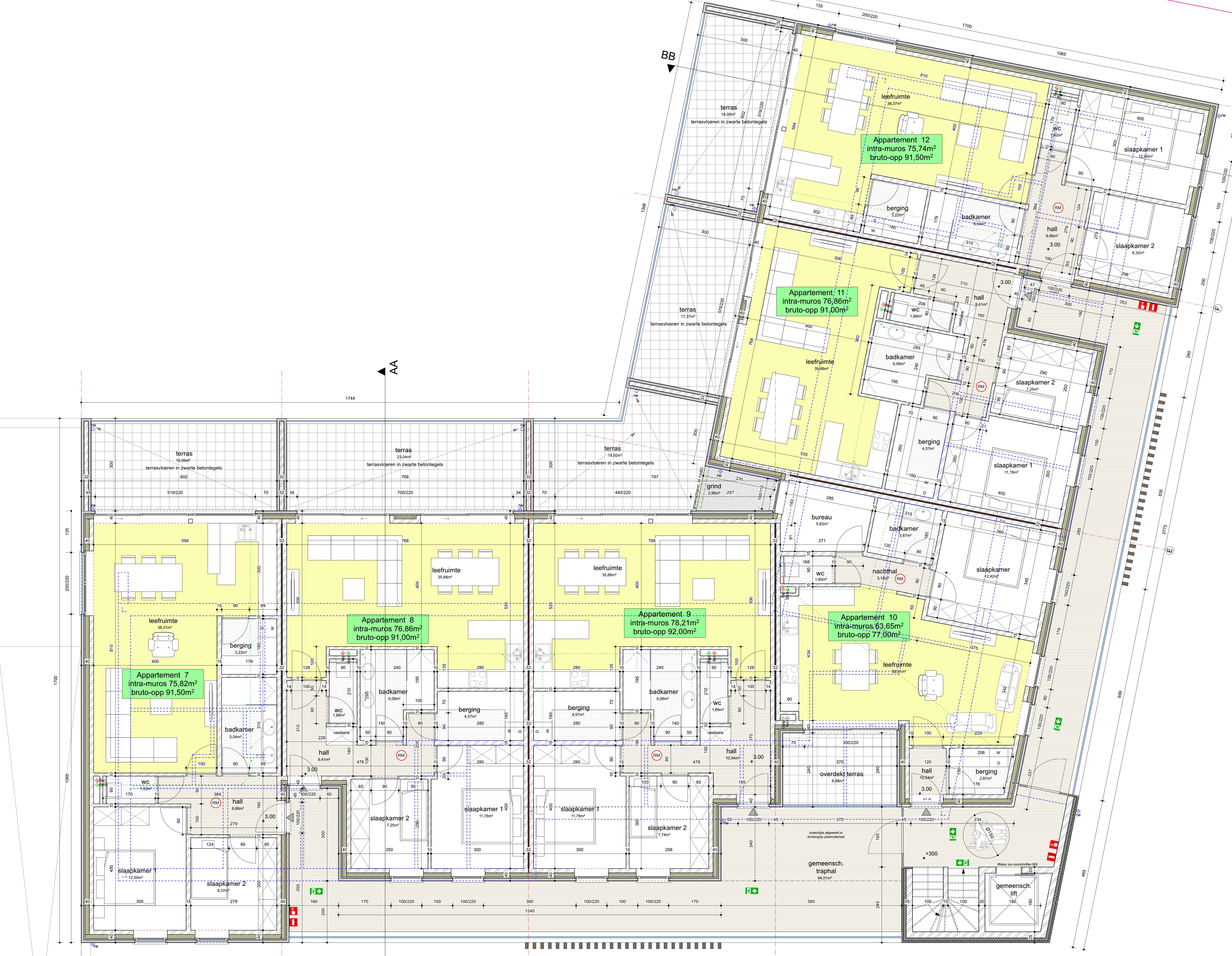 - App 8 : 91m² (2slk) met terras van 23m² = verkocht