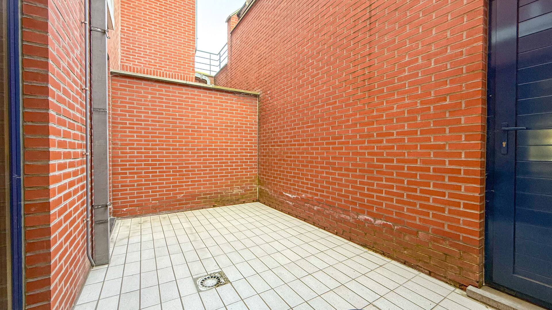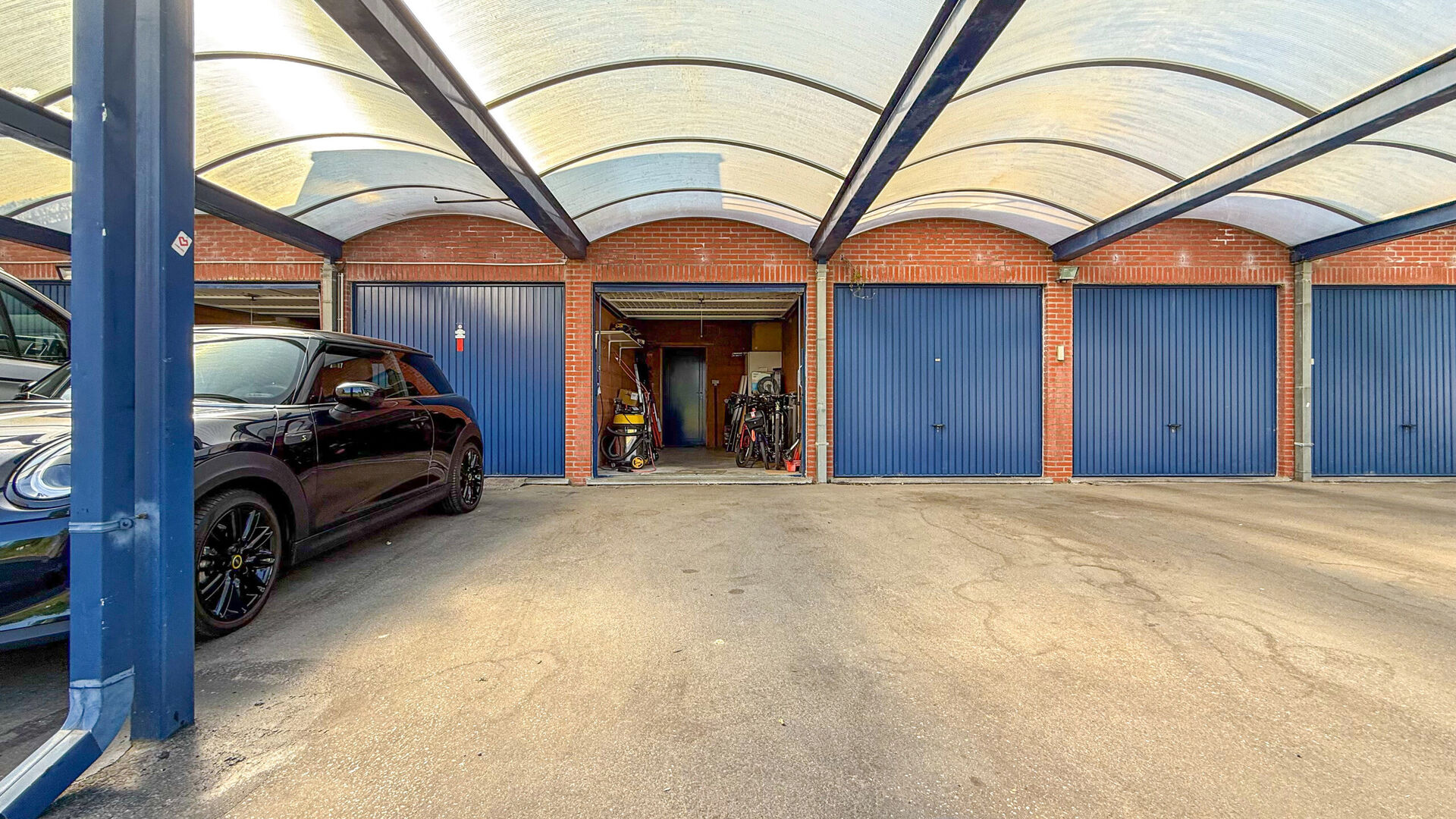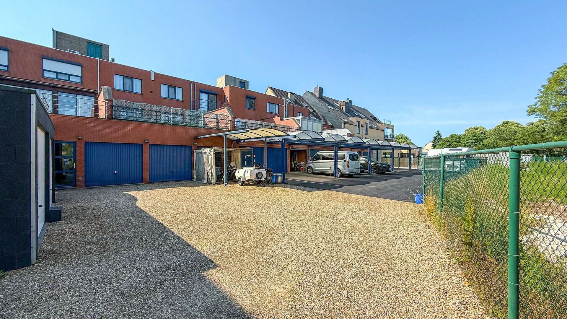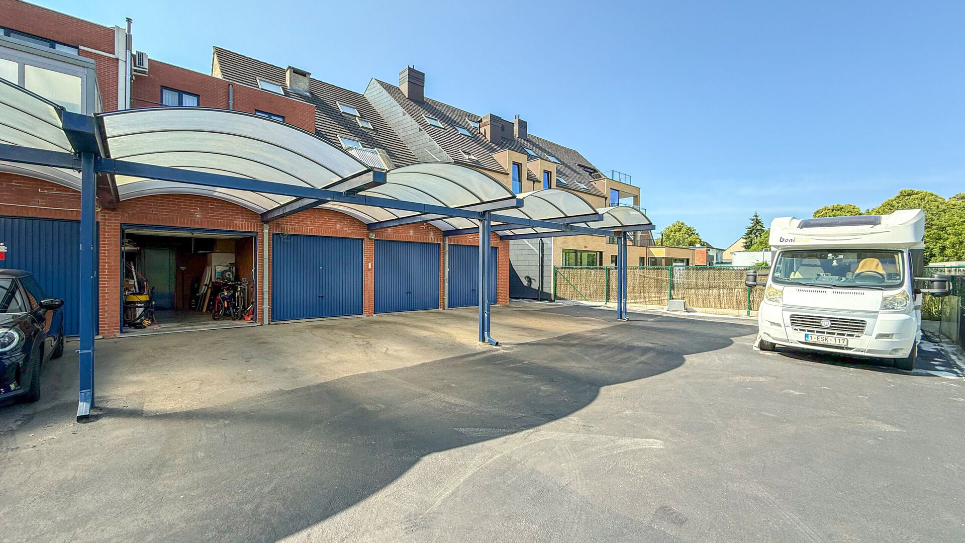 Parkeren kan uiteraard op het openbaar domein naast de Ringlaan , maar aan de achterzijde van het gebouw beschik je over een afgesloten garage en een privatieve autostaanplaats.