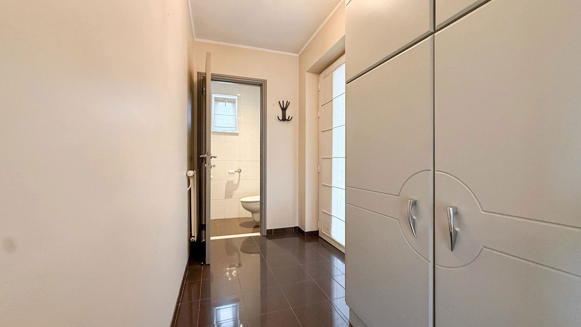 De lichtrijke woonkamer vormt het hart van het appartement en geeft rechtstreekse toegang tot het aangename terras, waar u in alle rust kan genieten van een moment buiten. Dankzij de slimme indeling en het gezellige karakter voelt dit appartement meteen als thuiskomen.