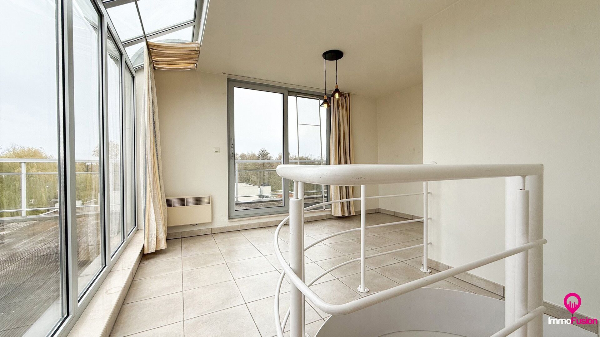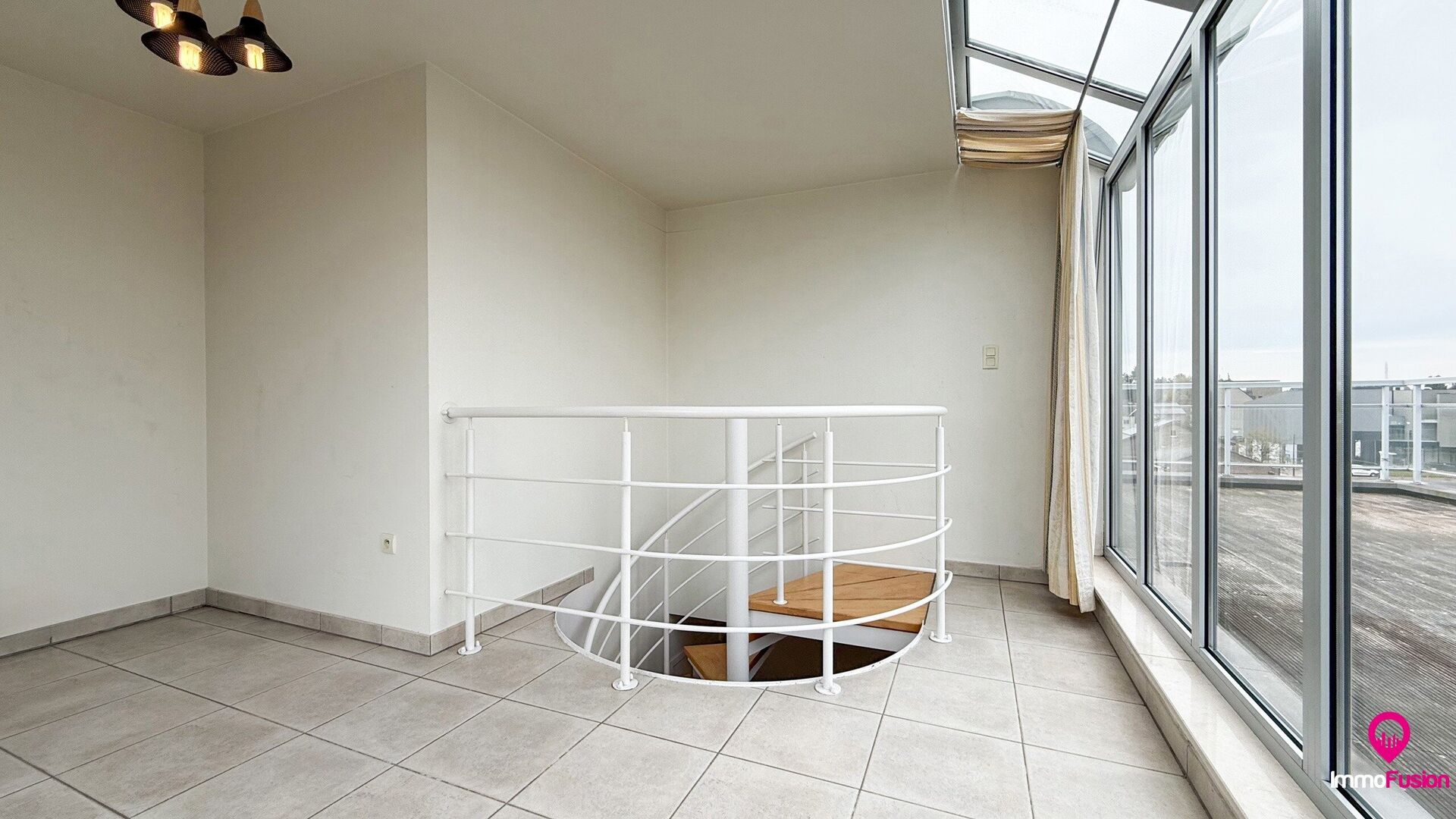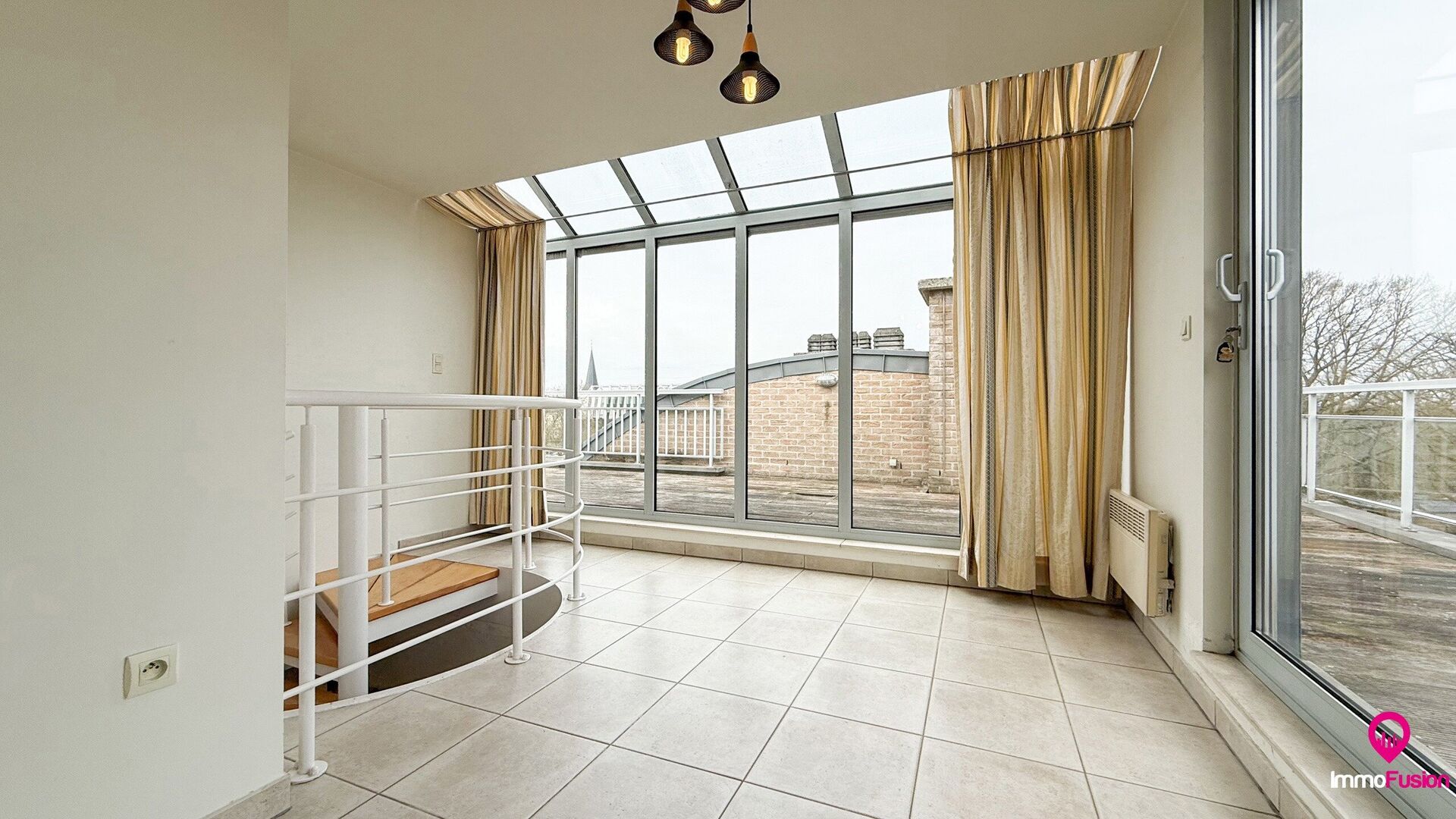 Bij binnenkomst in de inkomhal wordt u meteen verwelkomd door een verzorgde uitstraling. Aan de rechterzijde bevindt zich de trap die leidt naar de bovenste verdieping, waar zich een extra kamer bevindt met directe toegang tot het gezellige dakterras. Wanneer u verder doorloopt, komt u terecht in de ruime en lichtrijke living. Dankzij de grote raampartijen geniet deze ruimte van een aangename natuurlijke lichtinval.