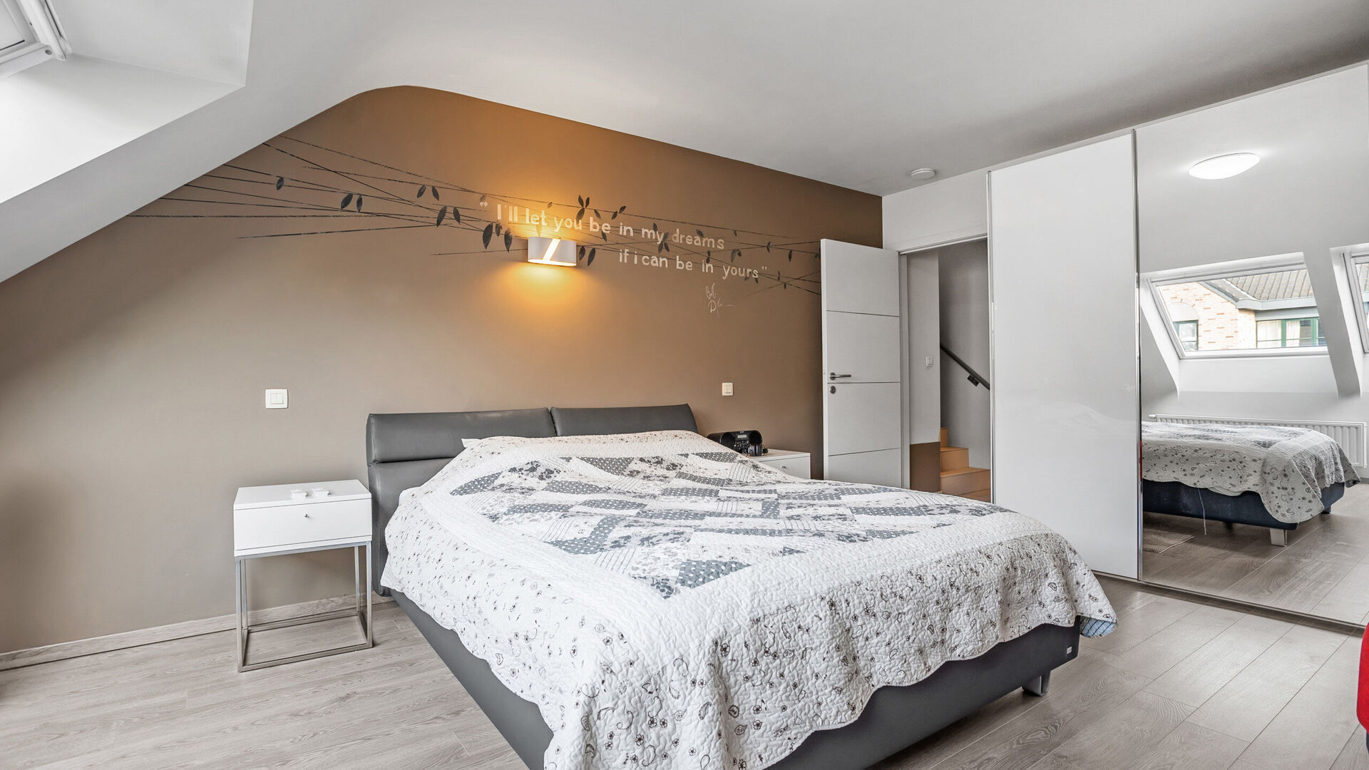 Verder op deze verdieping bevindt zich een ruime slaapkamer, een moderne badkamer met ligbad, douche, toilet en lavabo, een aparte wasruimte met aansluitingen voor wasmachine en droogkast, en een kamer die momenteel dienstdoet als dressing.