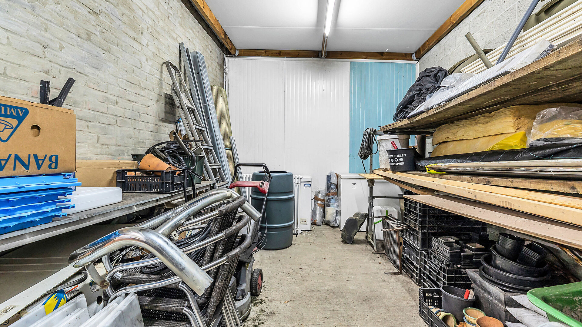 Het gebouw bestaat voor het grootste deel uit opslagruimte en biedt hierdoor tal van professionele mogelijkheden. Deze opslagruimte is toegankelijk via een automatische sectionaalpoort, beschikt over een vrije hoogte van ca. 3 meter, lichtstraten en een aparte garage met een eigen sectionaalpoort. Daarnaast zijn er voorzieningen zoals drijfkracht en perslucht, wat het pand extra geschikt maakt voor ambachtelijke of industriële activiteiten.