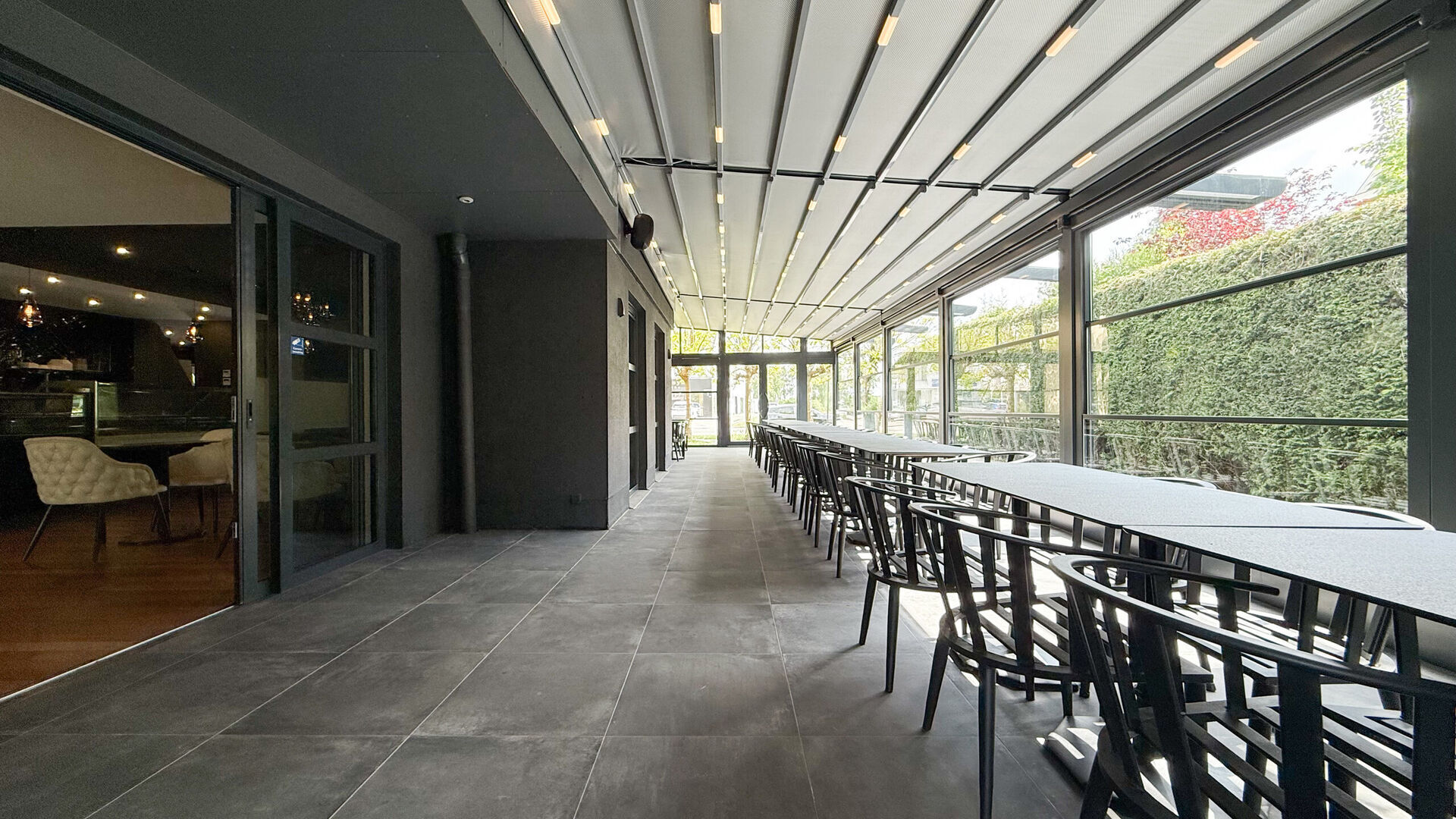 Het handelspand is recent volledig gerenoveerd en er werd ook meteen een prachtige terras voorzien (met automatische vensters en volledig openklapbare roof/dak ). Achter op het perceel is er nog een ruime garage die ook perfect als opslagruimte kan dienen!