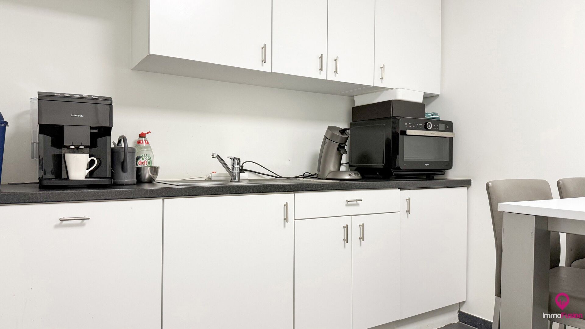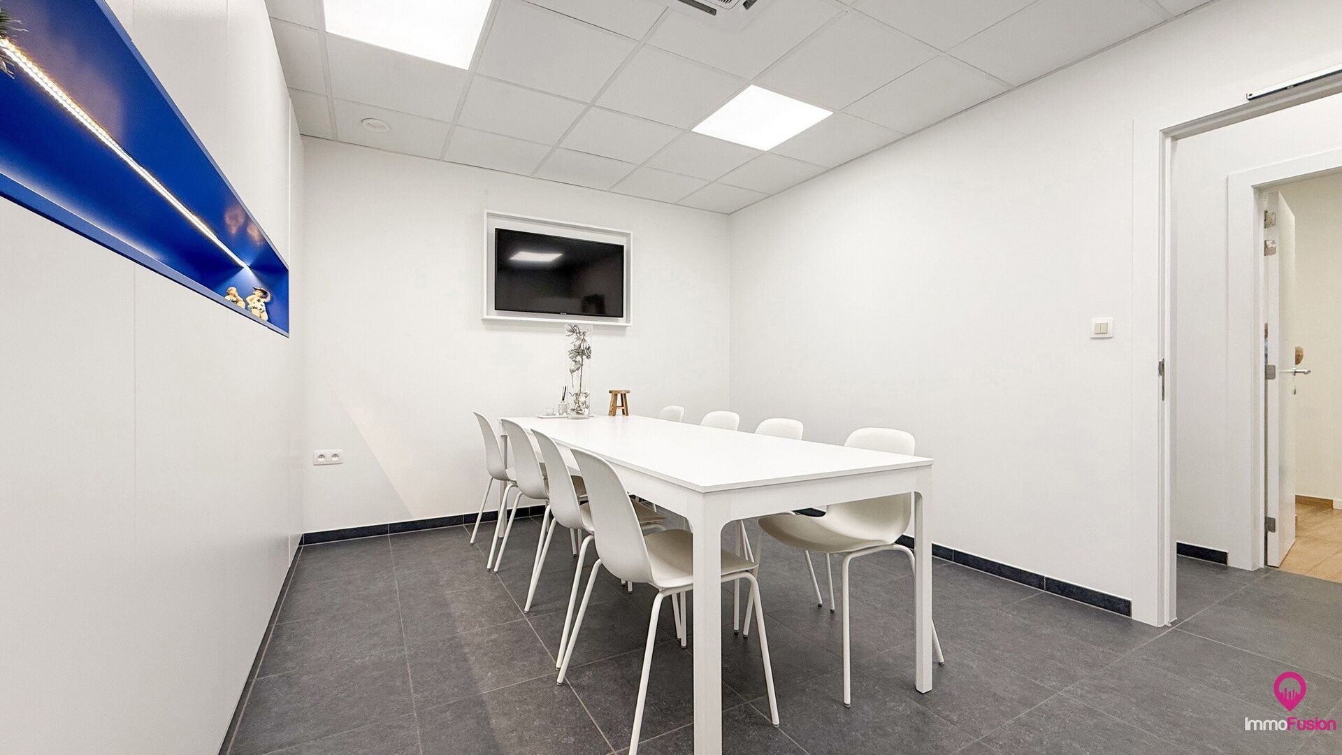 Op het gelijkvloers bevinden zich zowel het professionele gedeelte als het woongedeelte, die functioneel en praktisch van elkaar gescheiden zijn. Aan de voorzijde van het gebouw treft u de kantoren, vergaderruimtes, het sanitaire gedeelte en een ingerichte keuken, wat zorgt voor een comfortabele en professionele werkomgeving voor u en uw medewerkers. Alles is netjes afgewerkt en instapklaar.