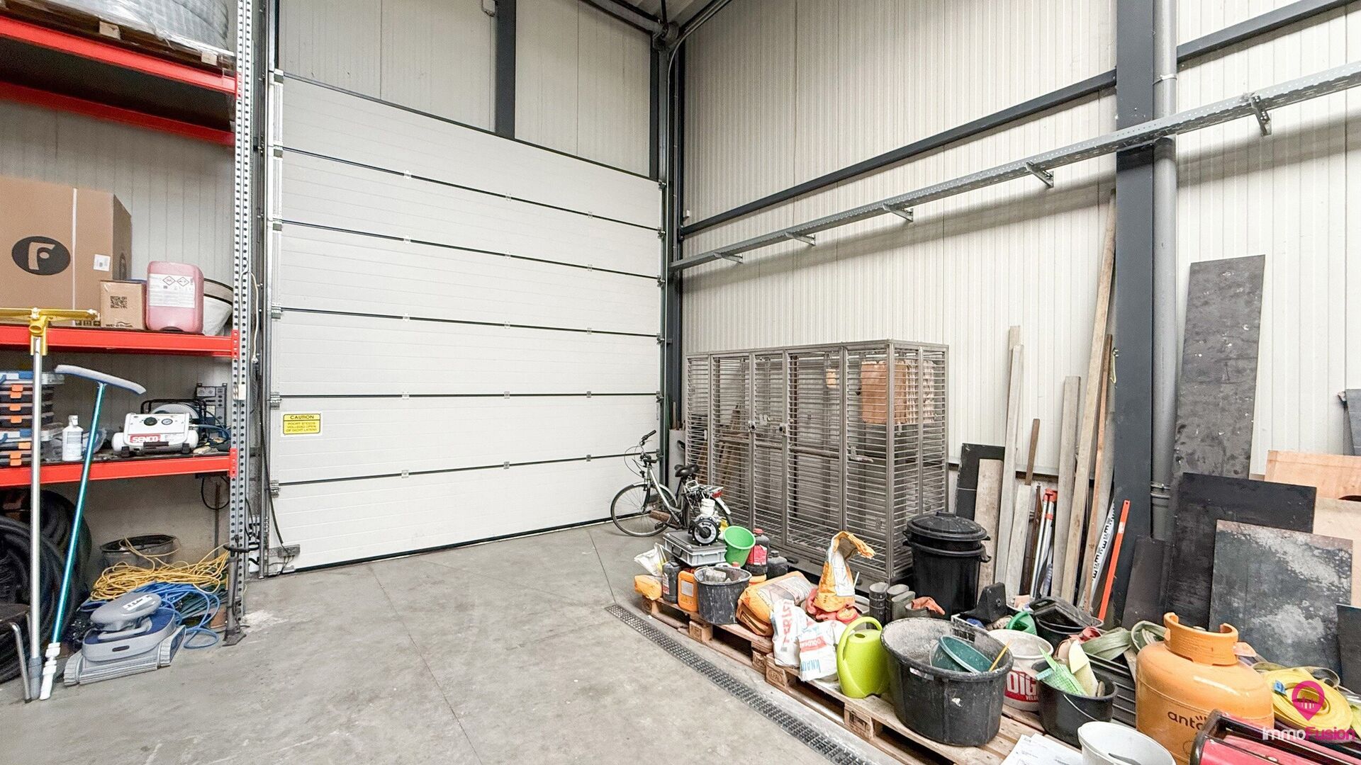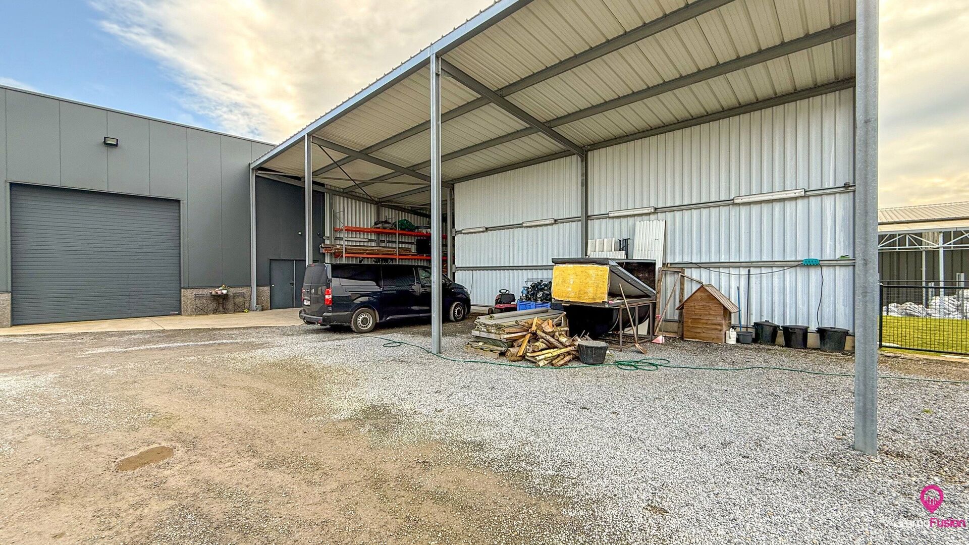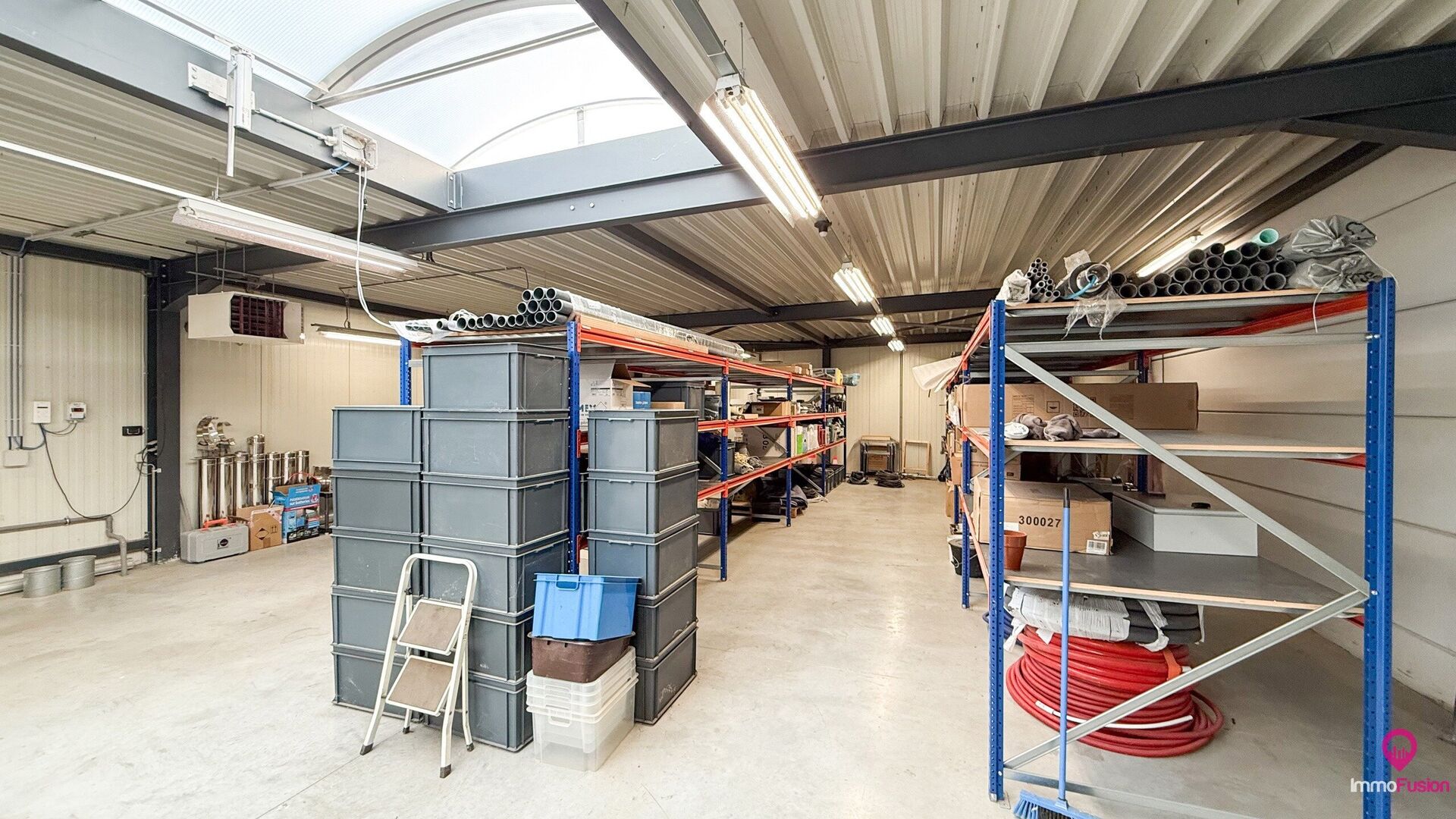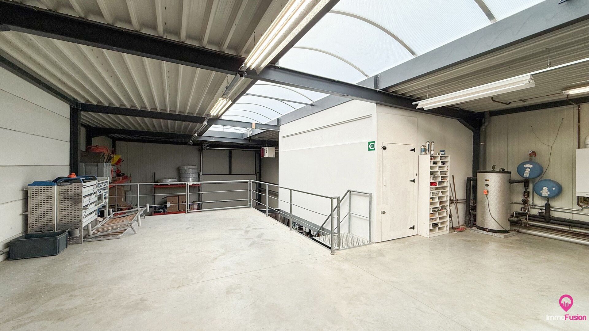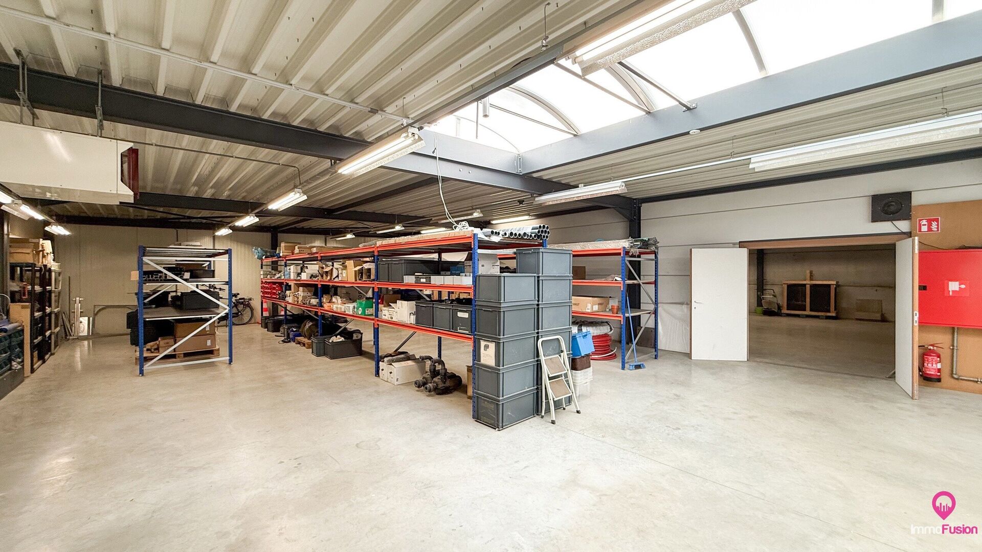 Het magazijn is ruim, overzichtelijk en multifunctioneel inzetbaar. Er is toegang tot het gebouw via de achterkant, wat bijzonder handig is voor leveringen en stockage. Aan deze zijde bevindt zich bovendien een overdekt gedeelte voor het opslaan van materialen, uitgerust met bijhorende stapelrekken. Van hieruit kan u het magazijn rechtstreeks betreden via de achterdeur of via de sectionale poort, wat een vlotte en efficiënte logistieke flow mogelijk maakt. Vooraan het gebouw is er ruime parkeergelegenheid voor klanten, leveranciers en personeel.