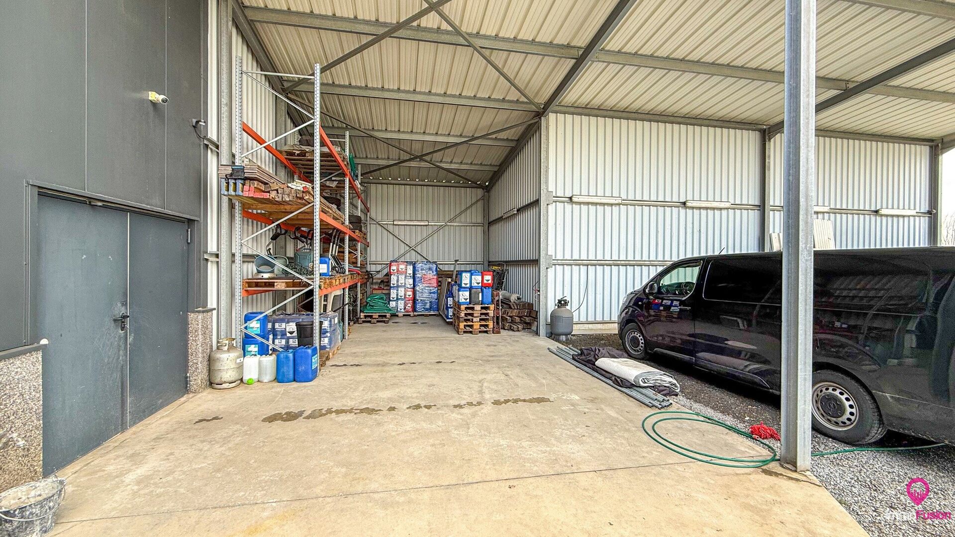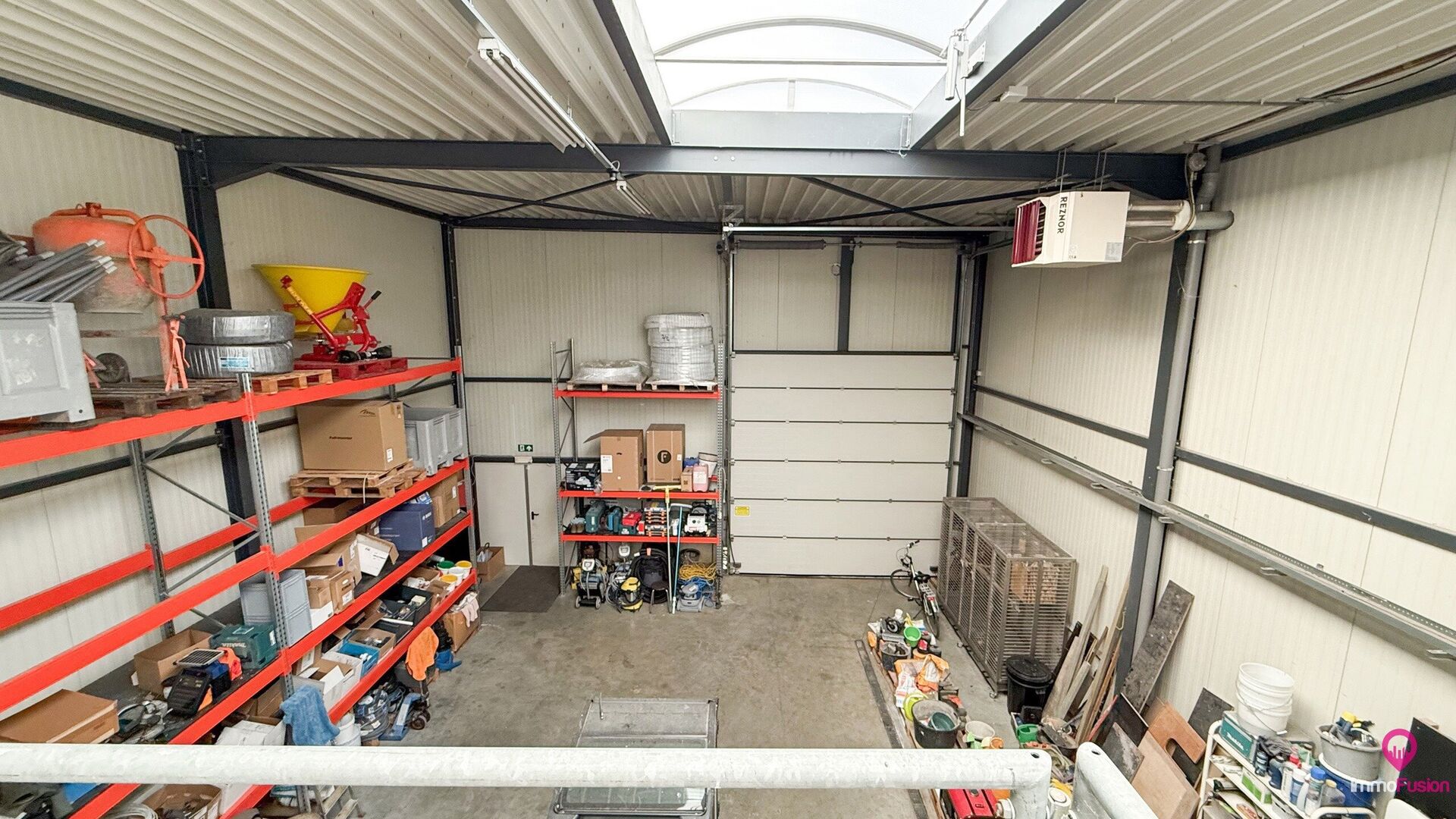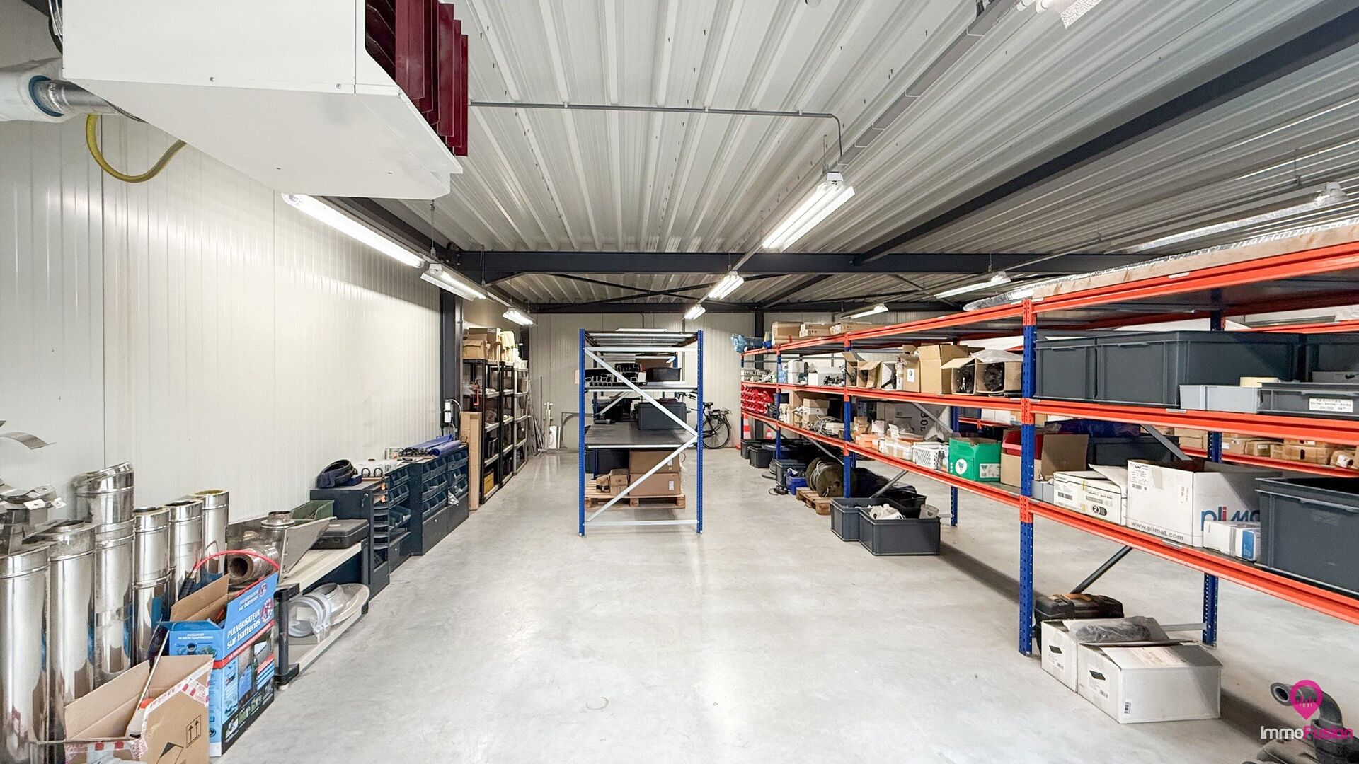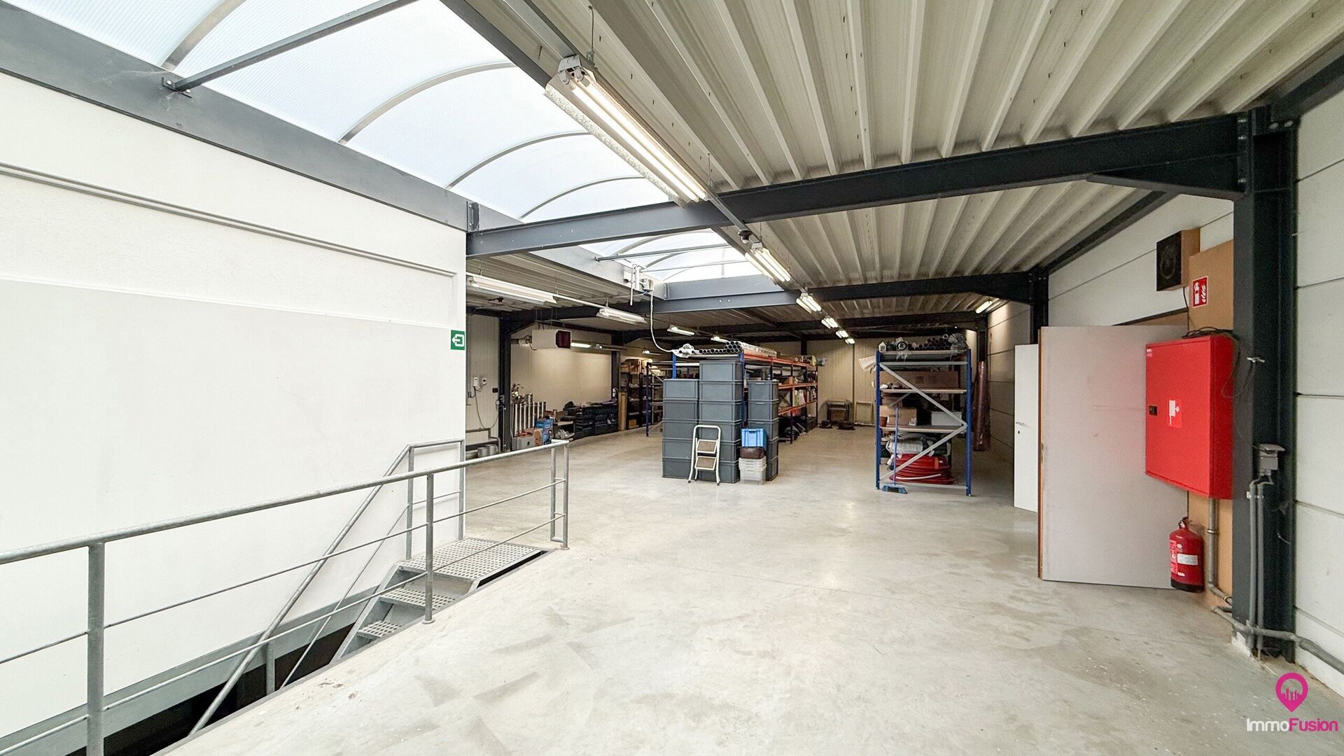 Het magazijn is ruim, overzichtelijk en multifunctioneel inzetbaar. Er is toegang tot het gebouw via de achterkant, wat bijzonder handig is voor leveringen en stockage. Aan deze zijde bevindt zich bovendien een overdekt gedeelte voor het opslaan van materialen, uitgerust met bijhorende stapelrekken. Van hieruit kan u het magazijn rechtstreeks betreden via de achterdeur of via de sectionale poort, wat een vlotte en efficiënte logistieke flow mogelijk maakt. Vooraan het gebouw is er ruime parkeergelegenheid voor klanten, leveranciers en personeel.