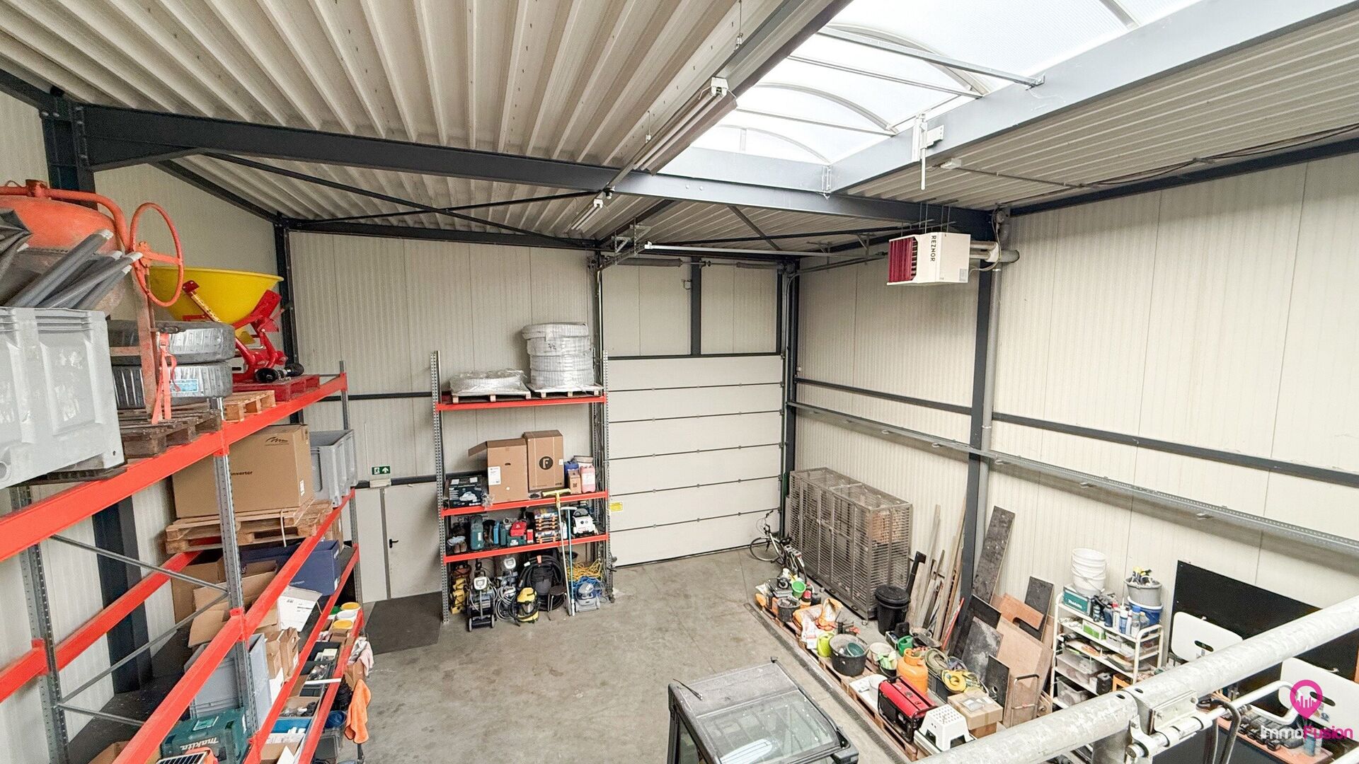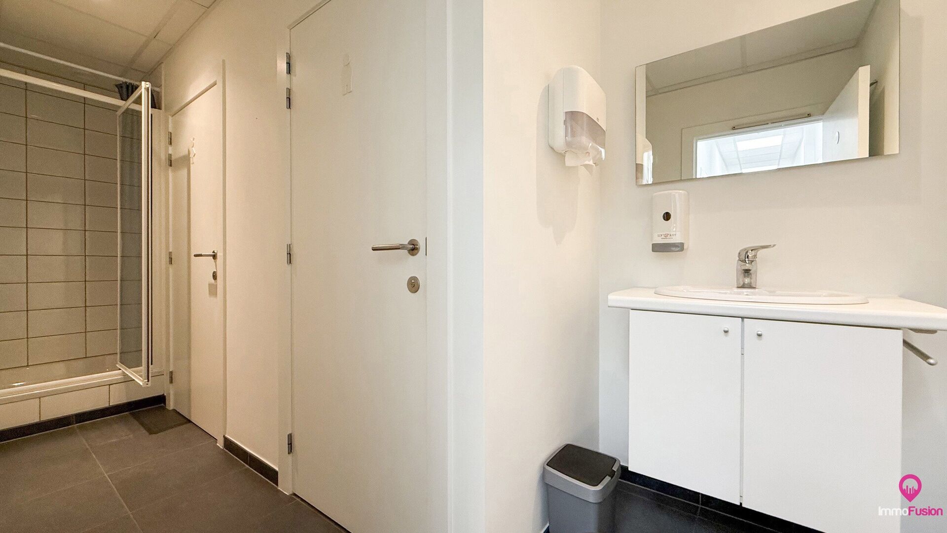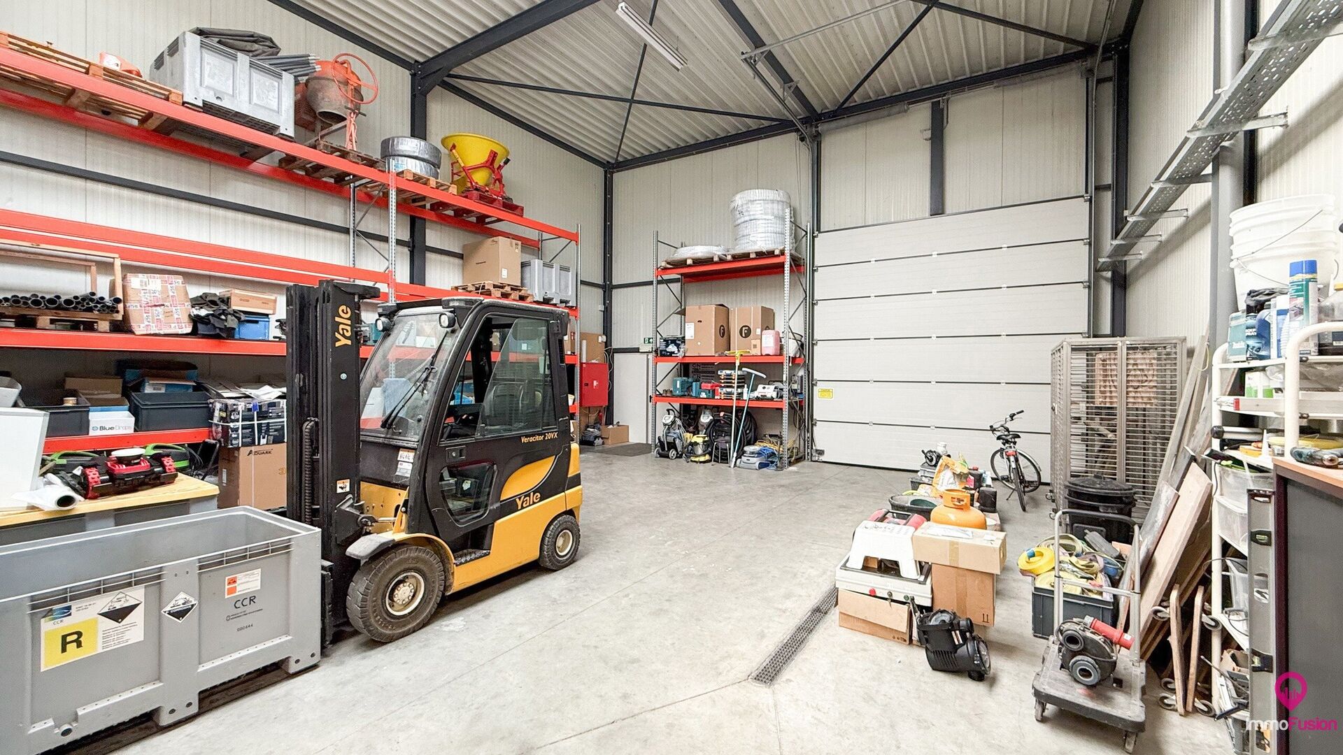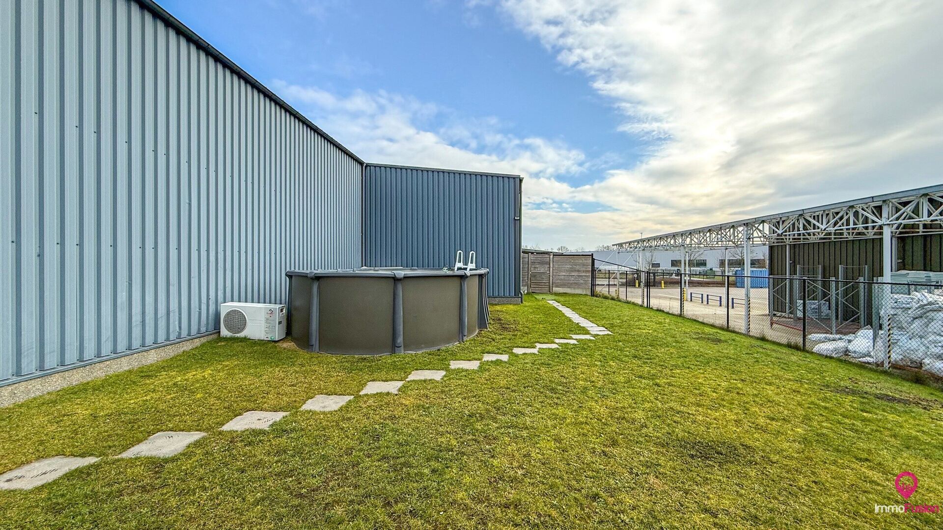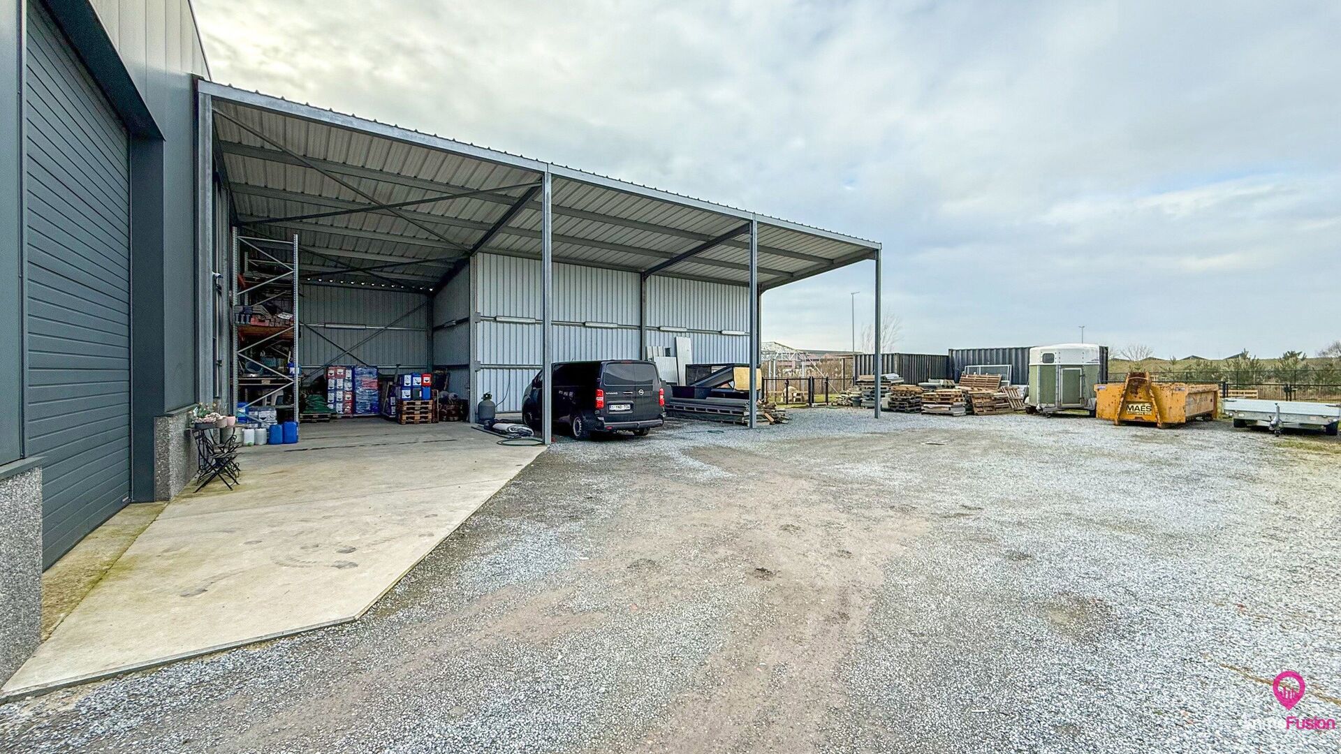 Het magazijn is ruim, overzichtelijk en multifunctioneel inzetbaar. Er is toegang tot het gebouw via de achterkant, wat bijzonder handig is voor leveringen en stockage. Aan deze zijde bevindt zich bovendien een overdekt gedeelte voor het opslaan van materialen, uitgerust met bijhorende stapelrekken. Van hieruit kan u het magazijn rechtstreeks betreden via de achterdeur of via de sectionale poort, wat een vlotte en efficiënte logistieke flow mogelijk maakt. Vooraan het gebouw is er ruime parkeergelegenheid voor klanten, leveranciers en personeel.