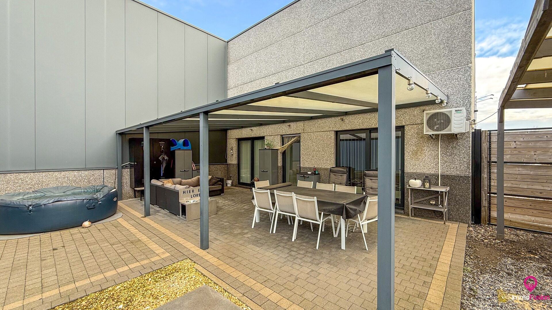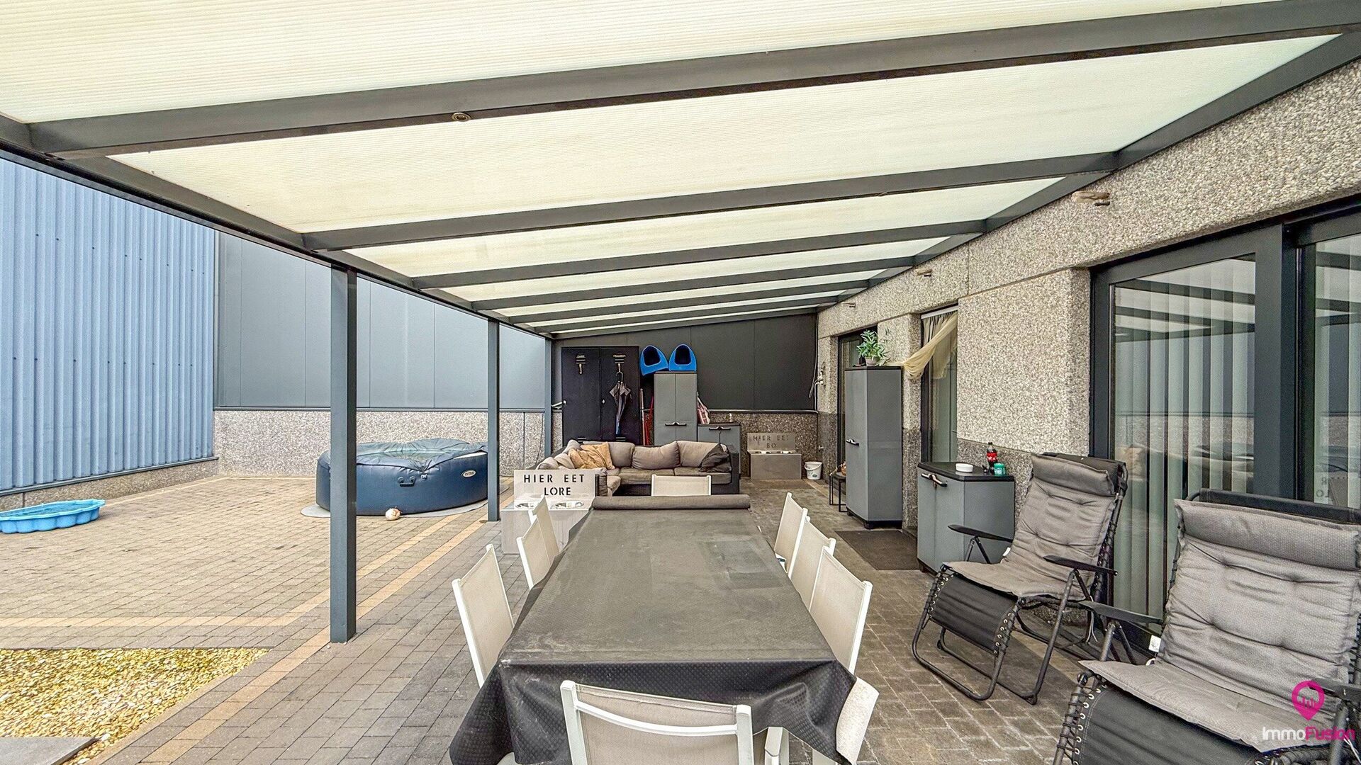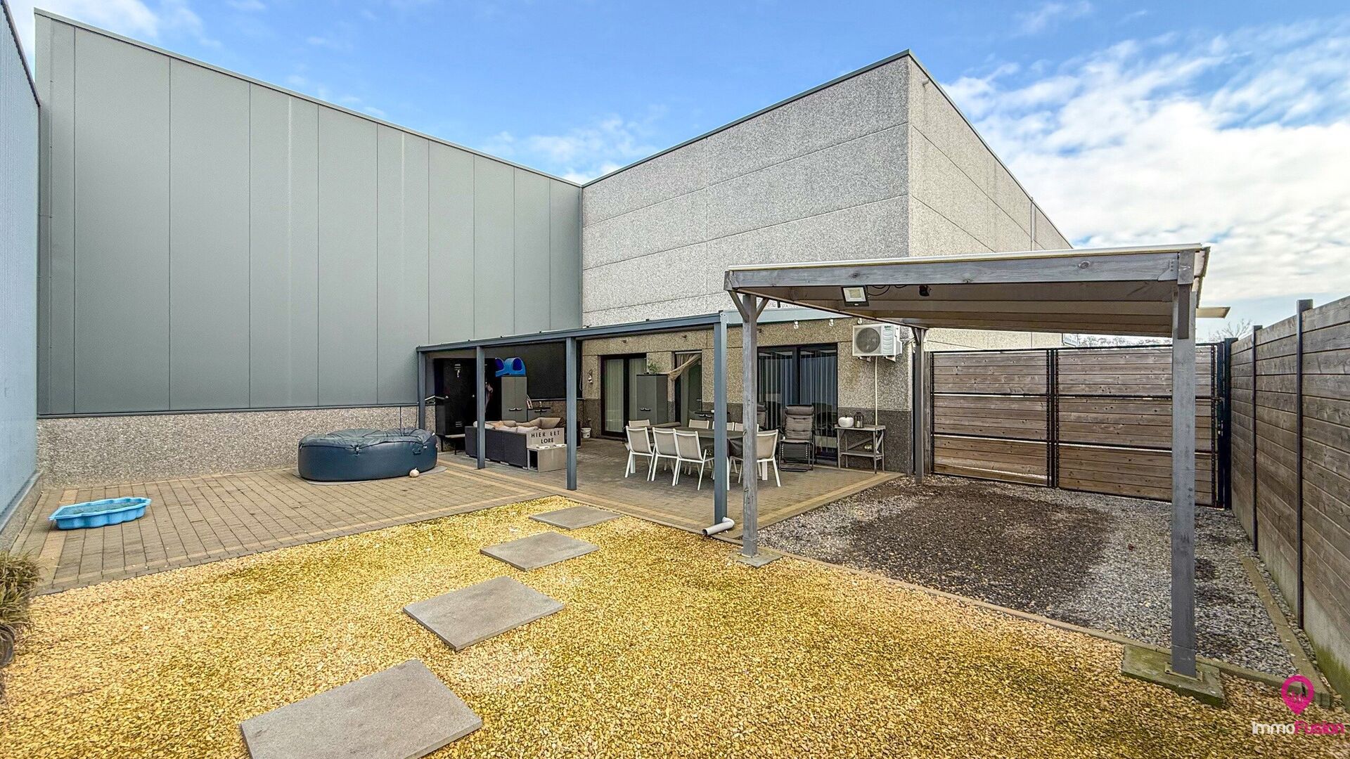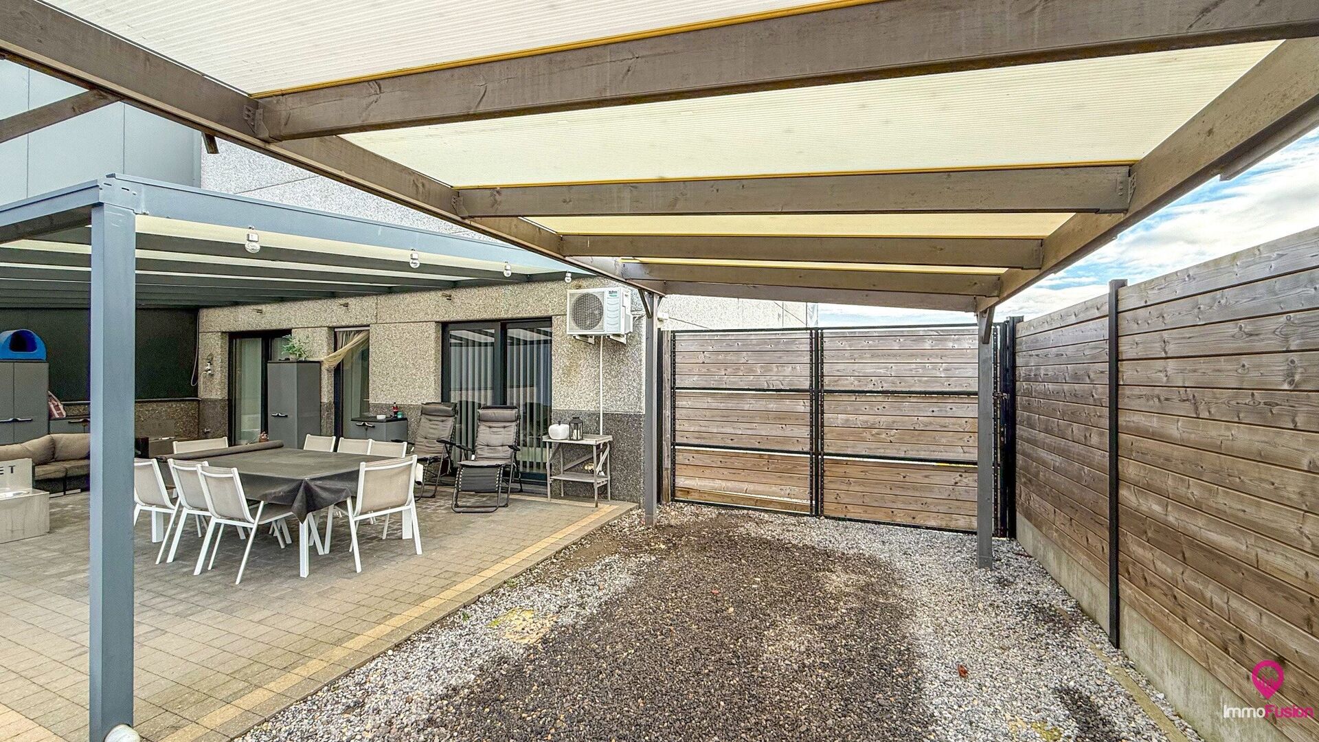 Het woongedeelte op het gelijkvloers omvat een ruim en lichtrijk appartement met twee volwaardige slaapkamers. De gezellige leefruimte sluit naadloos aan op het grote, afgesloten overdekte terras via een groot raam met glazen deur, waardoor binnen en buiten harmonieus in elkaar overvloeien. Het terras biedt veel privacy en laat u het hele jaar door comfortabel genieten. Naast het terras bevindt zich bovendien een carport, wat extra praktisch comfort biedt. Aansluitend is er ook een private tuin waar u in alle rust kan ontspannen.