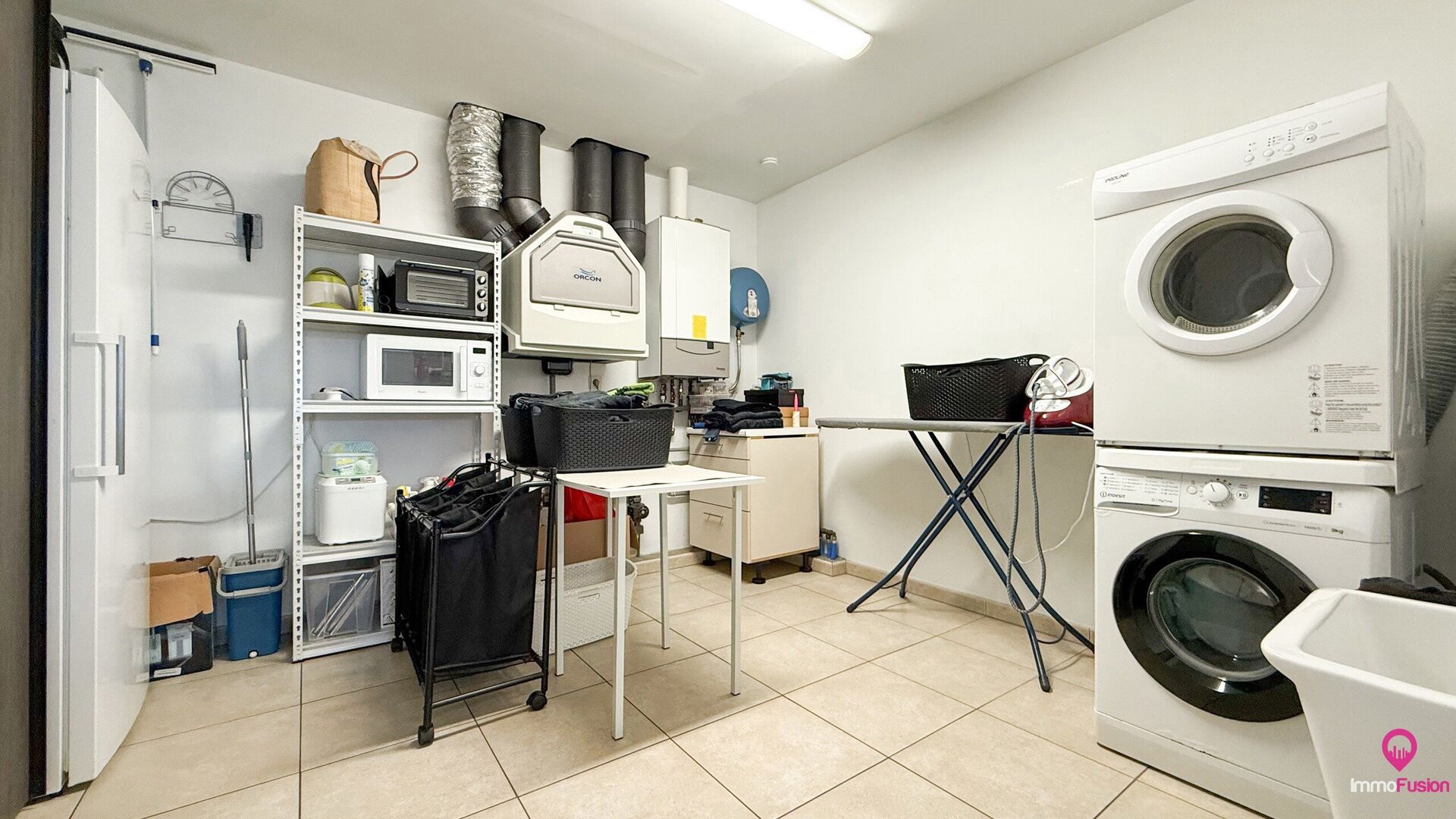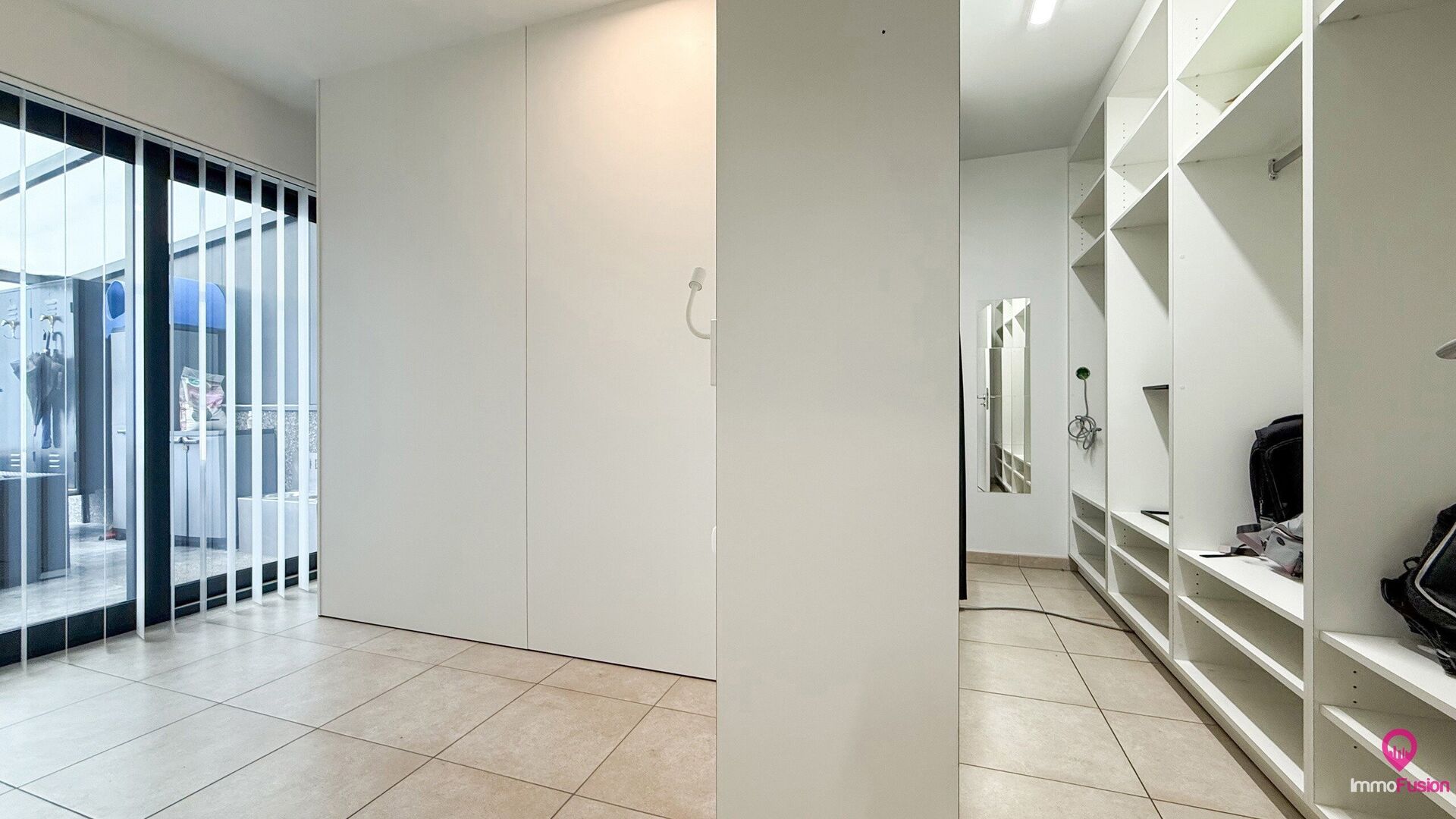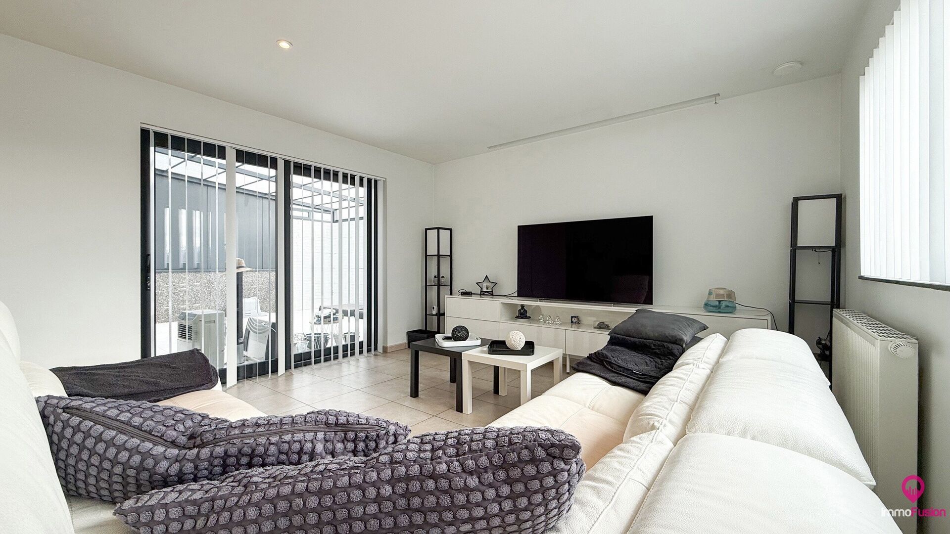 Het woongedeelte op het gelijkvloers omvat een ruim en lichtrijk appartement met twee volwaardige slaapkamers. De gezellige leefruimte sluit naadloos aan op het grote, afgesloten overdekte terras via een groot raam met glazen deur, waardoor binnen en buiten harmonieus in elkaar overvloeien. Het terras biedt veel privacy en laat u het hele jaar door comfortabel genieten. Naast het terras bevindt zich bovendien een carport, wat extra praktisch comfort biedt. Aansluitend is er ook een private tuin waar u in alle rust kan ontspannen.