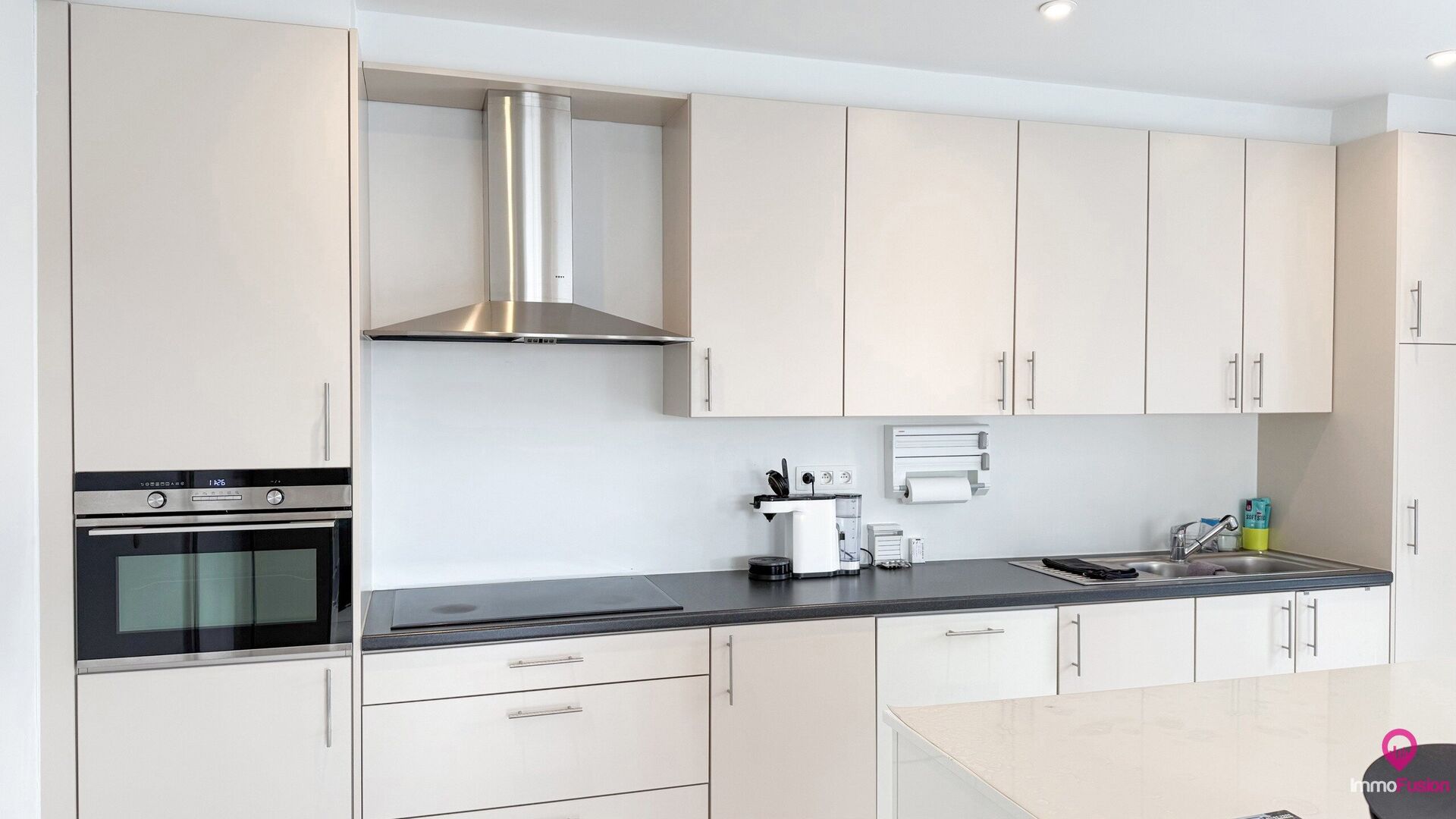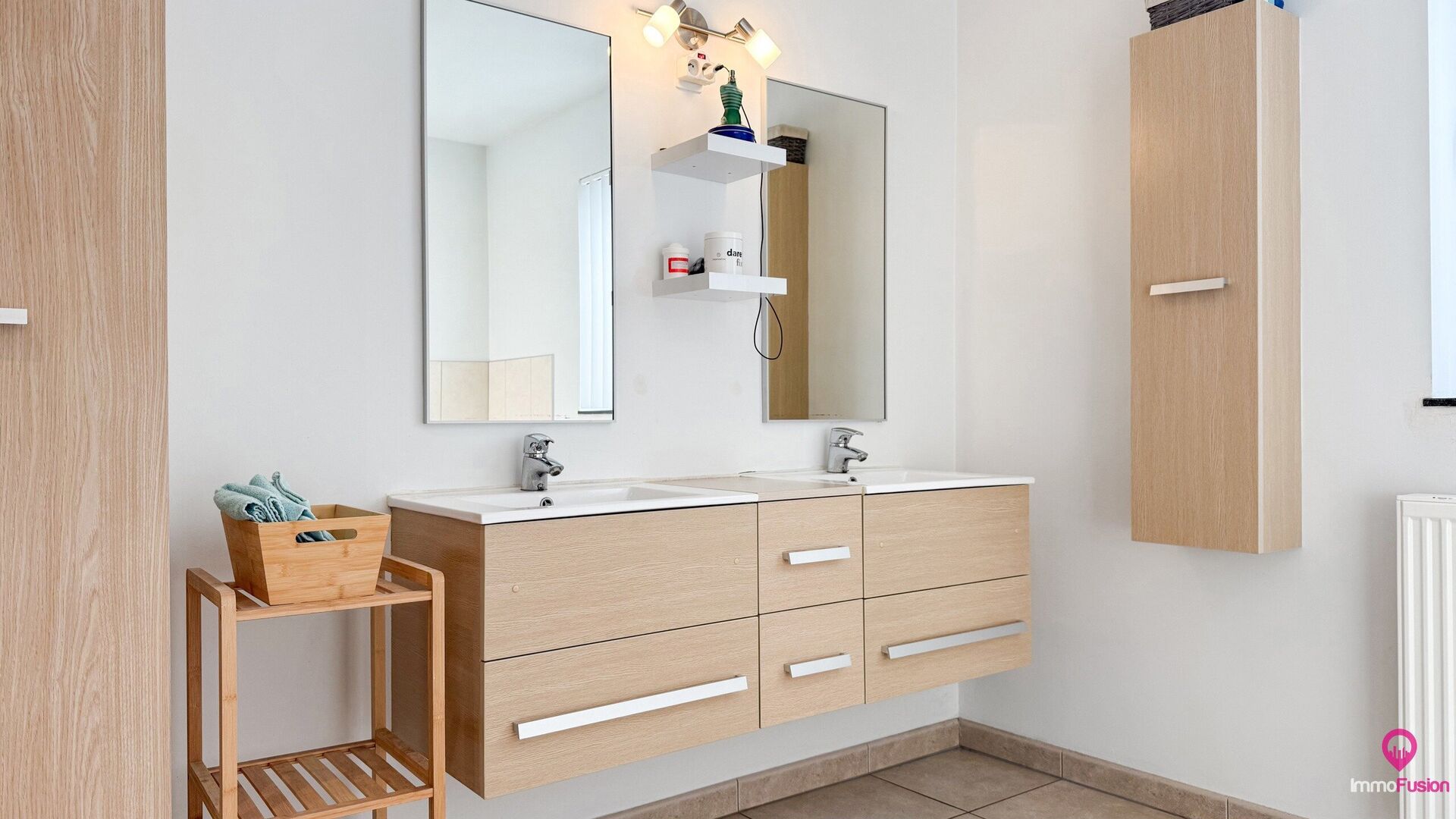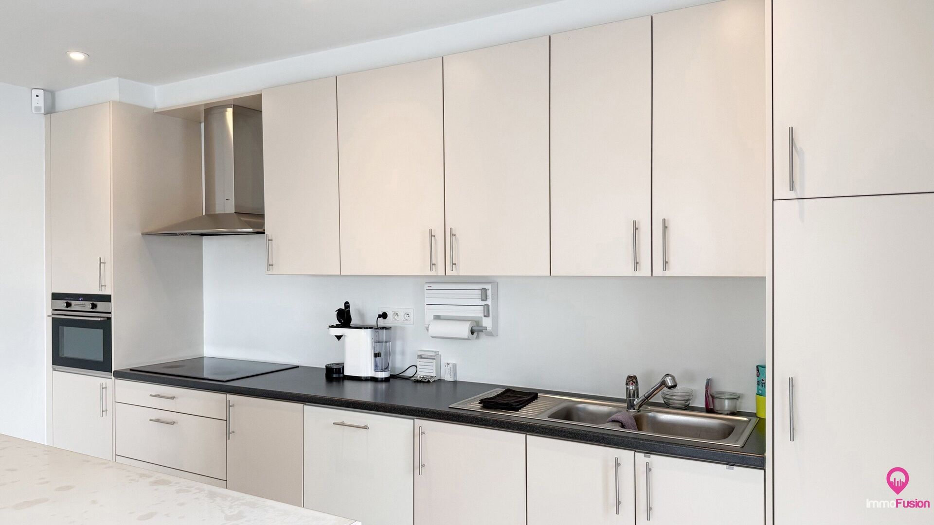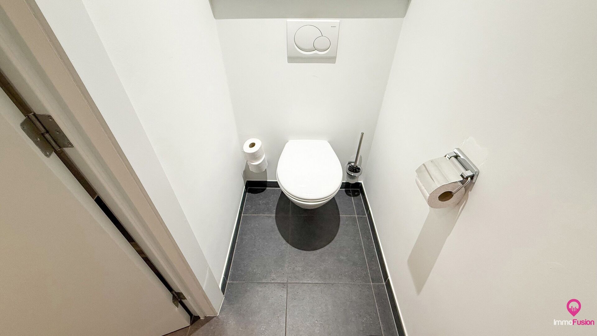 Het woongedeelte op het gelijkvloers omvat een ruim en lichtrijk appartement met twee volwaardige slaapkamers. De gezellige leefruimte sluit naadloos aan op het grote, afgesloten overdekte terras via een groot raam met glazen deur, waardoor binnen en buiten harmonieus in elkaar overvloeien. Het terras biedt veel privacy en laat u het hele jaar door comfortabel genieten. Naast het terras bevindt zich bovendien een carport, wat extra praktisch comfort biedt. Aansluitend is er ook een private tuin waar u in alle rust kan ontspannen.