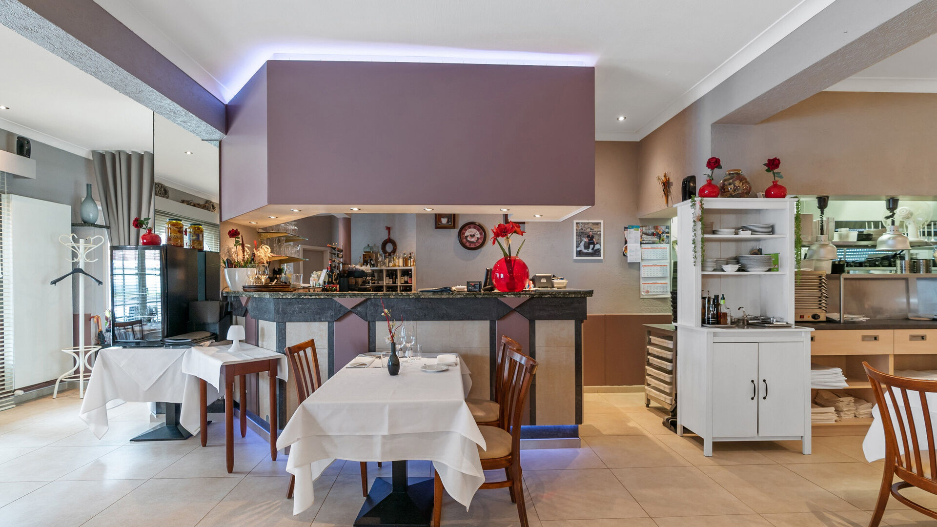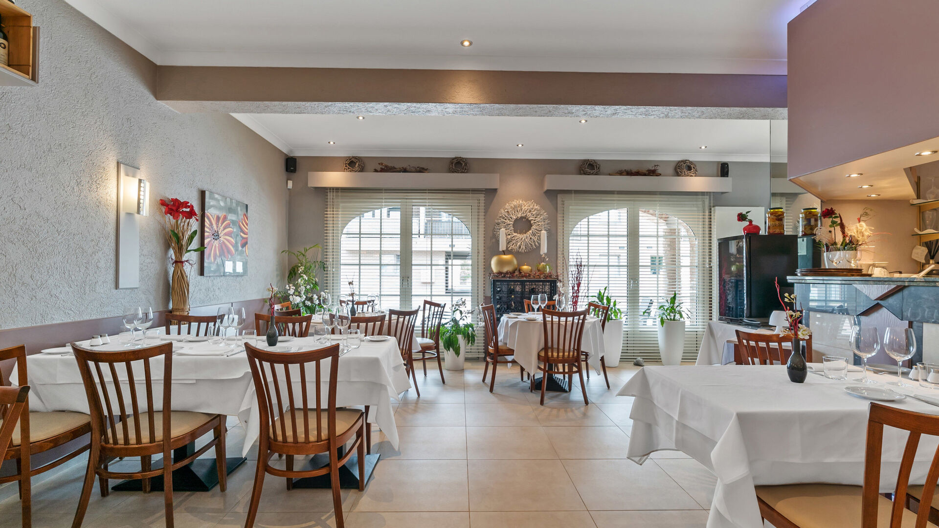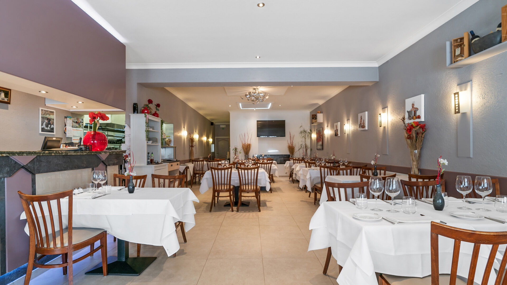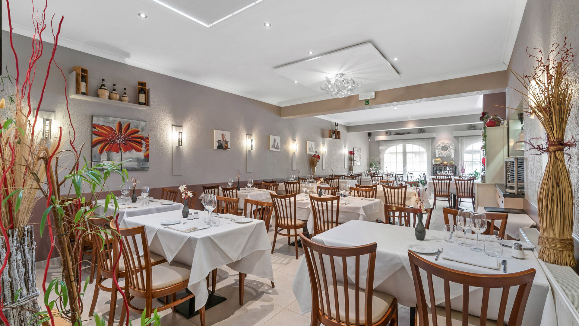 Het handelspand straalt authenticiteit en gezelligheid uit en is goed onderhouden. Een lichte, grote tegelvloer loopt doorheen het volledige pand en zorgt voor een frisse uitstraling en een praktisch onderhoud. De huidige indeling omvat een ruime ontvangstruimte met centrale toog/balie, ideaal te benutten als toonbank, servicepunt of onthaal.