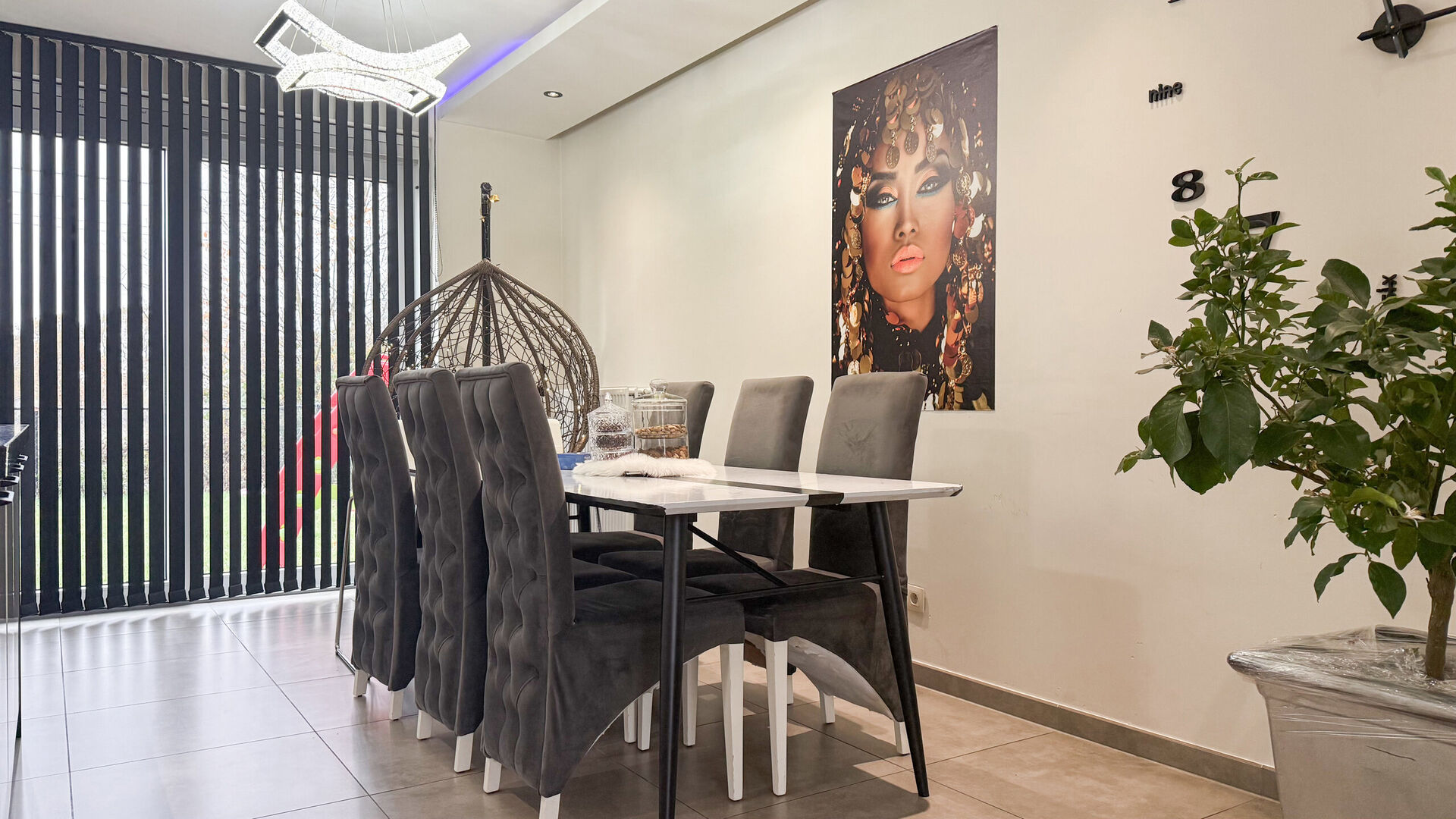 De lichte open leefruimte vormt het hart van de woning en nodigt uit tot gezellig samenzijn. Links bevindt zich de ruime zithoek, terwijl rechts de grote keuken met half eiland en veel bergruimte perfect aansluit op de eetruimte. Door de grote ramen is er overvloedig daglicht en een mooi zicht op de volledig omheinde tuin achteraan.