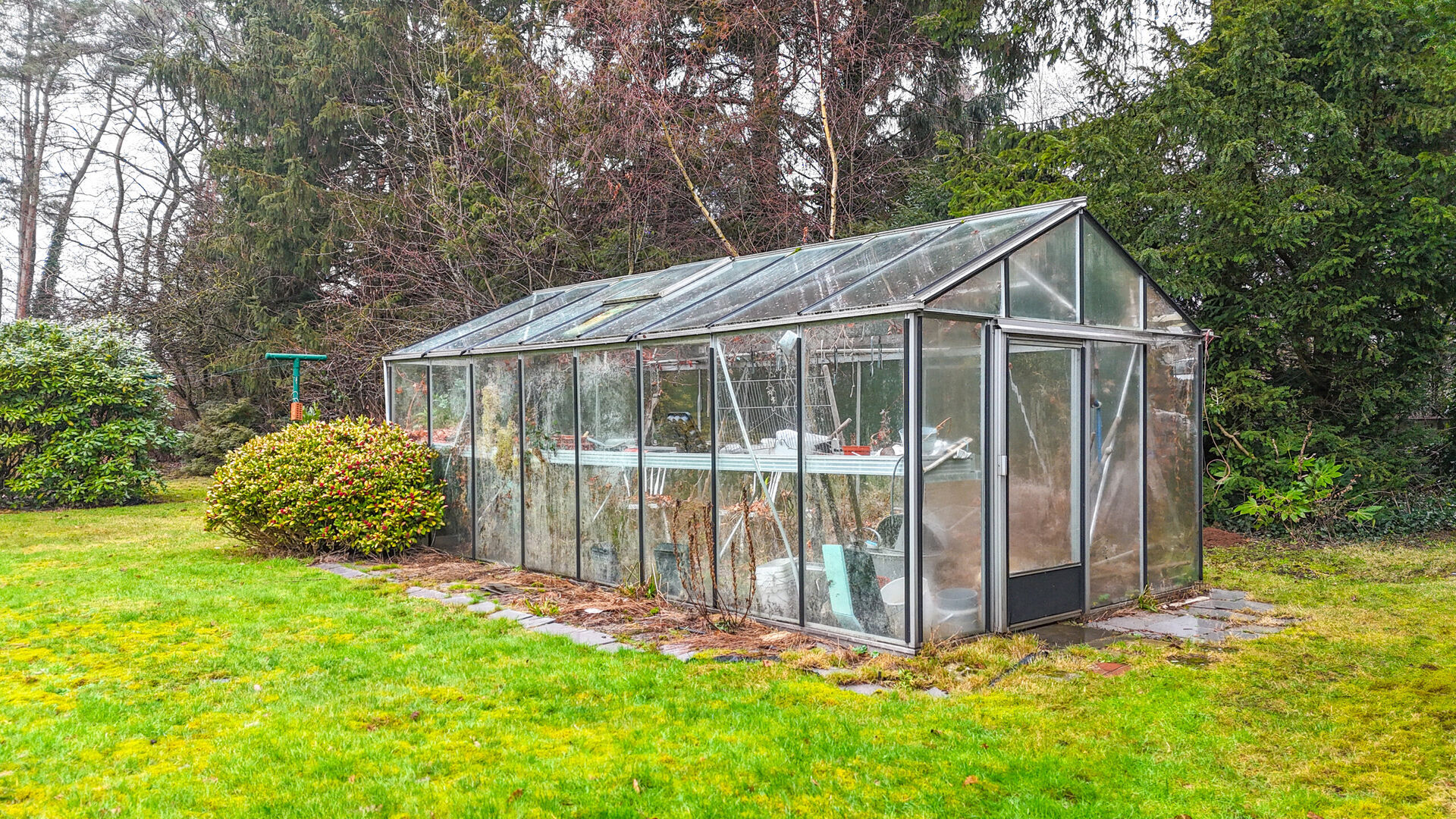 Buiten geniet u van een uitzonderlijk groot perceel van meer dan 30 are met een enorme tuin en serre, ideaal voor tuinliefhebbers of gezinnen die houden van ruimte en privacy.