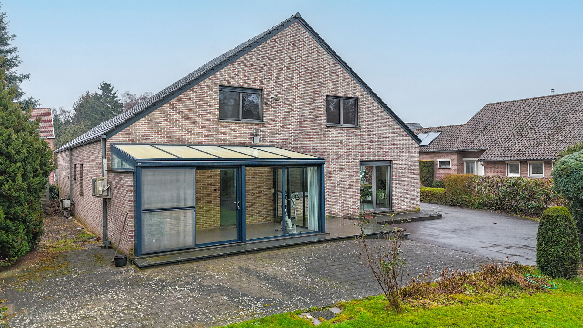 Vanuit deze ruimte bereiken we de veranda, die verwarmd wordt met een airco aangesloten op een warmtepomp. Dit maakt het een aangename plek om het hele jaar door te vertoeven.
