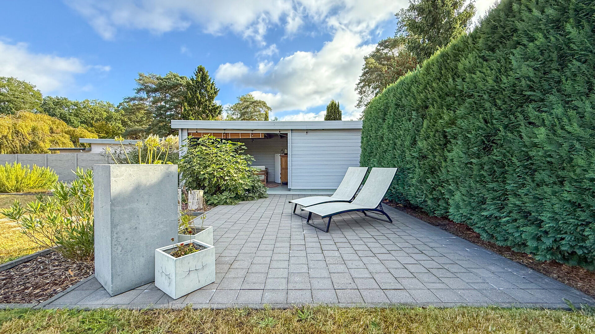 Achteraan geniet je van een onderhoudsvriendelijke tuin met gezellige loungeruimte. Een ideale plek om te ontspannen en te genieten van de onbetaalbare stilte die de omgeving biedt.