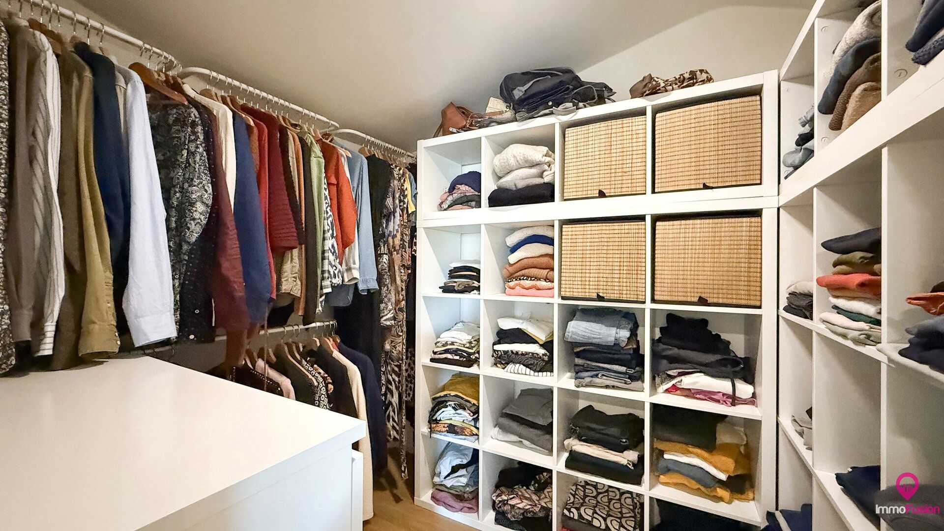 In dezelfde gang vind je enkele treden die je leiden naar de bovenverdieping. Hier bevinden zich twee slaapkamers en een derde kamer die momenteel ingericht is als dressing en een apart toilet.