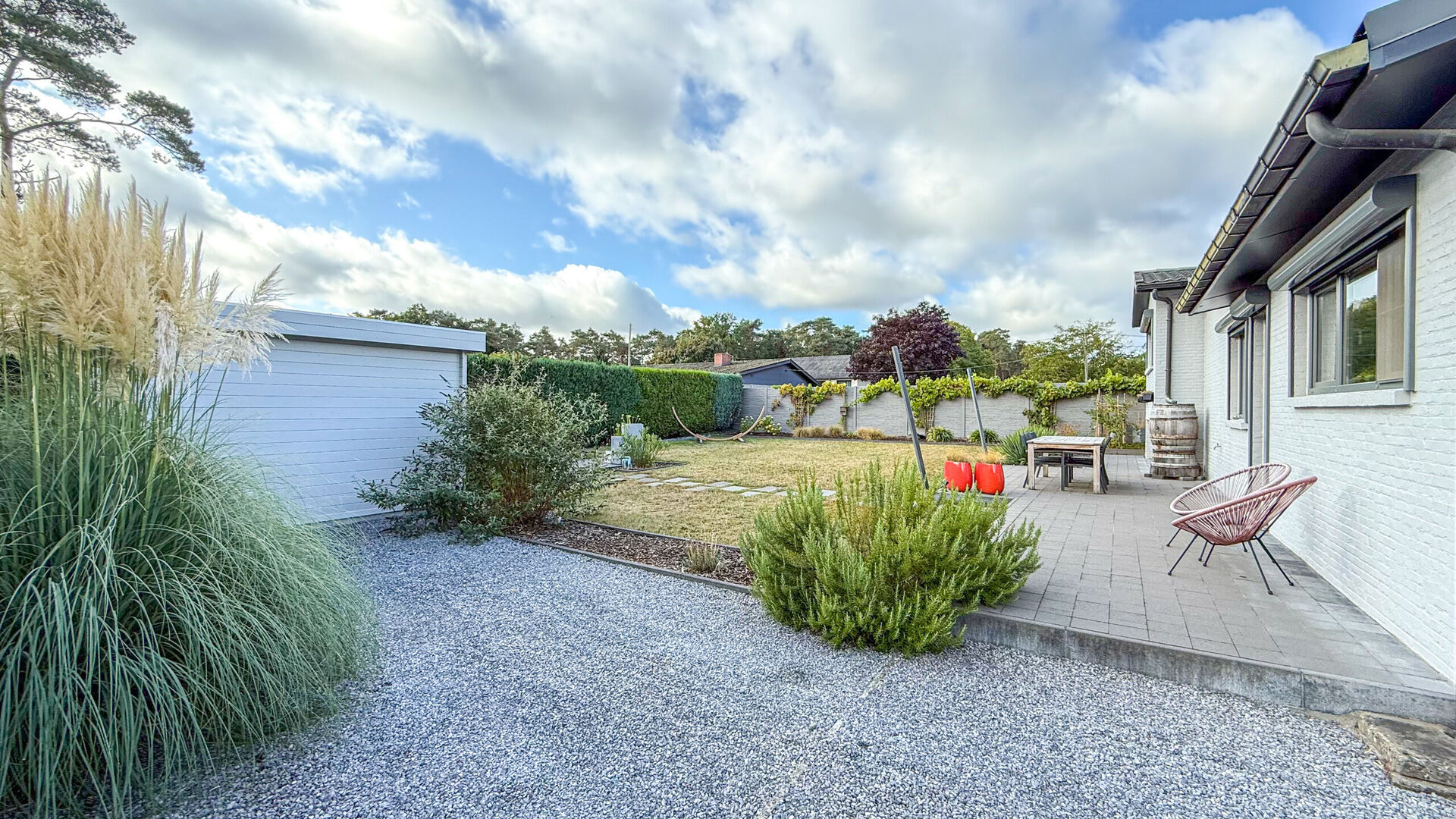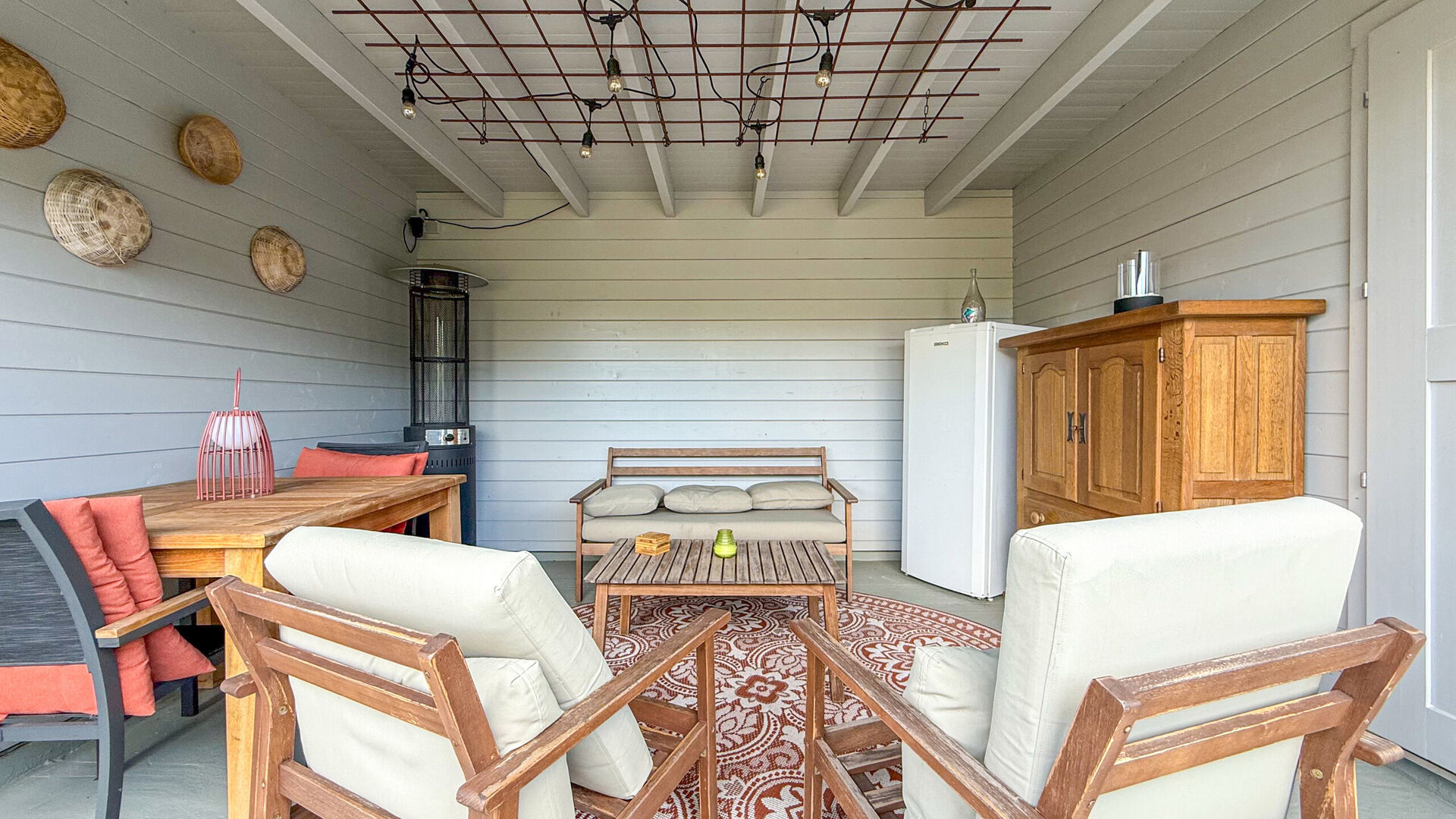 Achteraan geniet je van een onderhoudsvriendelijke tuin met gezellige loungeruimte. Een ideale plek om te ontspannen en te genieten van de onbetaalbare stilte die de omgeving biedt.