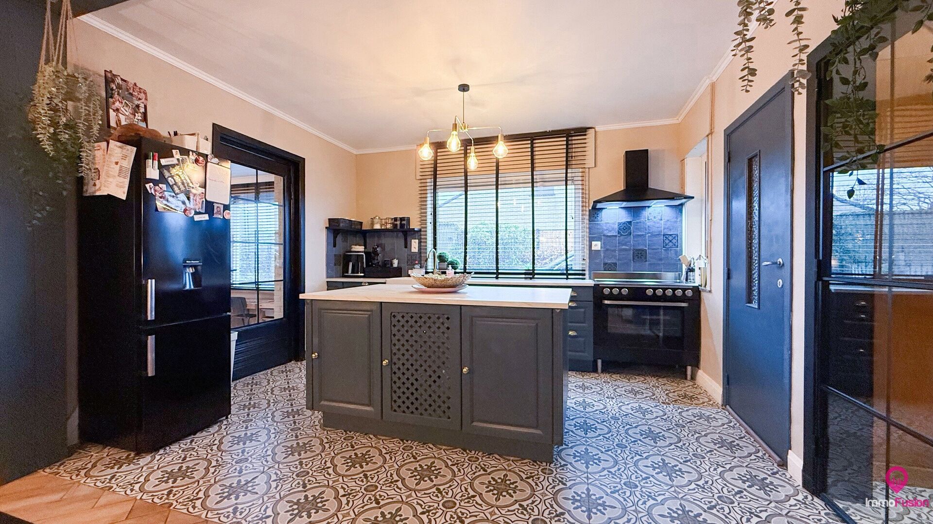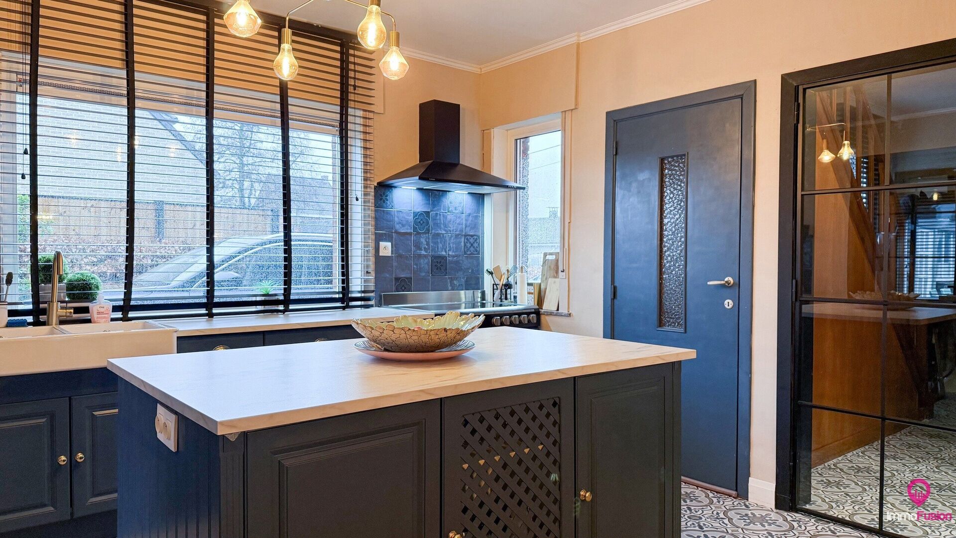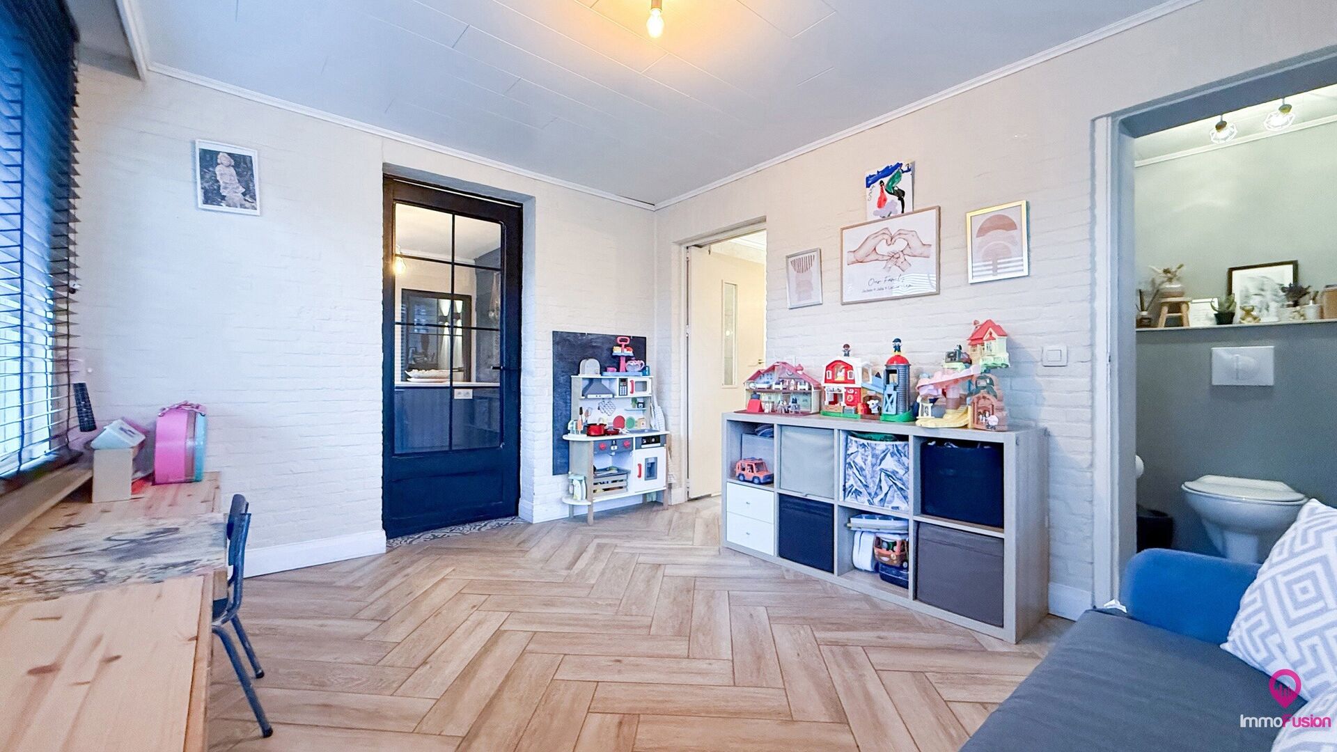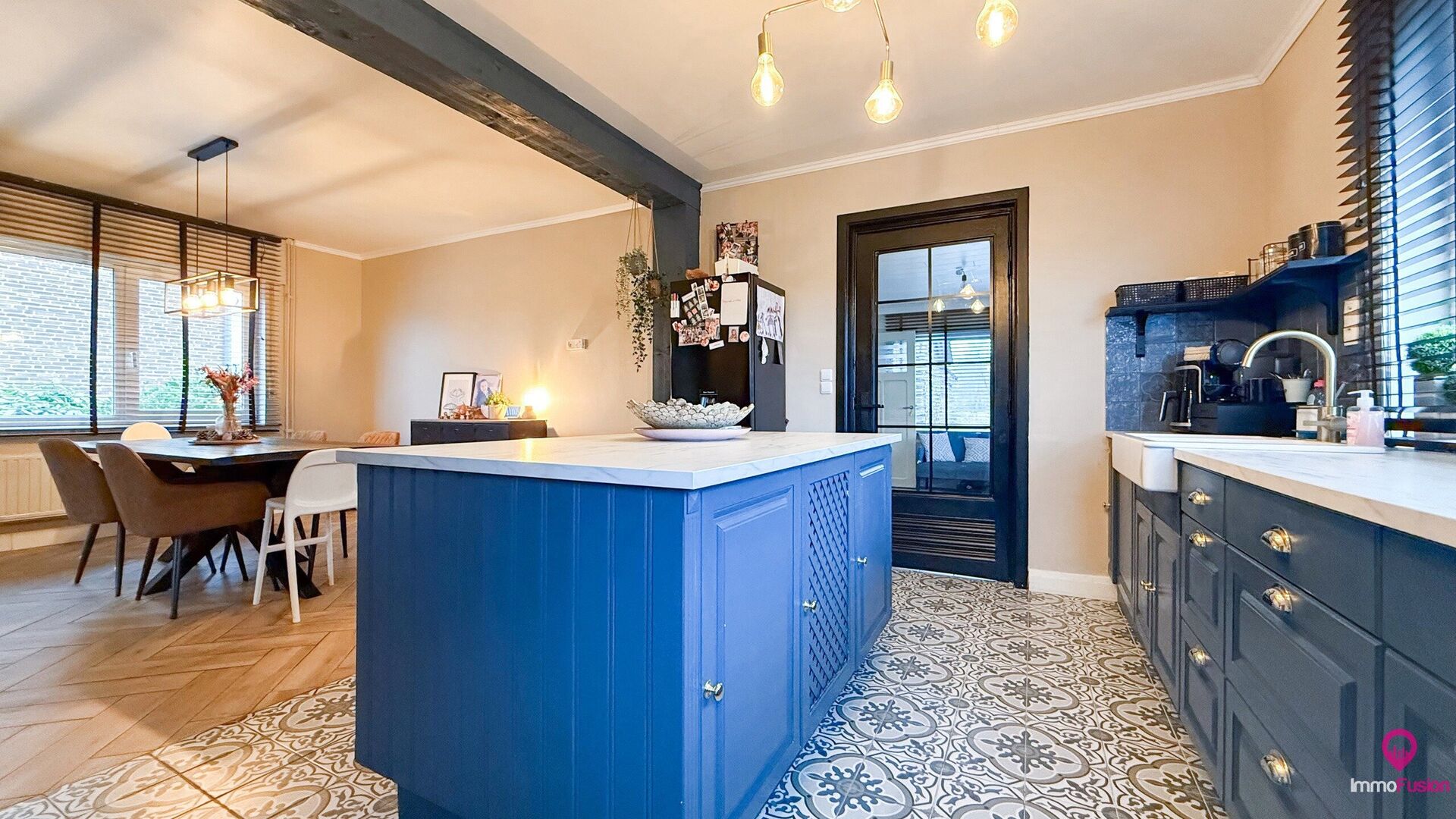 De keuken is ingericht met een modern kookeiland en voorzien van alle nodige toestellen. Achter de keuken bevindt zich een extra polyvalente ruimte die momenteel dienstdoet als achterinkom en speelkamer voor de kinderen, maar die ook perfect kan worden ingericht als bureau, hobbyruimte of extra berging.