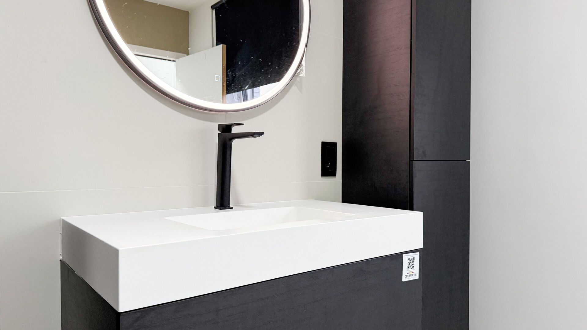 De badkamer is uitgerust met een moderne inloopdouche en enkele wastafel. Daarnaast is er op elk verdiep een apart toilet, wat het wooncomfort aanzienlijk verhoogt.