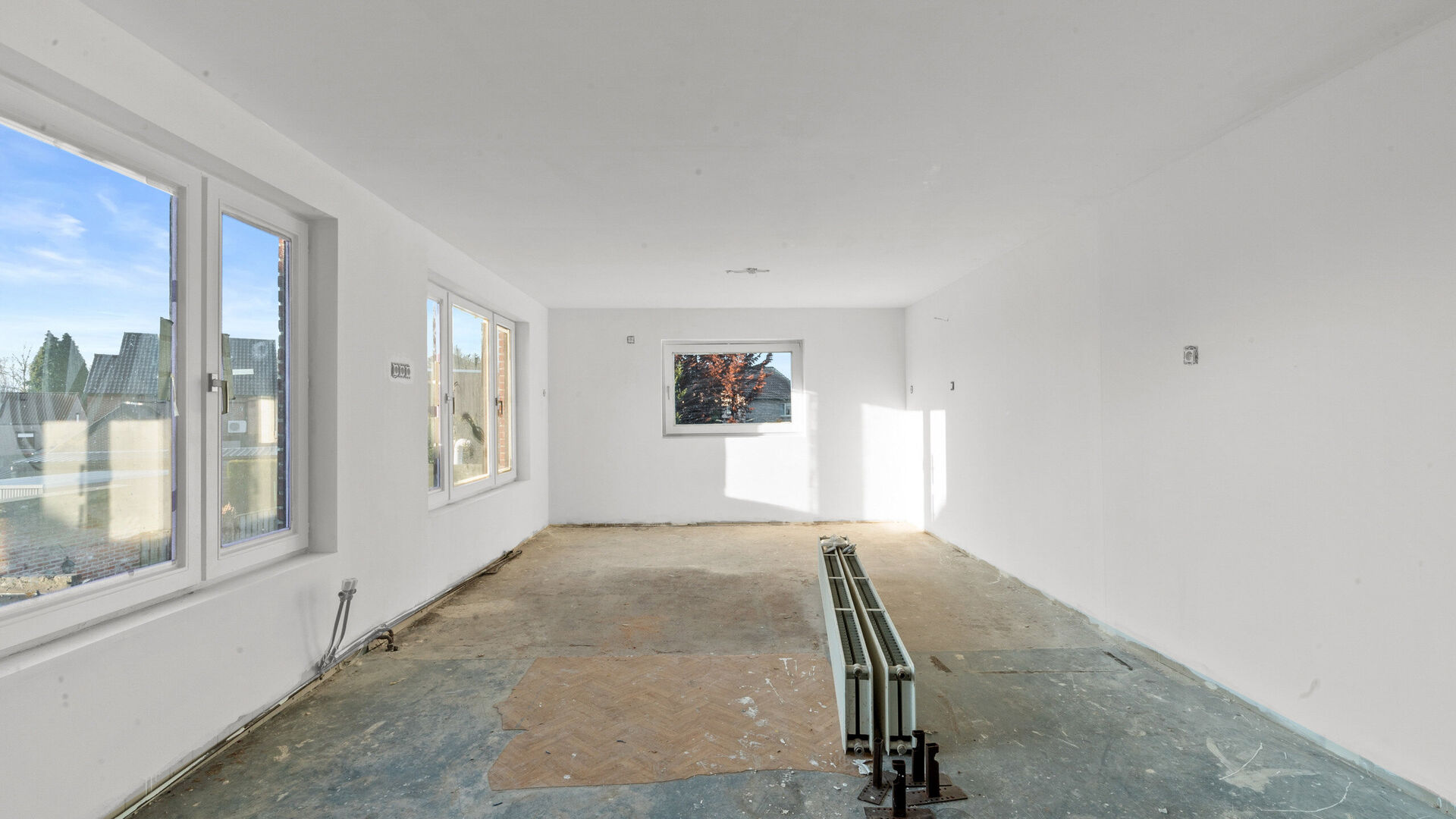 De lichtrijke leefruimte geniet van veel natuurlijke lichtinval en grenst aan de open keuken, die reeds een moderne en verzorgde indruk nalaat en een mooie basis vormt voor verdere afwerking volgens eigen wensen.