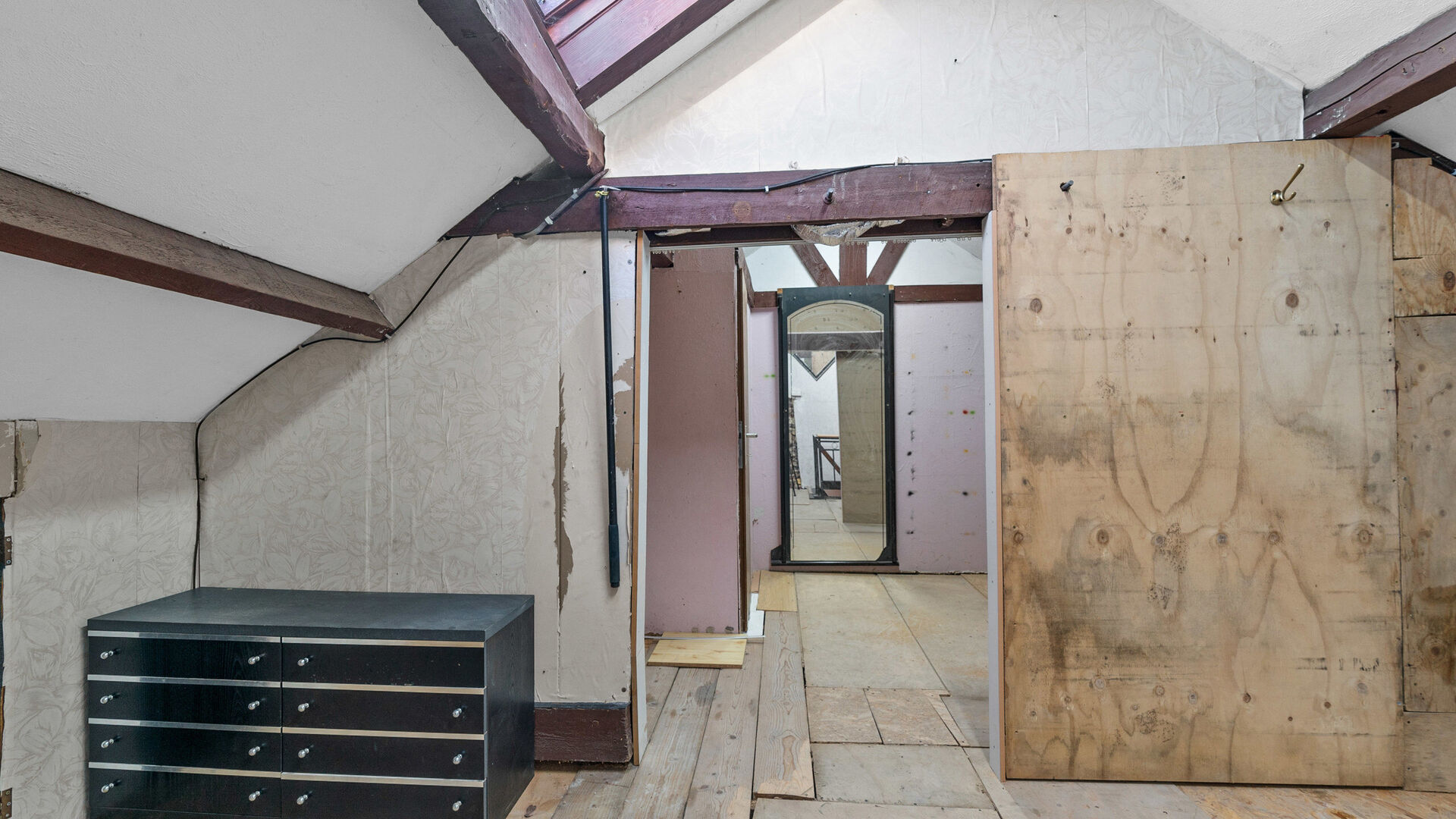 De woning beschikt over 3 slaapkamers, waarvan één slaapkamer reeds gestript en vernieuwd werd. Daarnaast biedt de ruime zolderverdieping bijzonder veel potentieel en kan deze perfect worden ingericht als 4de slaapkamer, speelkamer, hobbyruimte, bureau of mancave.