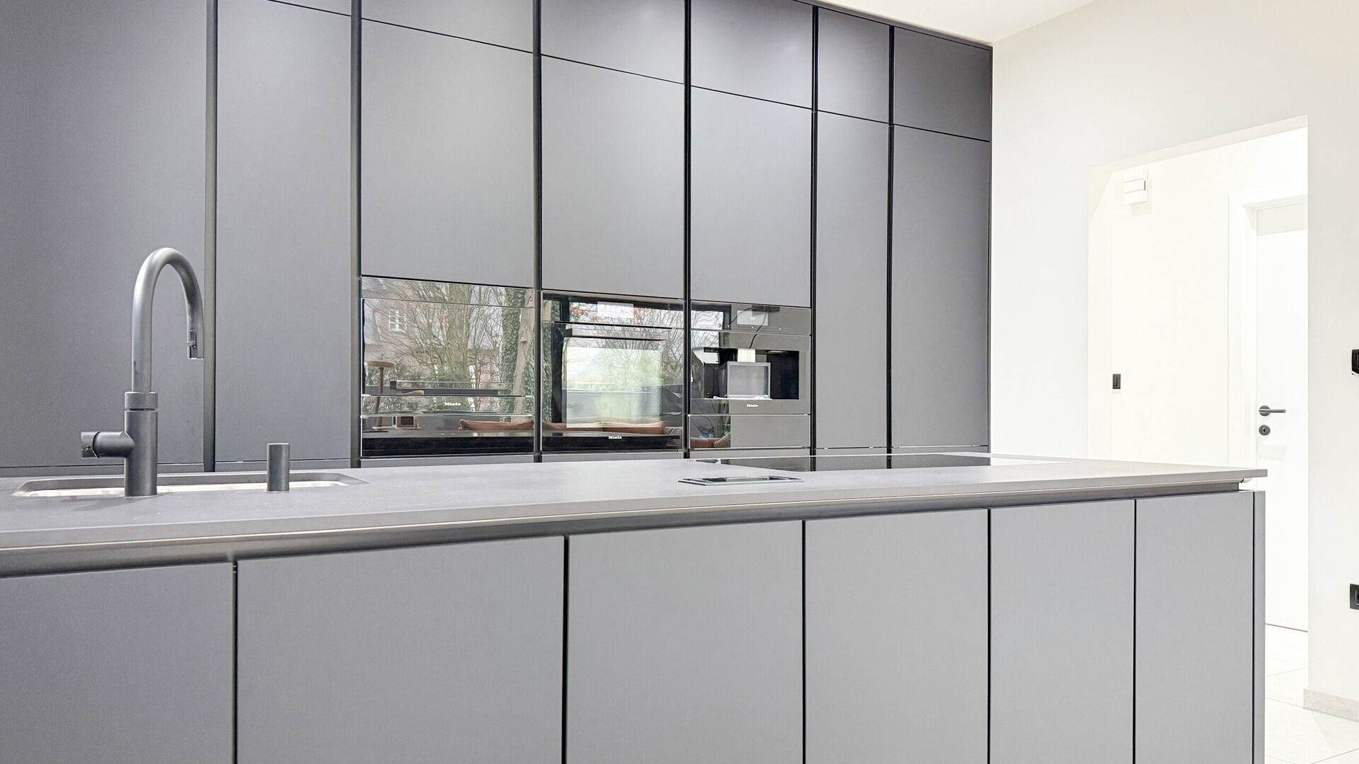 - Drie dubbele beglazing met strak aluminium raamwerk