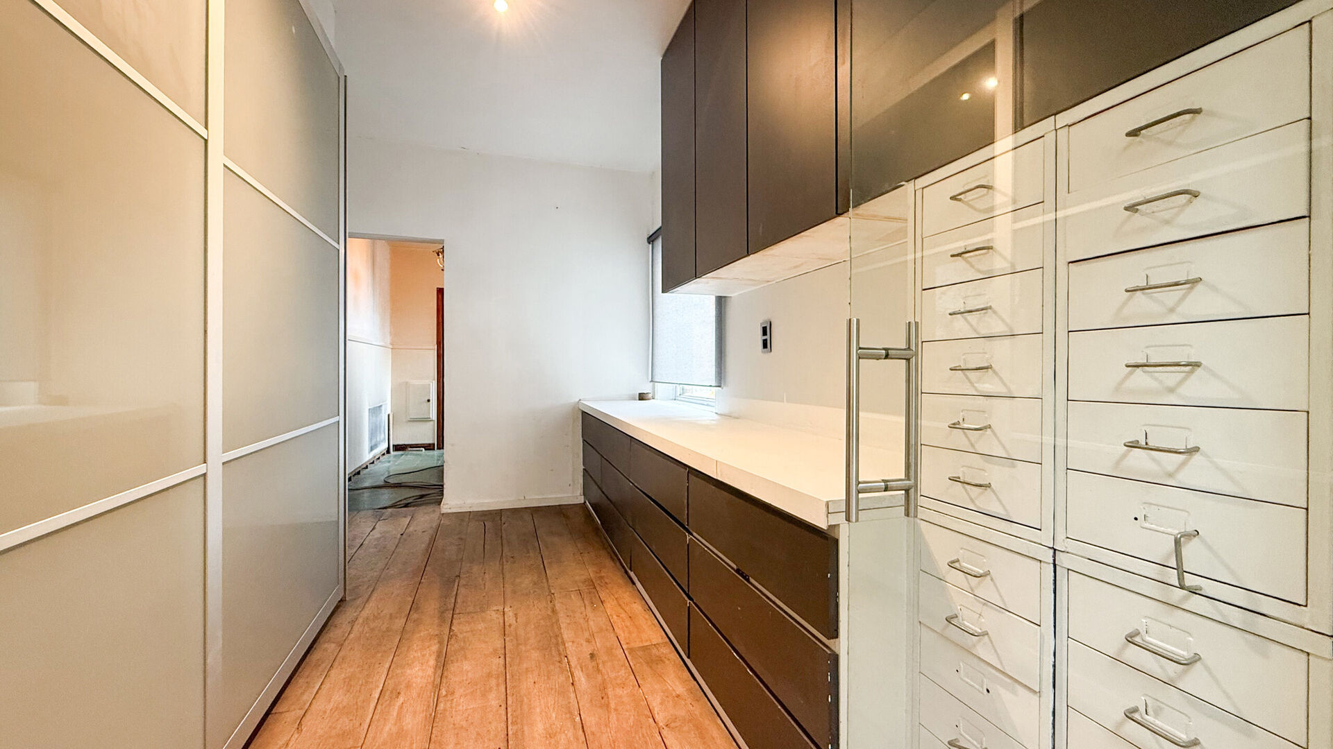 Op het gelijkvloers vinden we bovendien nog een extra ruimte die perfect dienst kan doen als bureau, hobbykamer of speelruimte.