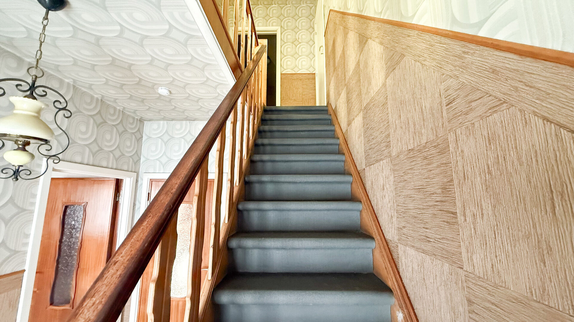 Bij het binnenkomen kom je direct in de hal terecht waar zich ook de trap naar de bovenverdieping bevindt. De hal leid je verder naar zowel de keuken als de woonkamer. Deze laatste is lichtrijk en beschikt over een houtkachel die de ruimte heerlijk opwarmt. De kamer is groot genoeg om er ook een eettafel in te plaatsen. De keuken ligt juist langs de living. Breek de muur open en je creëert een open keuken met living.