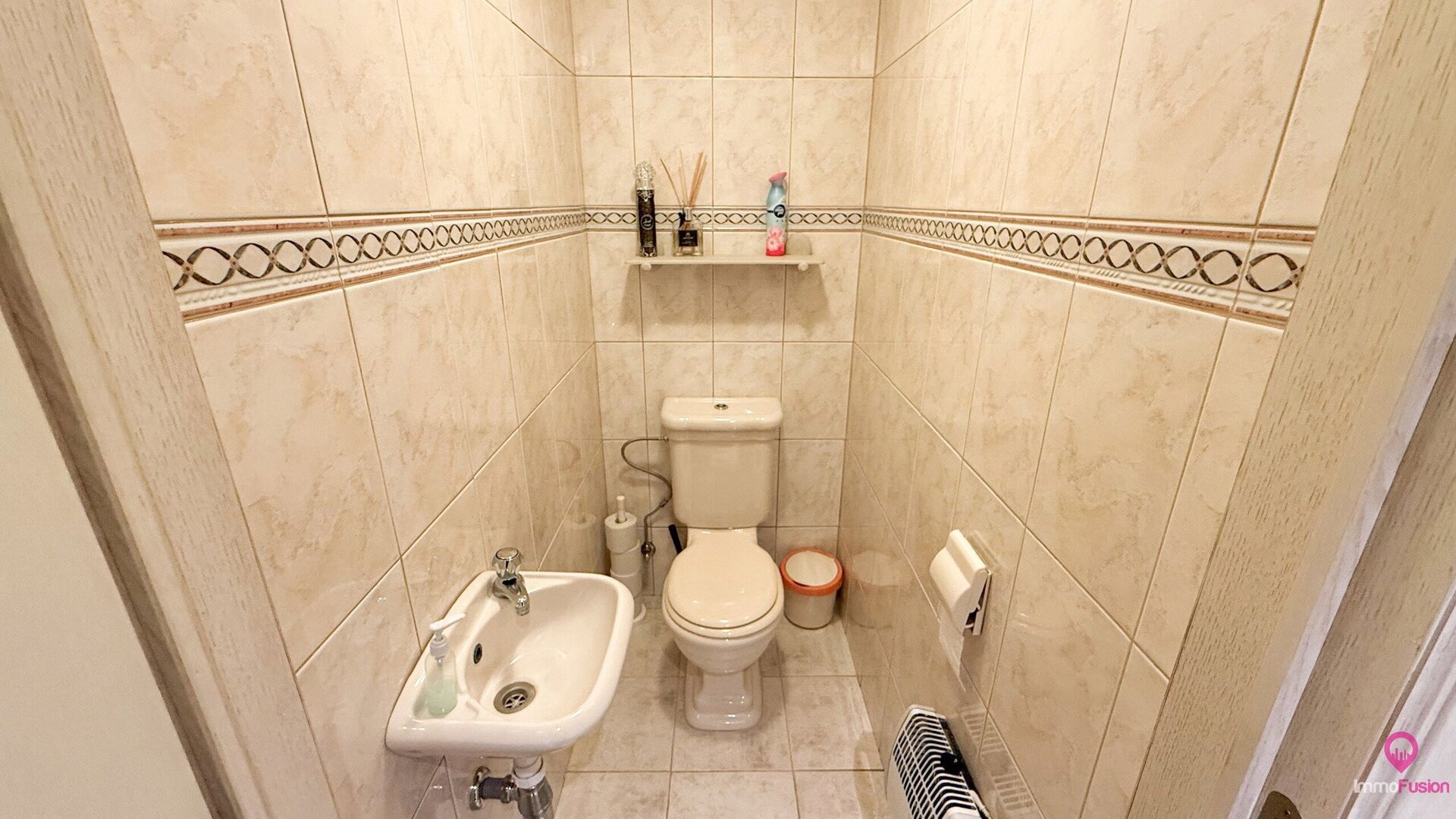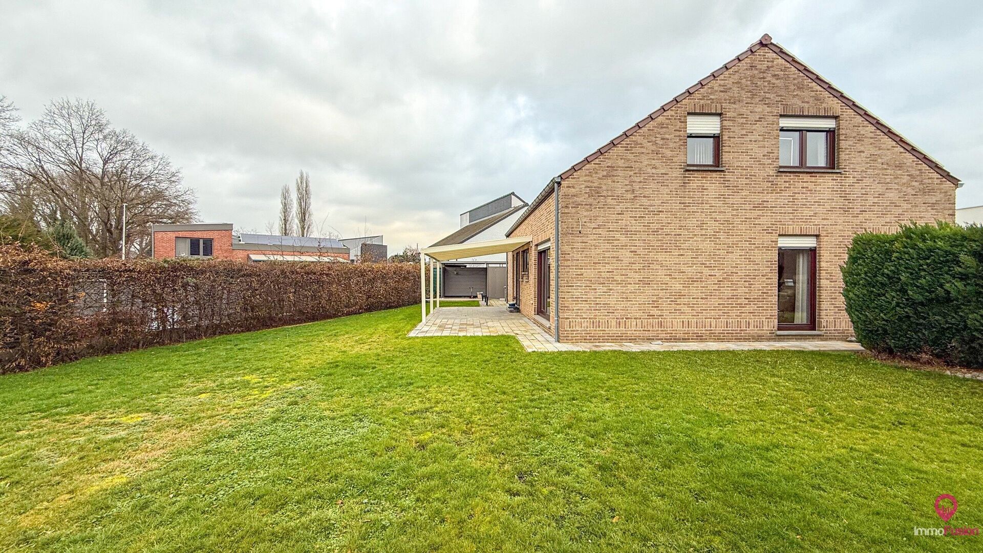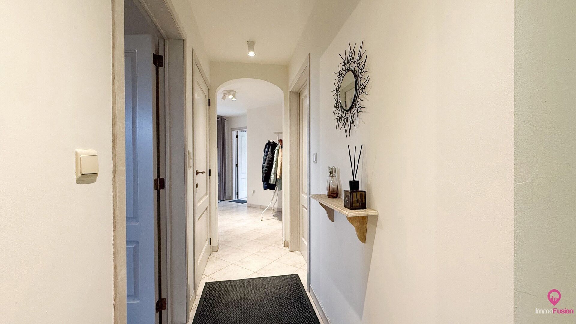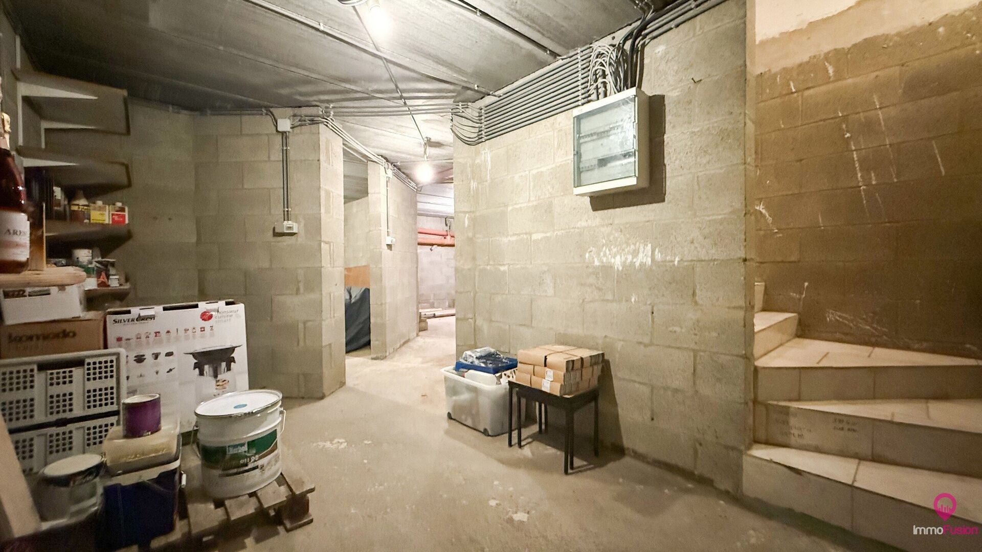 De keuken is volledig uitgerust met een ingebouwde oven en microgolf, frigo, dampkap en inductiekookplaat, en sluit mooi aan op de leefruimte. Op het gelijkvloers bevindt zich bovendien een ruime berging met alle nodige aansluitingen. Hier is momenteel een badkamermeubel met douche voorzien, evenals de voorzieningen voor wasmachine en droogkast. Verder is er een inpandige garage en een apart gastentoilet.