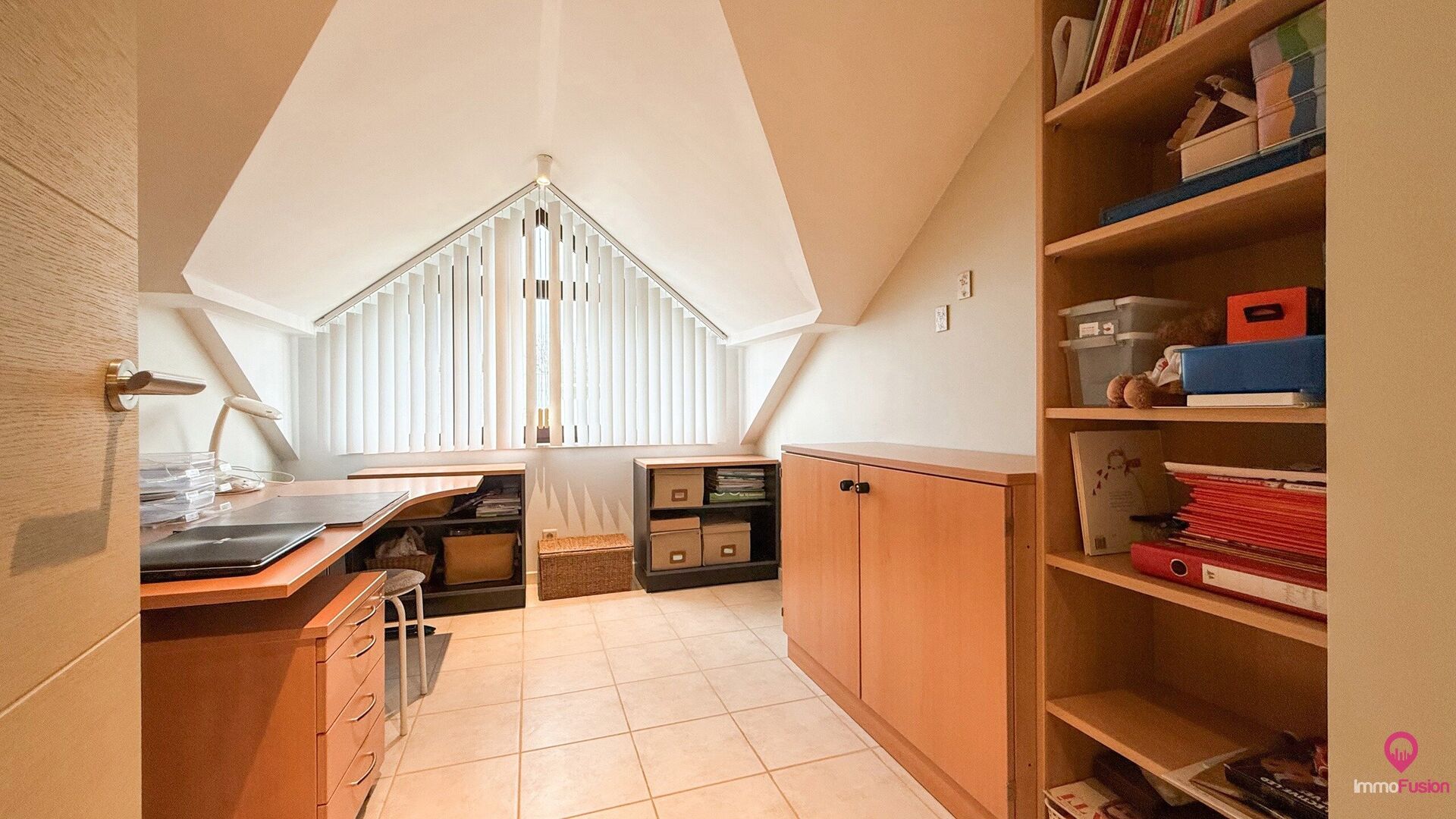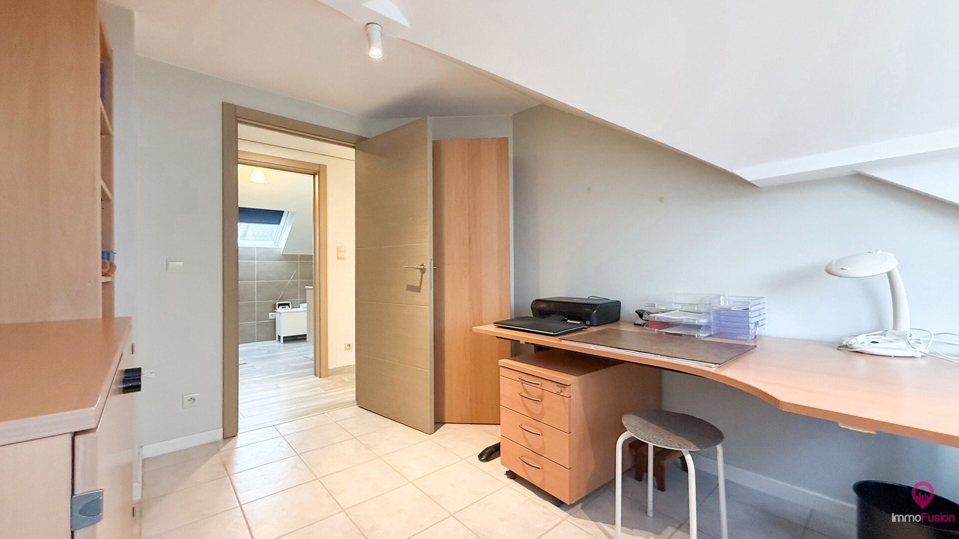 Op de bovenverdieping zijn er momenteel drie slaapkamers en een dressing voorzien met rolluiken. Daarnaast is er een bureau die eenvoudig kan worden omgevormd tot een 4de slaapkamer. De moderne badkamer is praktisch ingericht en beschikt over een ligbad, een badkamermeubel en een tweede toilet.