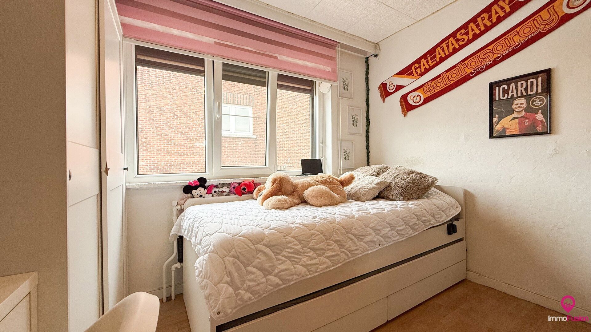 Via een kleine trap bereik je het split-level, waar de badkamer zich bevindt: modern ingericht met een inloopdouche, tweede toilet en een stijlvolle wastafel. Verder vind je drie ruime slaapkamers, elk met voldoende lichtinval en indelingsmogelijkheden. Perfect voor een gezin of wie graag een extra bureauruimte voorziet.