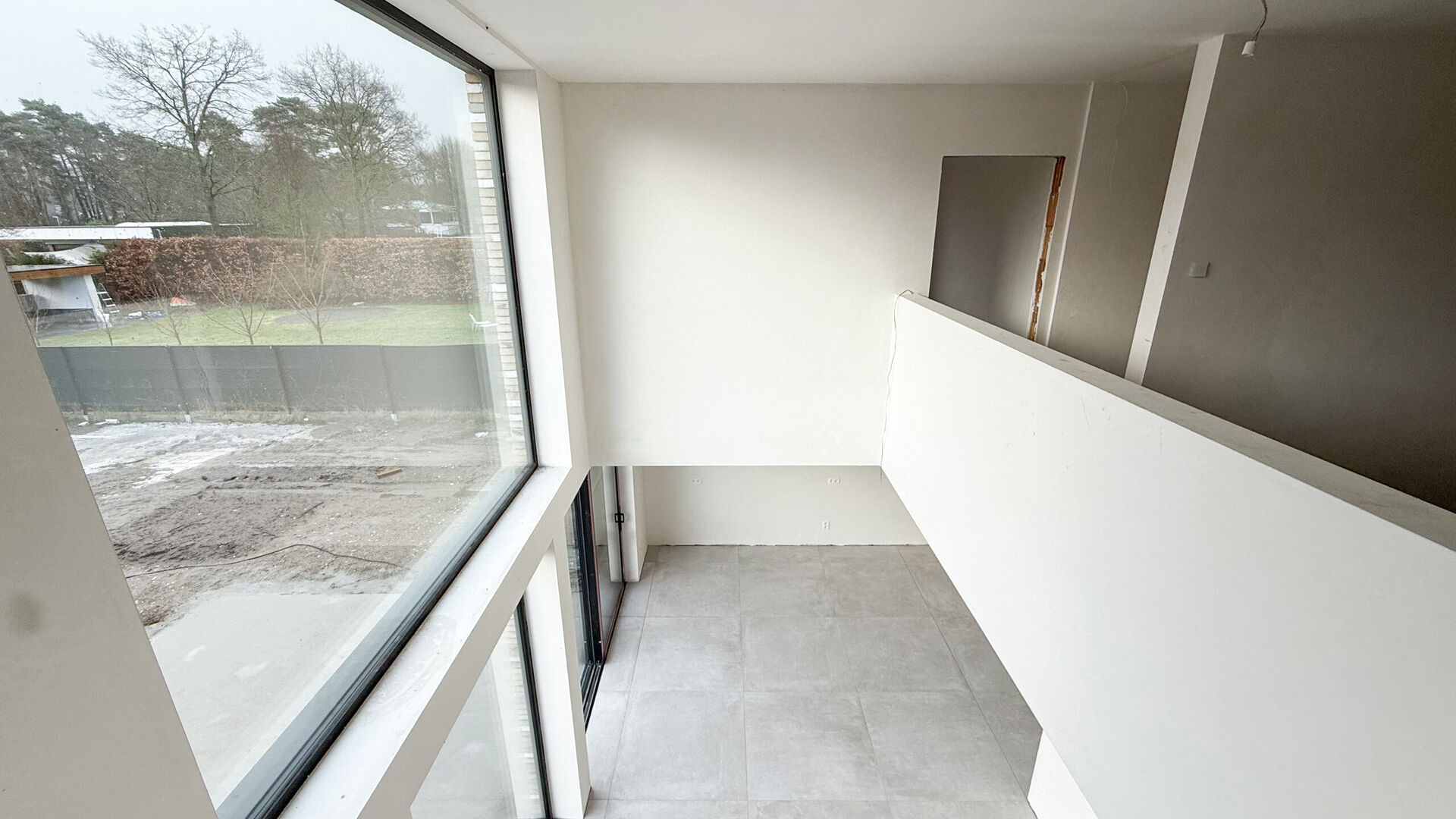 Op de verdieping wordt de ruimte optimaal benut. De masterbedroom beschikt over een eigen dressing en een aparte privébadkamer. Aan de andere zijde bevinden zich drie volwaardige slaapkamers met een tweede badkamer. Daarnaast is er een polyvalente ruimte die dankzij de vide een open zicht biedt naar beneden en doorheen de woning richting het zwembad, een bijzonder ruimtelijk en lichtrijk element dat de architectuur extra karakter geeft.