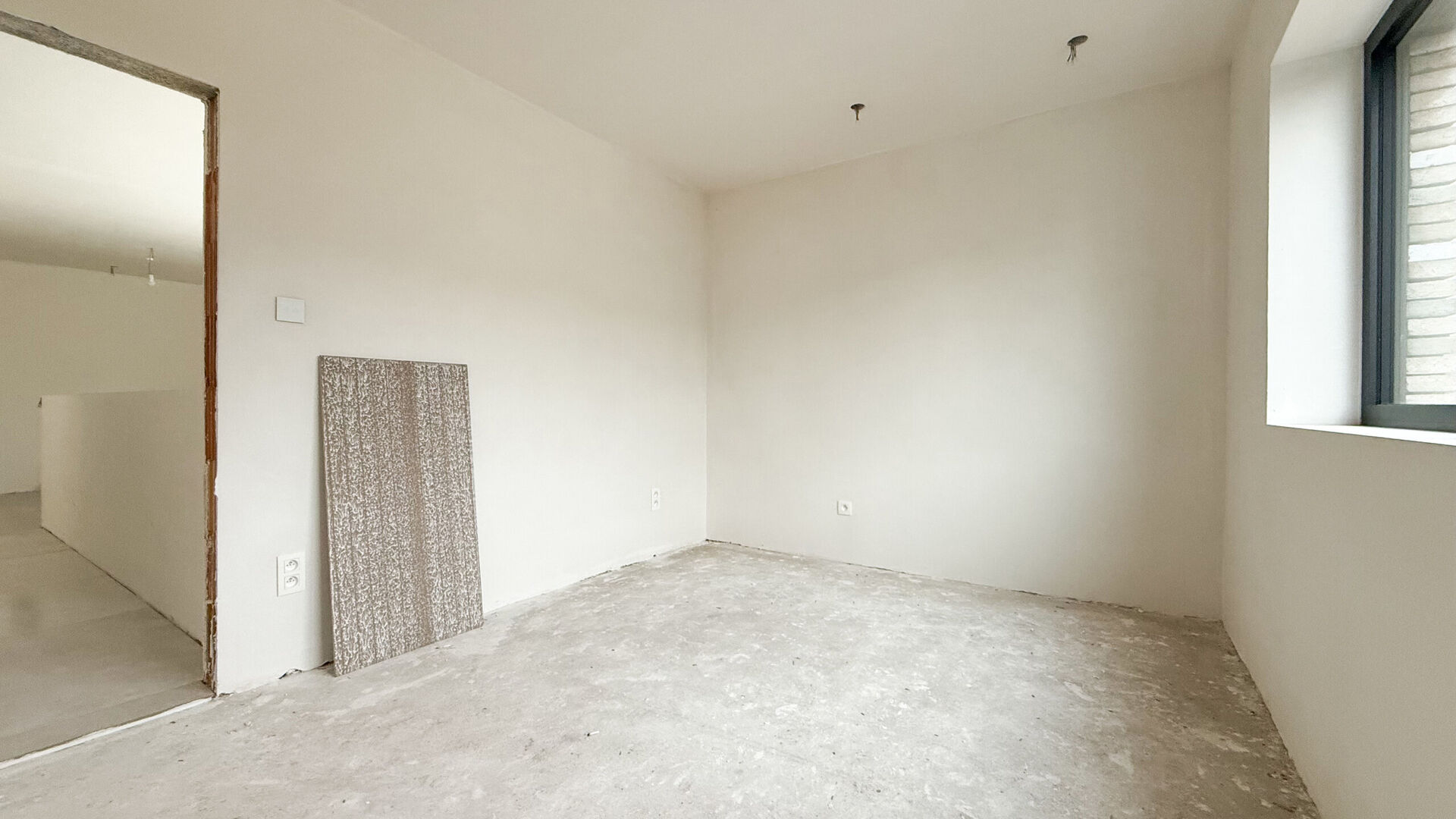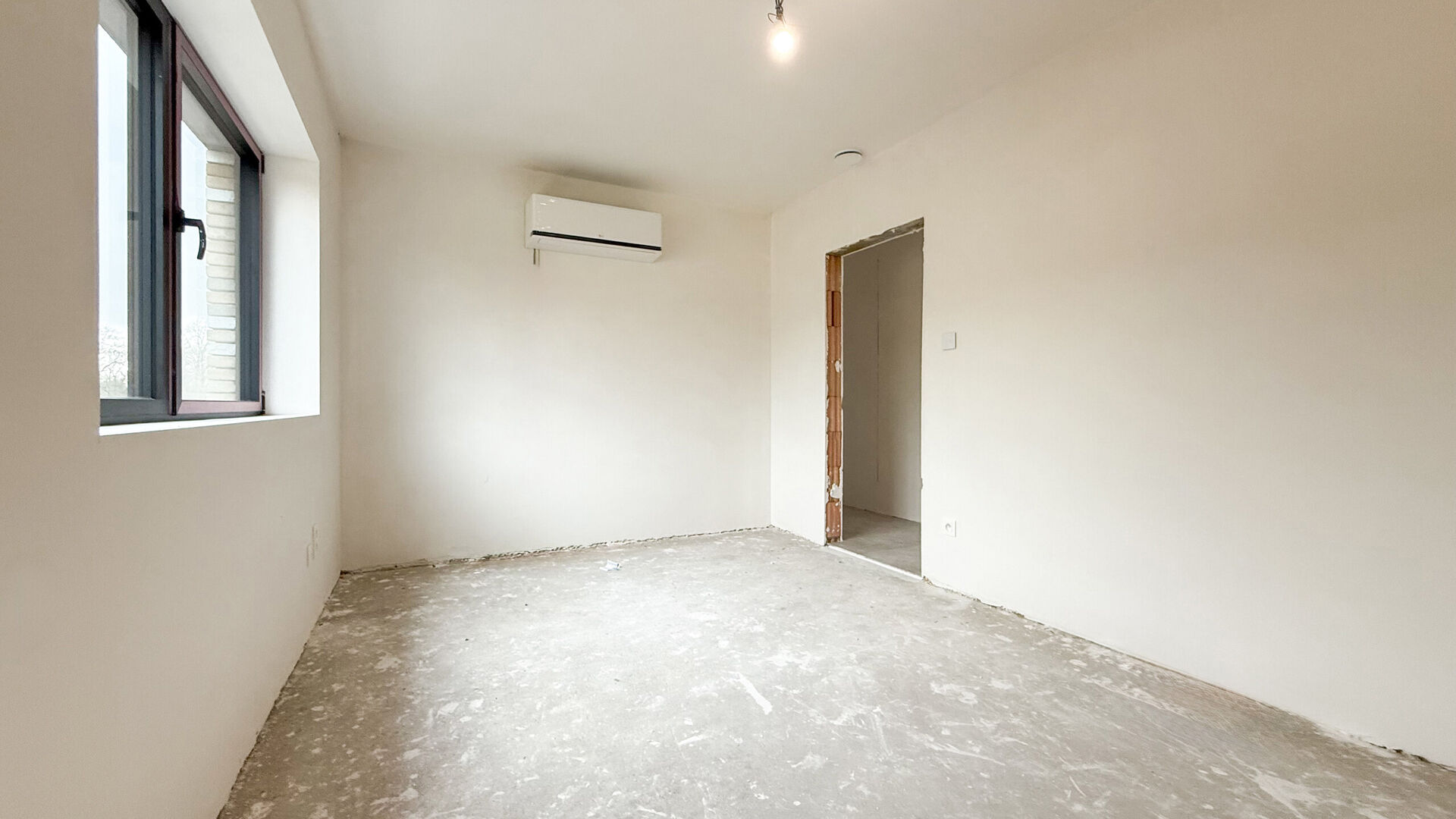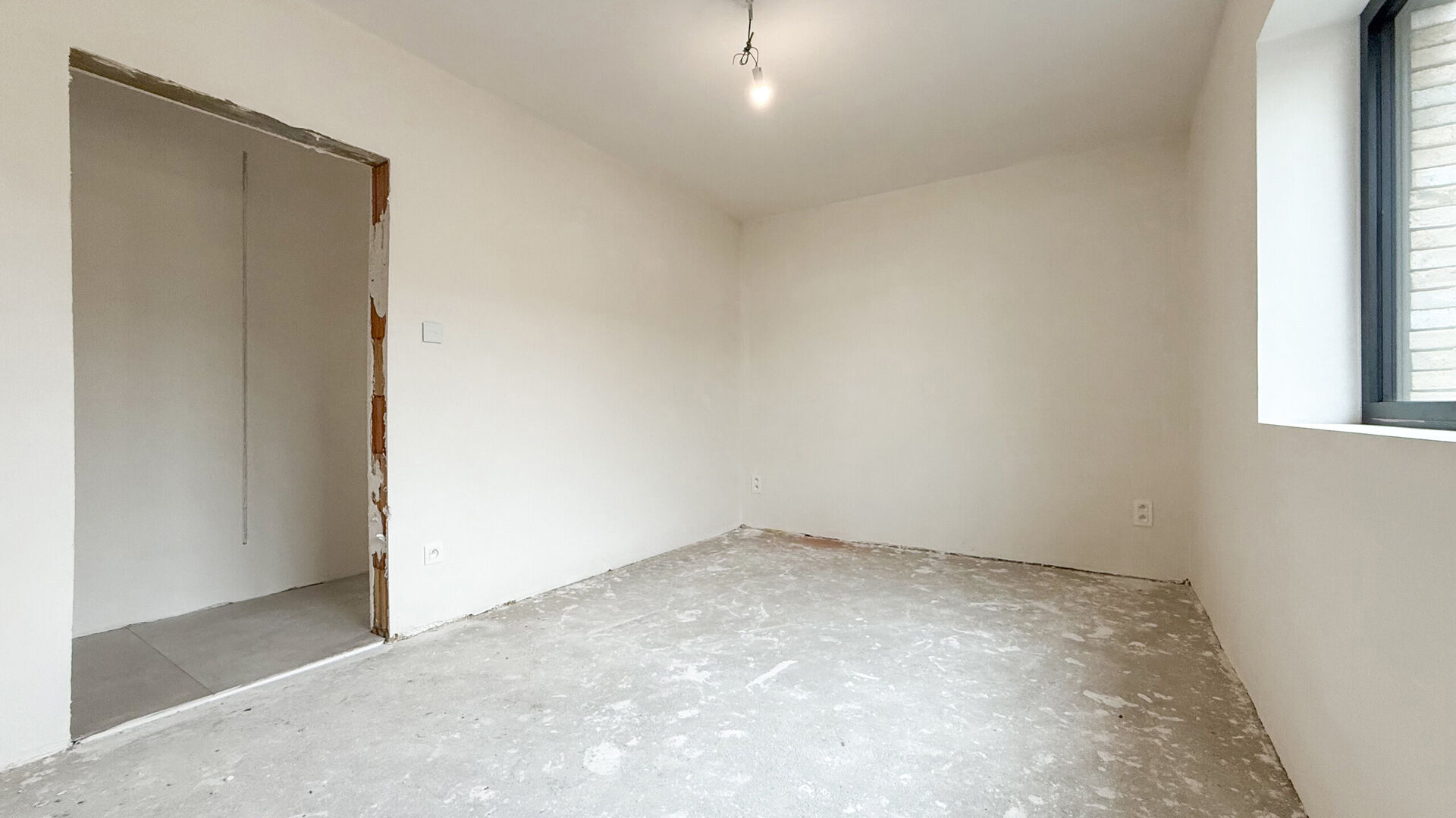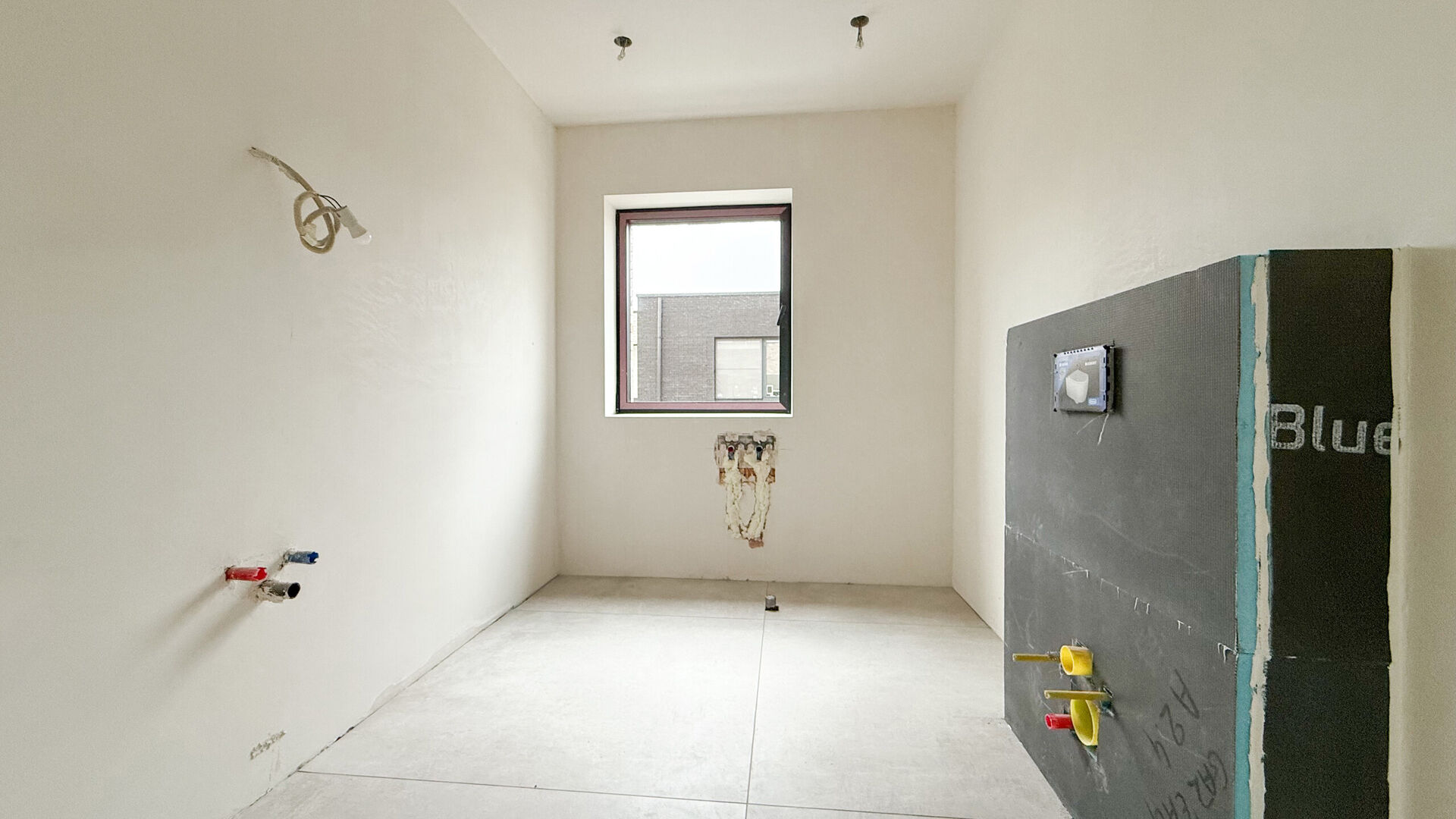 Aan de linkerkant bevindt zich een technische ruimte die tevens plaats biedt voor een bureauruimte, ideaal voor wie van thuis uit werkt. Aan de rechterzijde vindt u een vestiaire en een gastentoilet. Via een praktische zijdeur bereikt u rechtstreeks de keukenruimte.