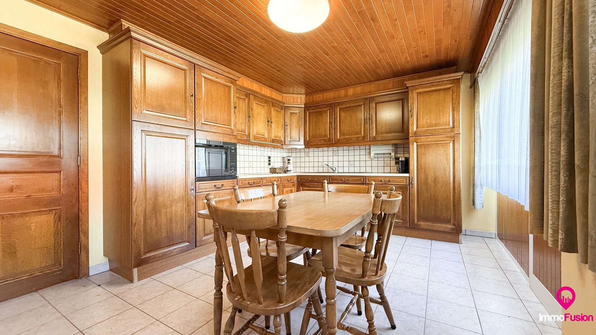Aansluitend bevindt zich de keuken, uitgerust met een oven en kookplaat. Hier is bovendien ruimte voorzien om een eettafel te plaatsen, wat zorgt voor een praktische en huiselijke indeling.