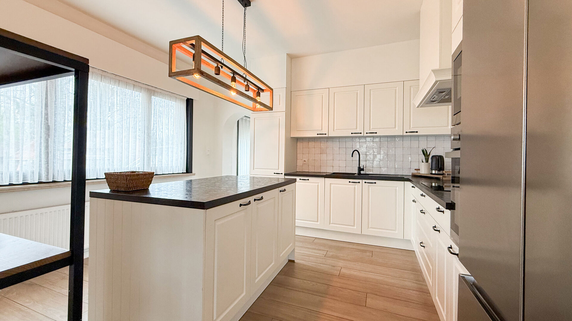 De volledig uitgeruste keuken met kookeiland sluit perfect aan bij de leefruimte en biedt alle comfort voor wie graag kookt en geniet van gezellige momenten met familie of vrienden. Dankzij de directe connectie met de leefruimte blijft u steeds in contact met uw gasten.