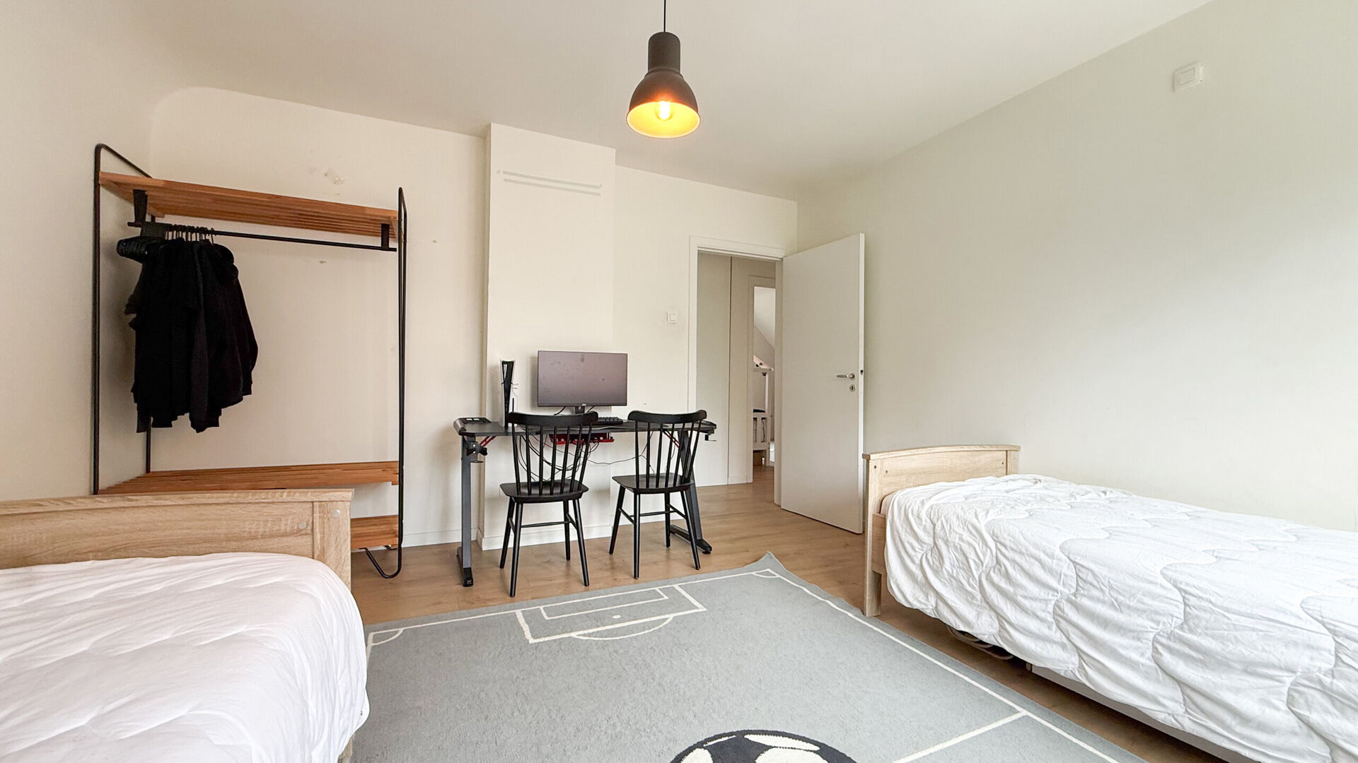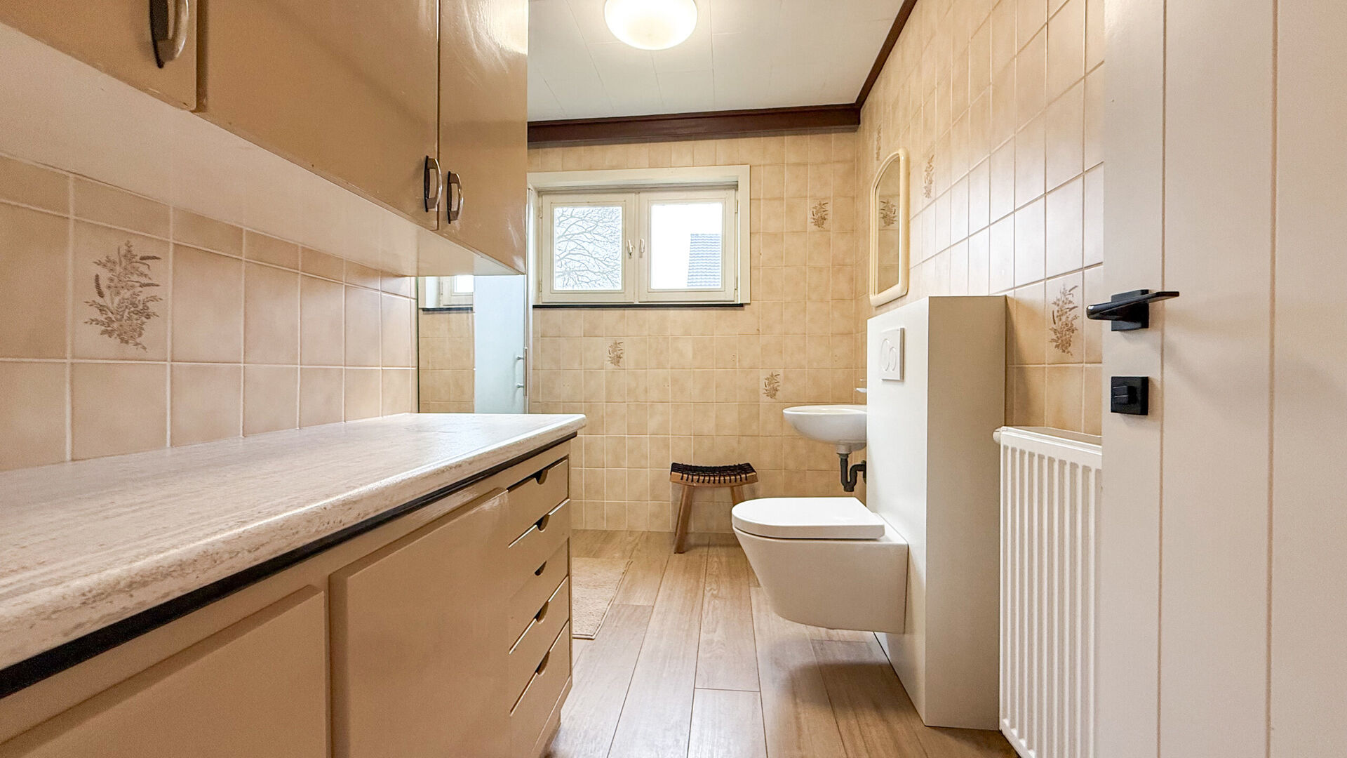 Achteraan de woning bevindt zich een bijzonder veelzijdige ruimte met een tweede ruime leefruimte, ideaal als extra zithoek, speelkamer of ontspanningsruimte. Aansluitend vindt u hier ook de badkamer, uitgerust met een douche en toilet en in verzorgde staat.