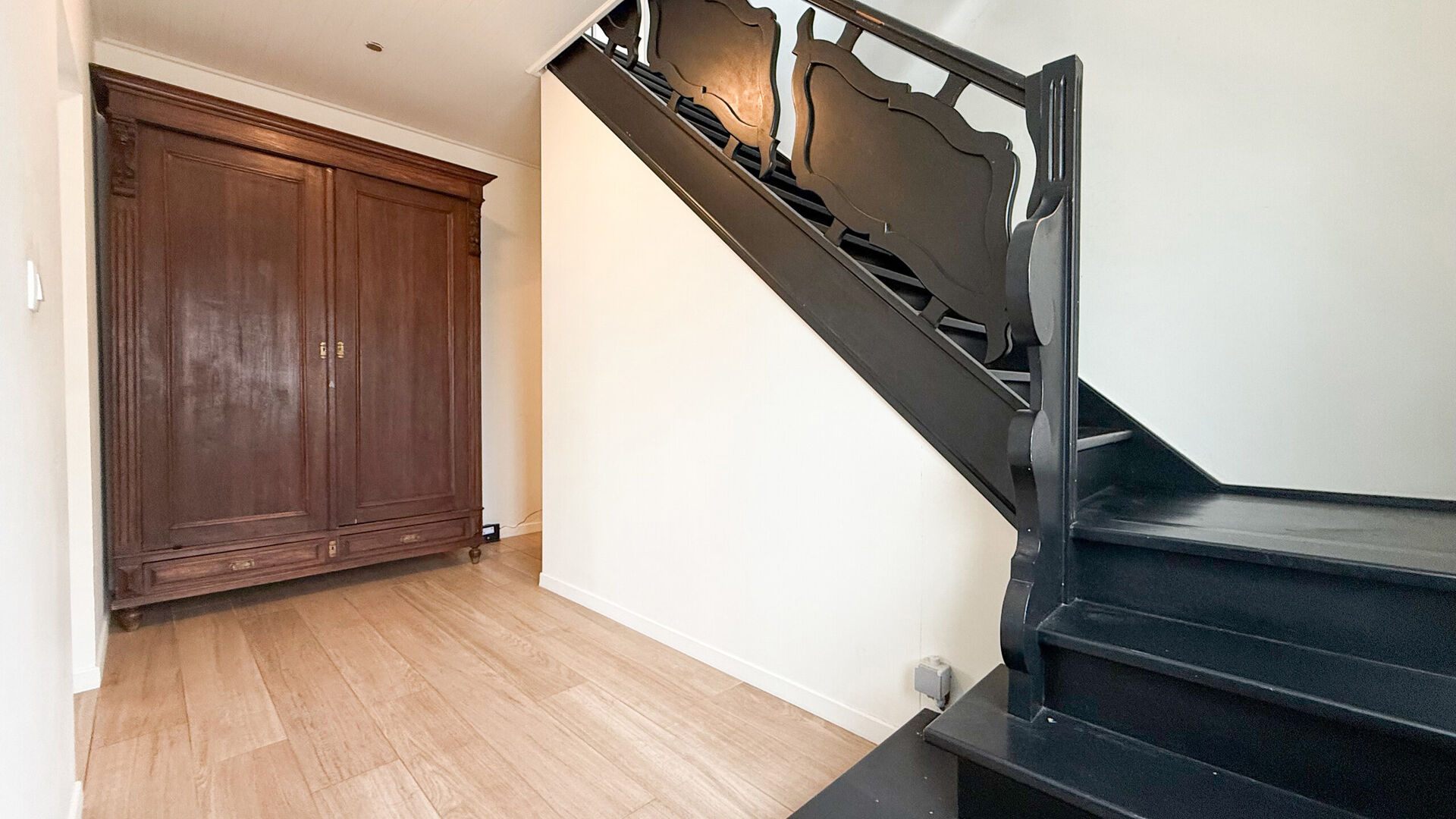 Bij het betreden van de woning komt u terecht in een royale inkomhal met voldoende plaats voor vestiaire en een trap die u naar de bovenverdieping leidt. Vanuit de hal wandelt u door naar de lichtrijke en open leefruimte, waar een gezellige zithoek en eetruimte naadloos in elkaar overvloeien. De open indeling zorgt voor een aangenaam ruimtelijk gevoel en vormt het hart van de woning.