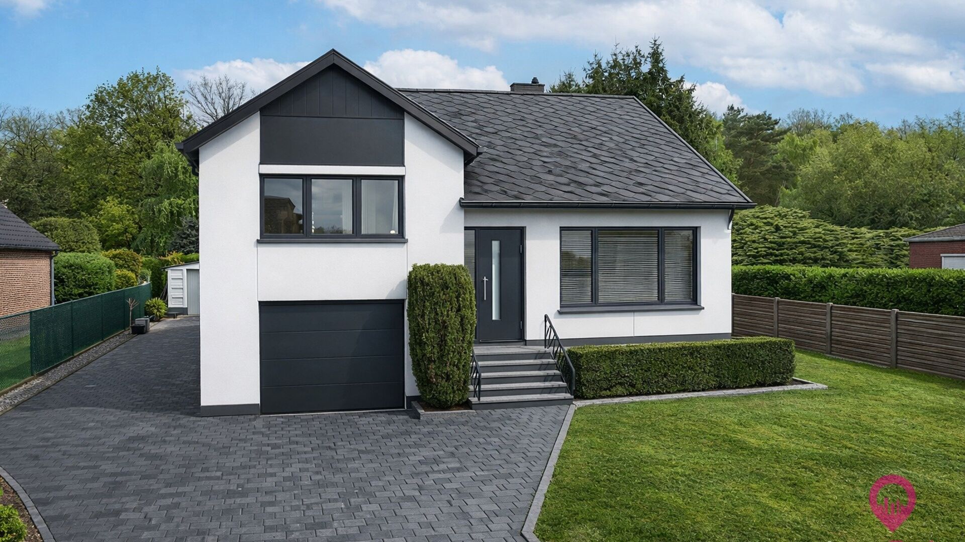 De ligging is een absolute troef: rustig en toch centraal, met een vlotte verbinding naar winkels, scholen, restaurants, snelwegen en mooie wandel- en fietsroutes.