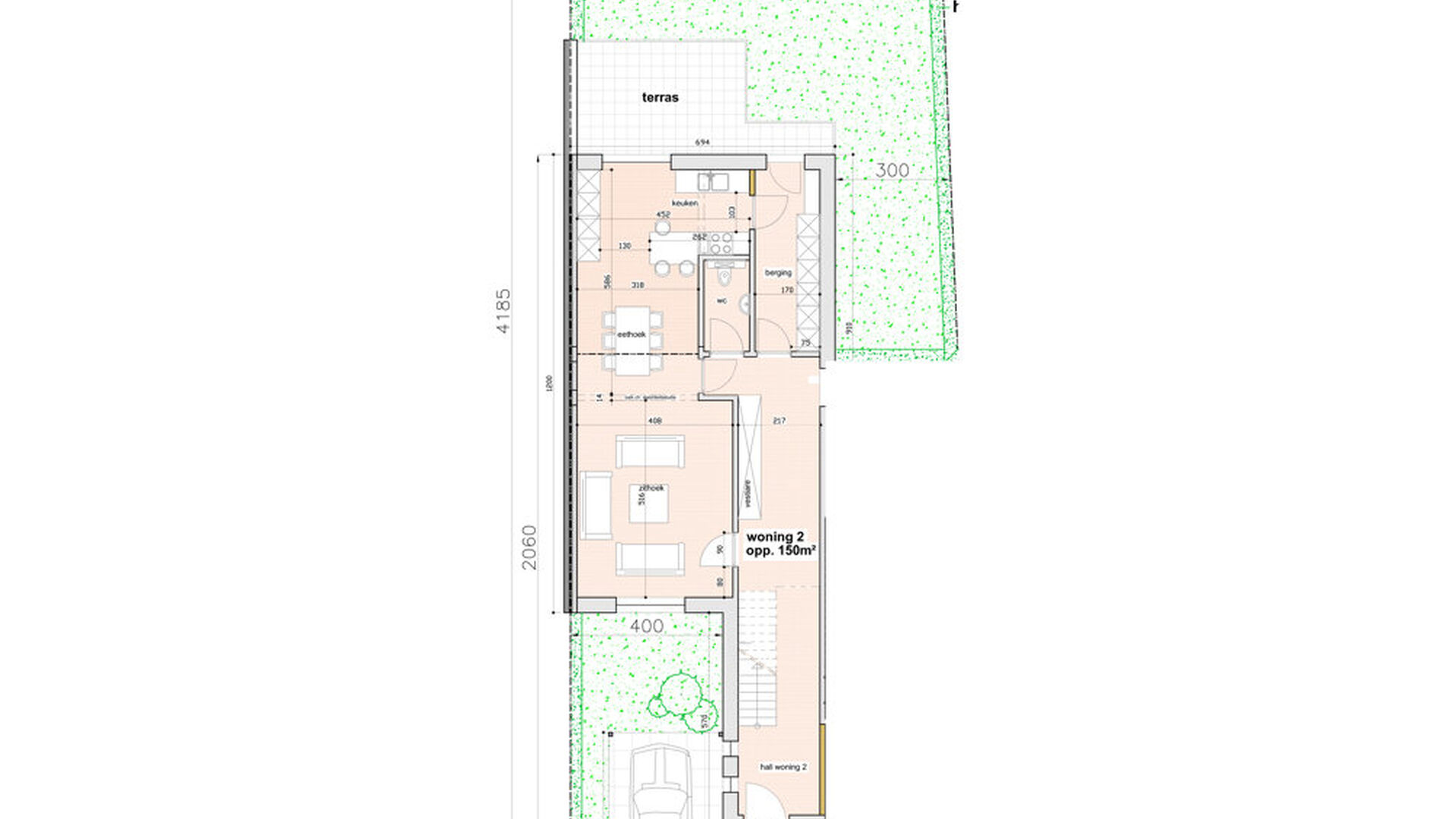 - Elektriciteit + sanitaire leidingen zijn aanwezig.